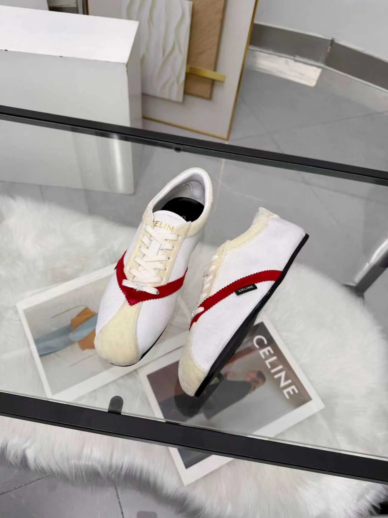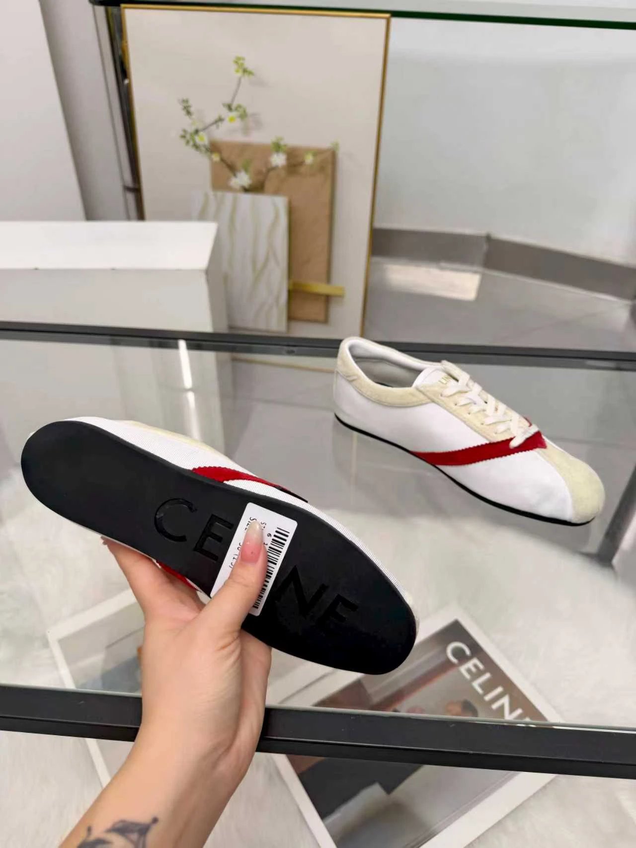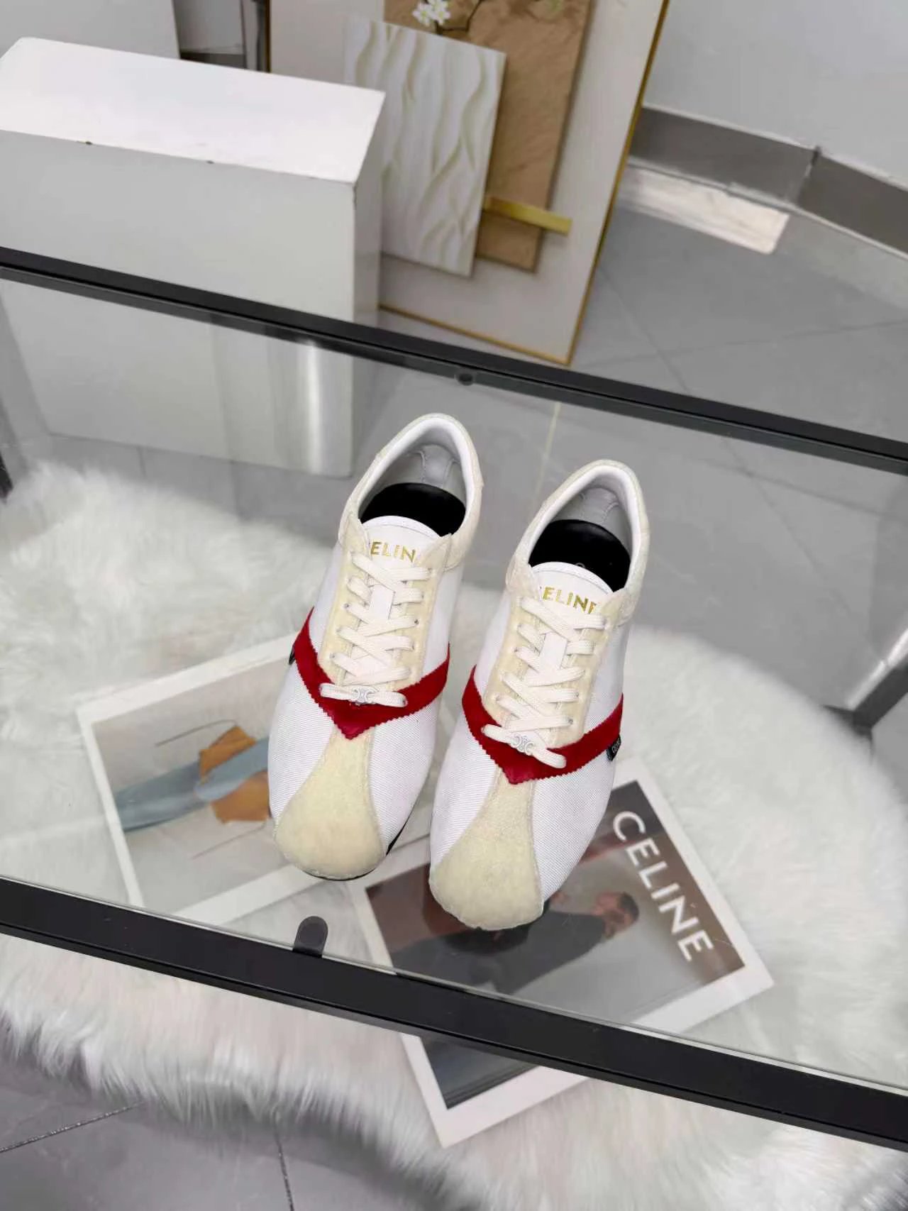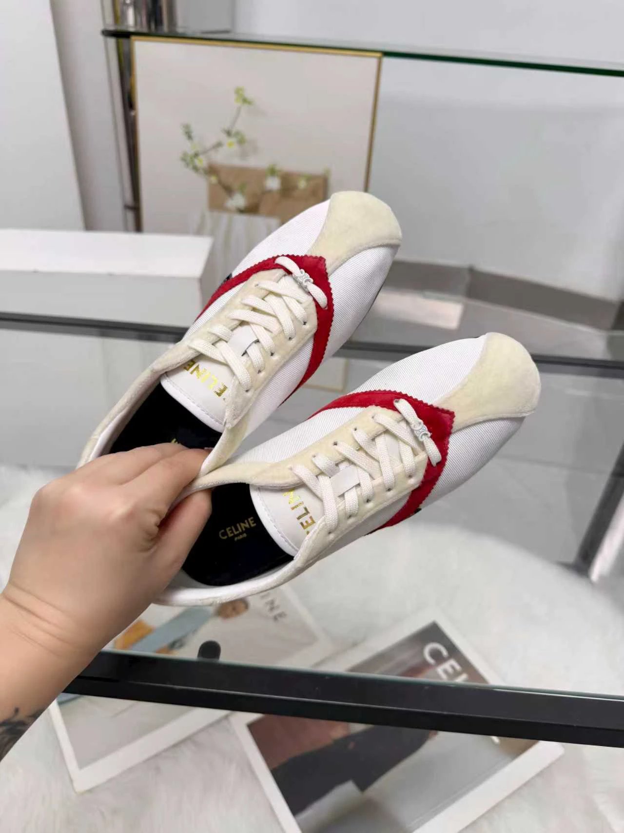 CELINE 26SS Women's Triomphe Logo Ballet Flats have velvet upper. Available in sizes 35-41.