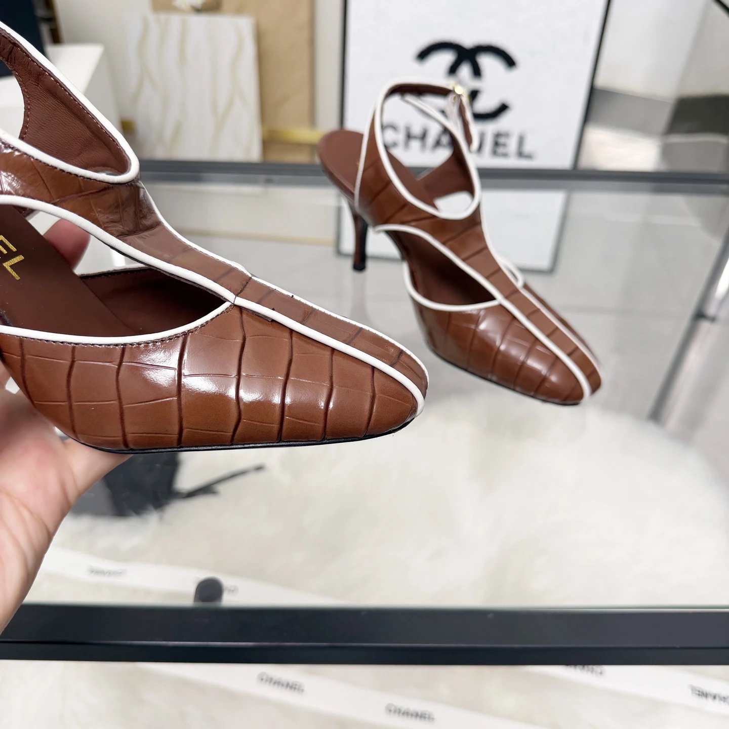 Materials: Stone-grain calfskin + patent leather, sheepskin lining, real leather outsole, 8cm heel.