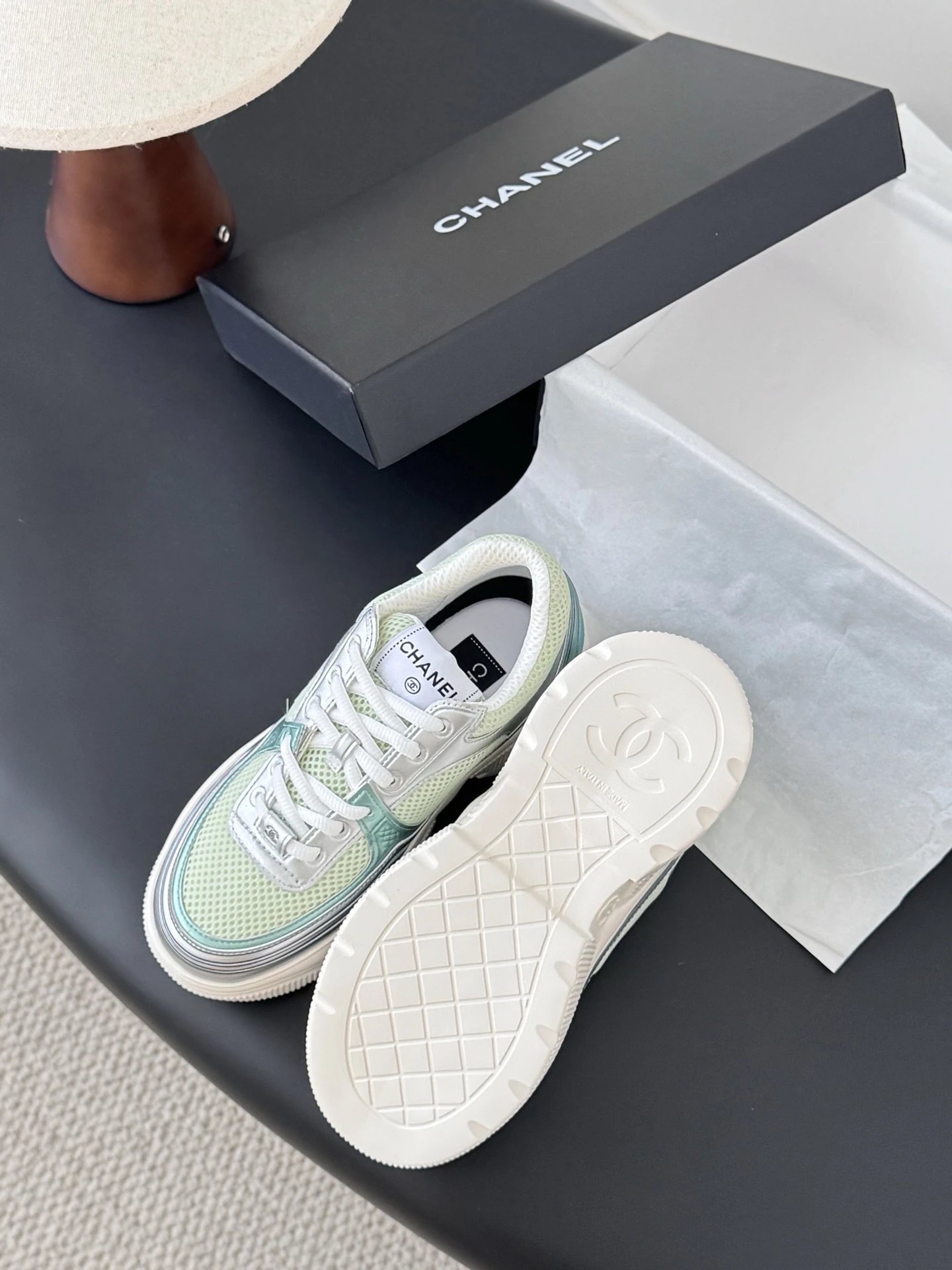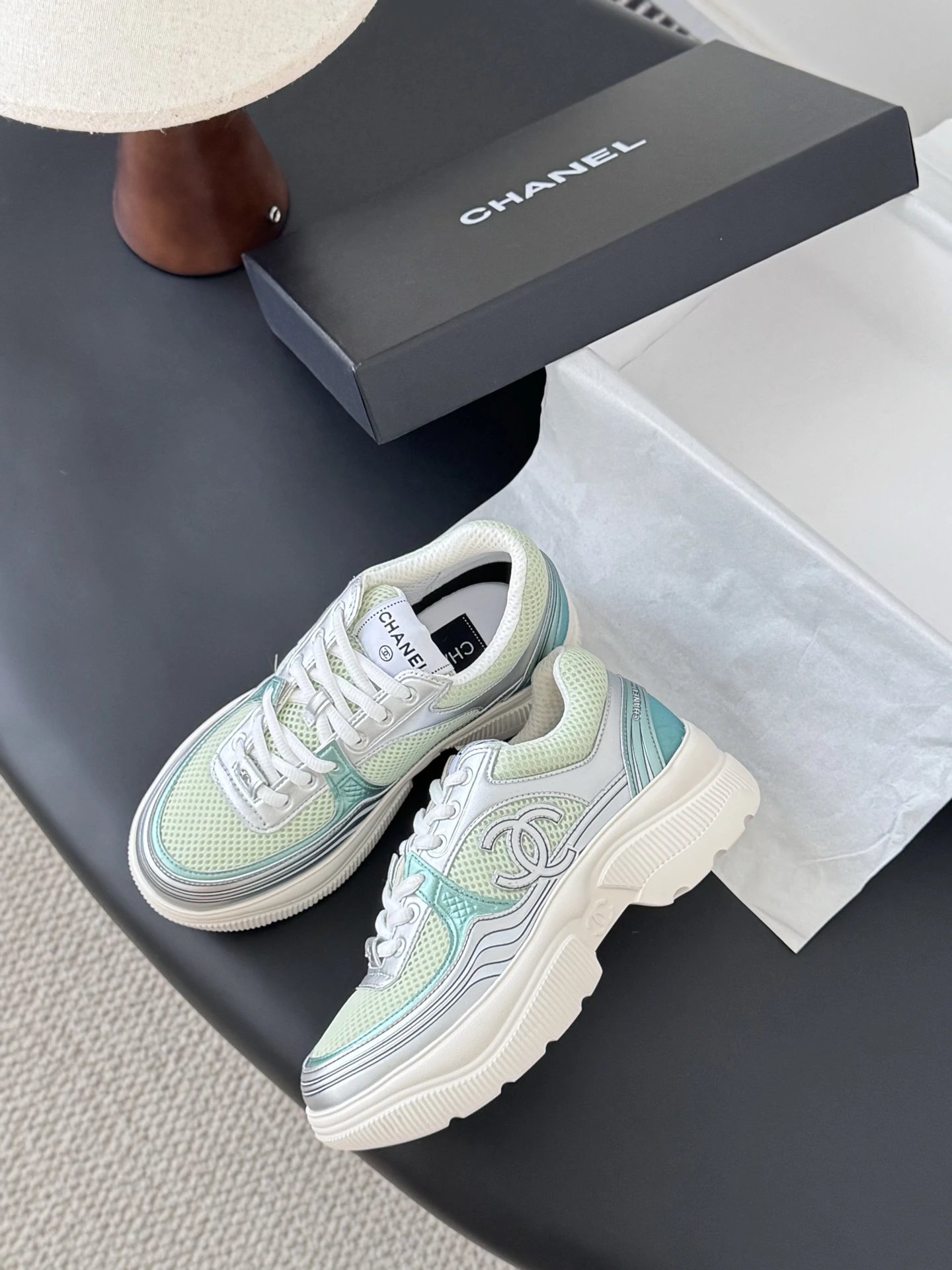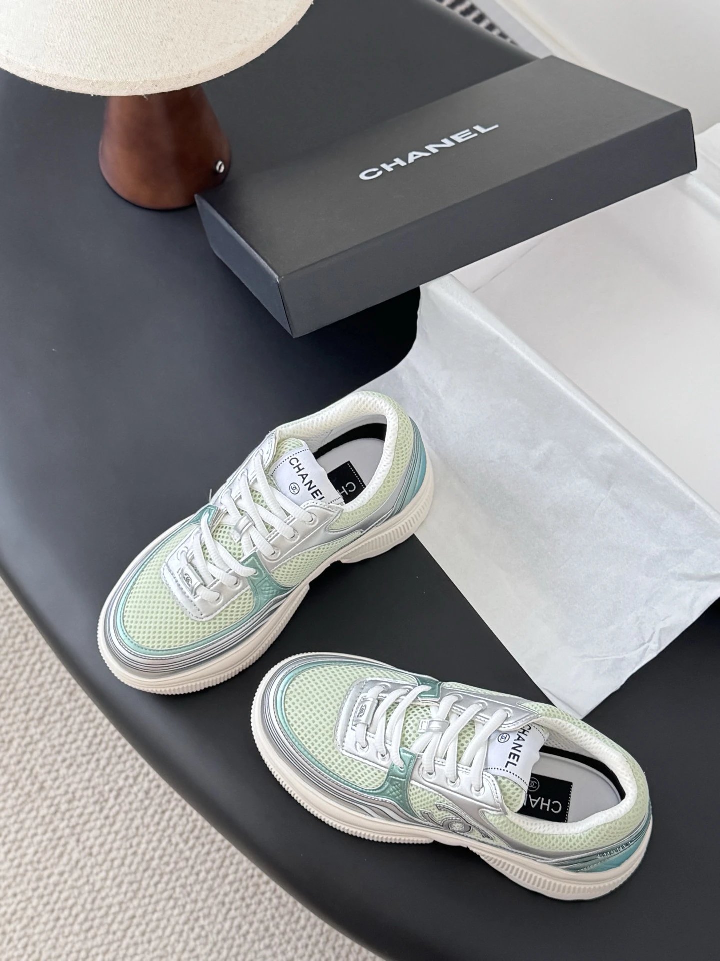 Chanel 25C New Casual Sneakers feature versatile white design with vibrant colorblock accents.