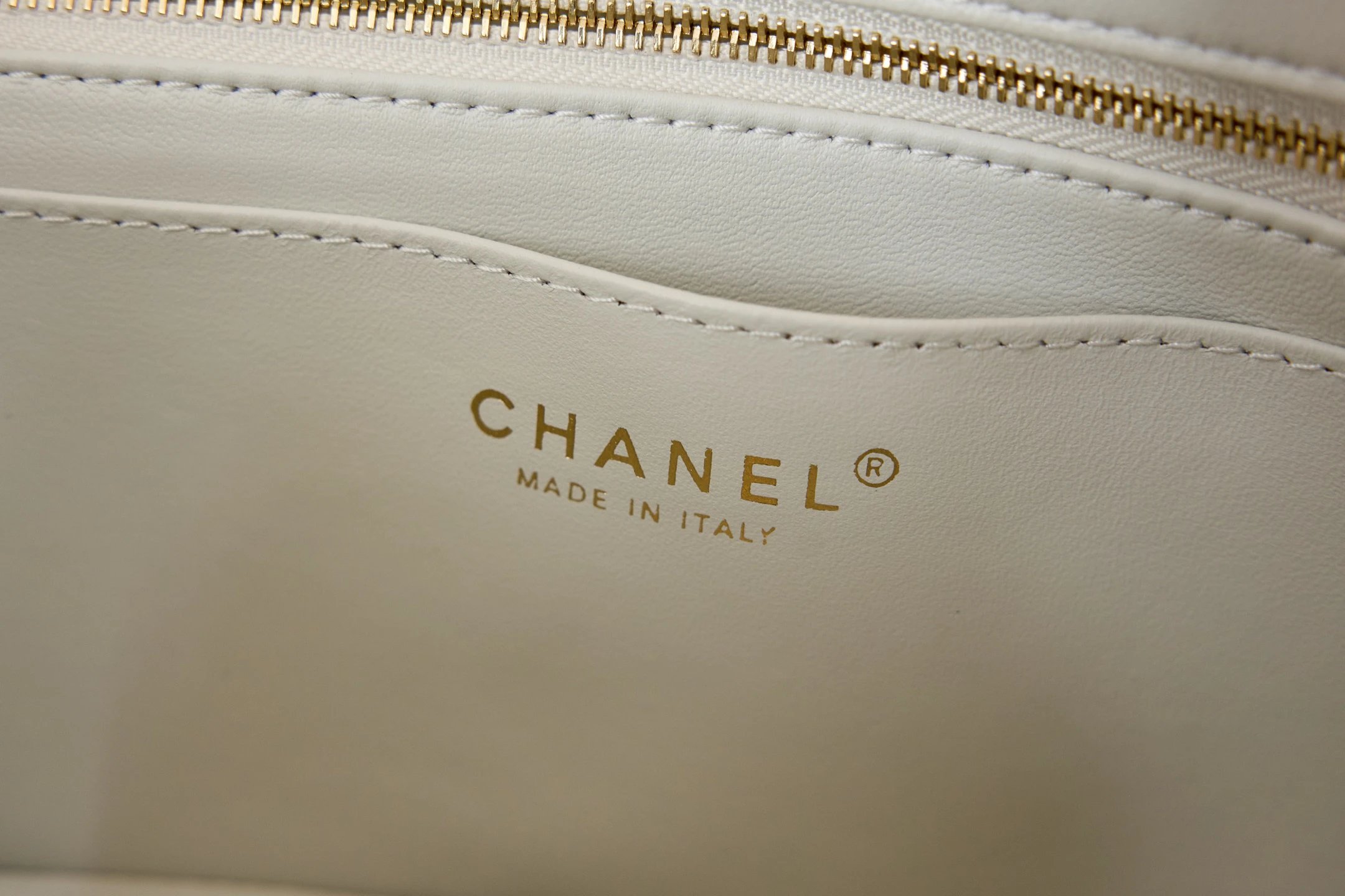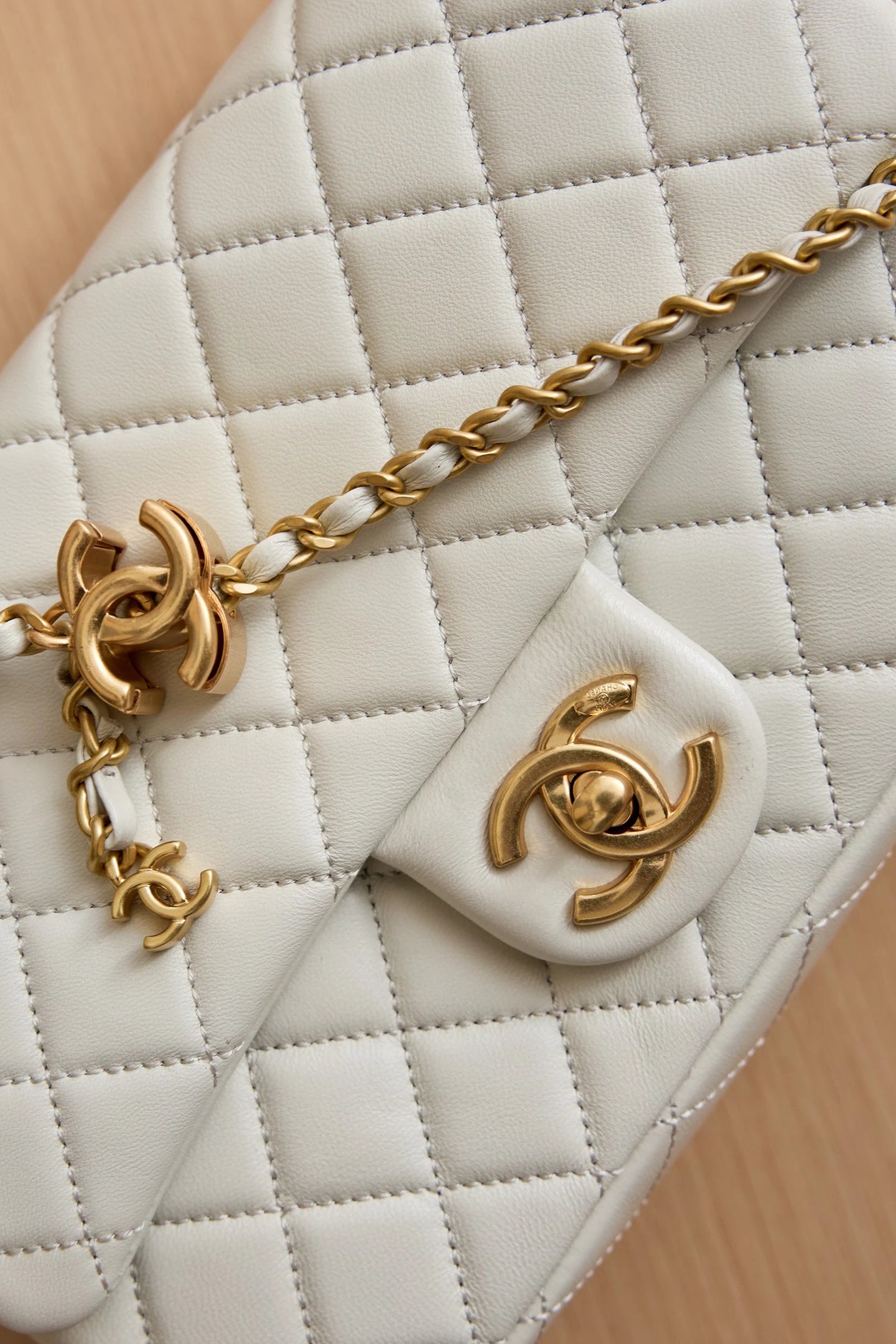 Chanel Double C Adjustable Chain Bag in Light Gray features shiny lambskin with soft texture and durable wear.