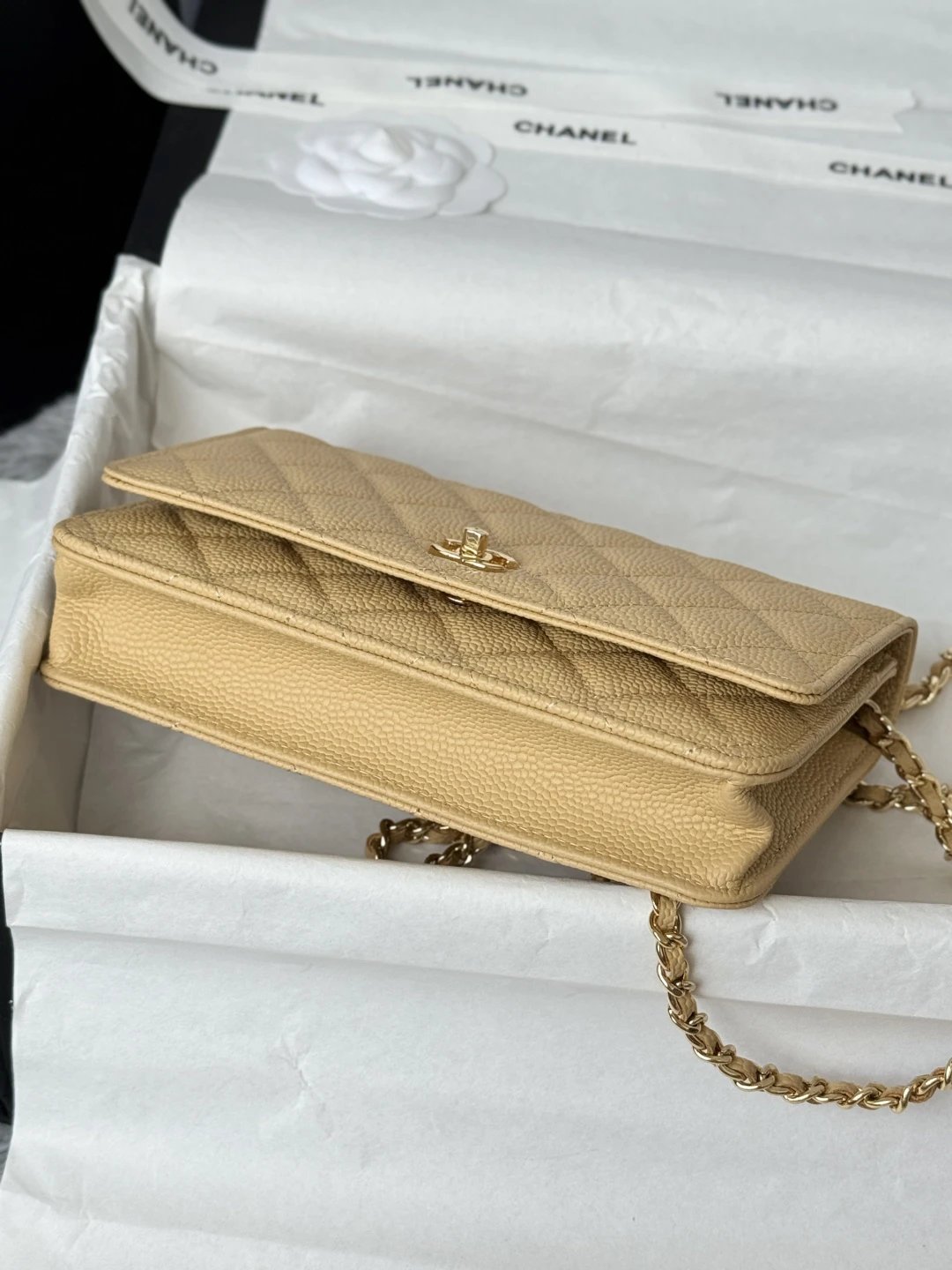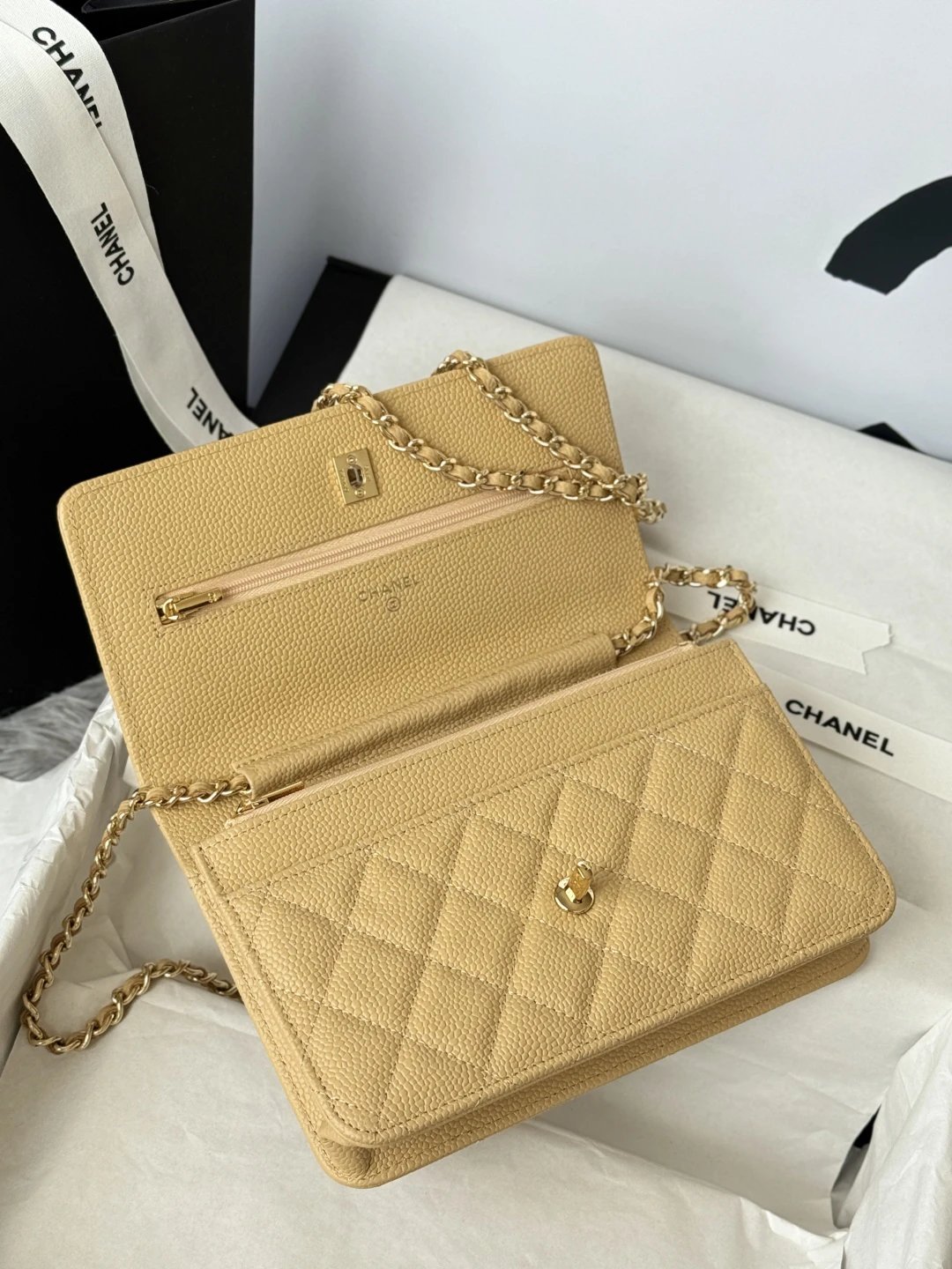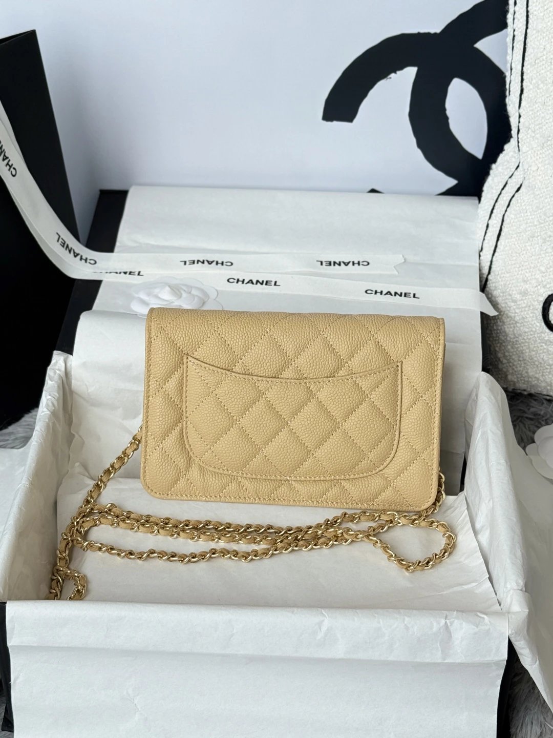 Chanel WOC Classic Multi-Way Handbag uses iconic caviar leather, square shape, multiple carry ways & versatile daily style. Quilted design is full but natural.