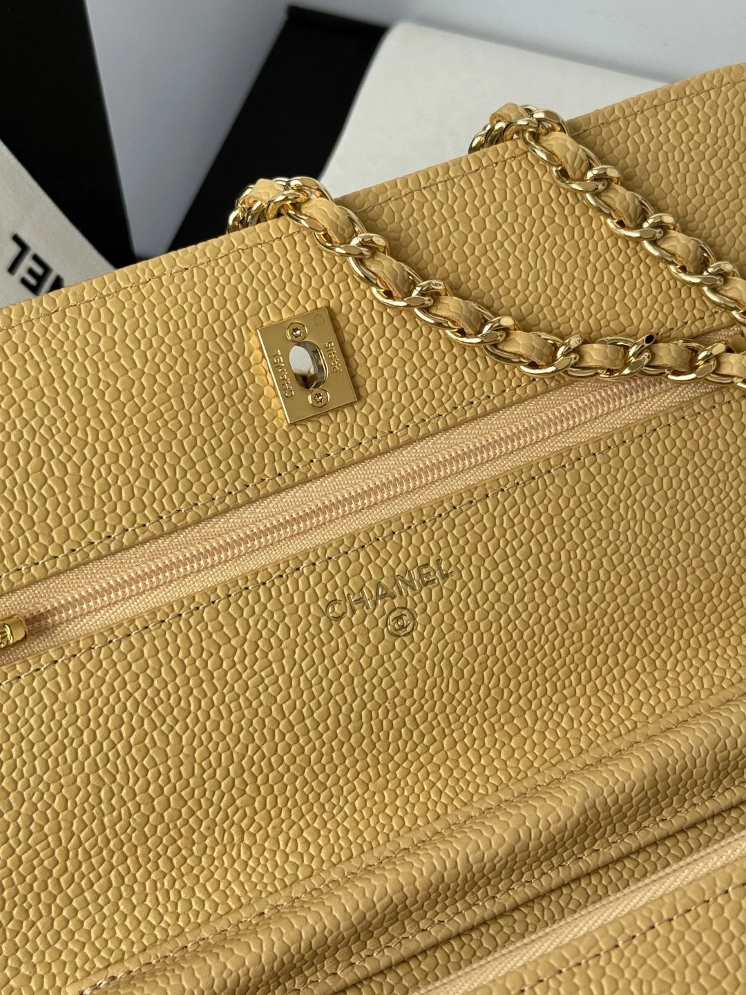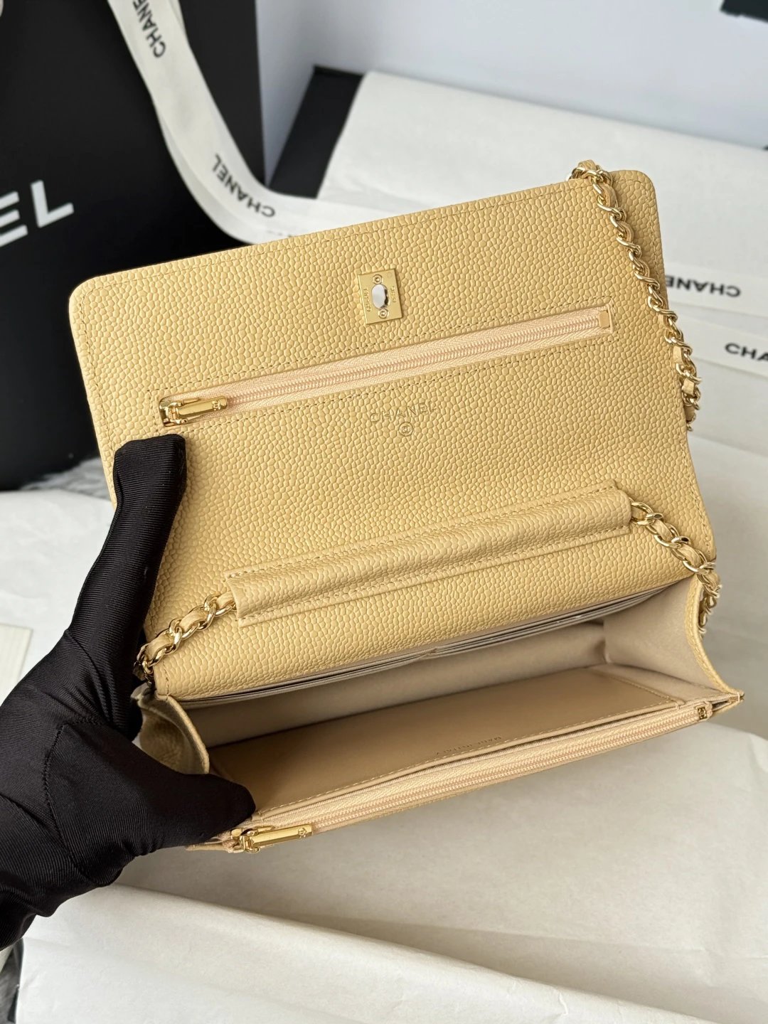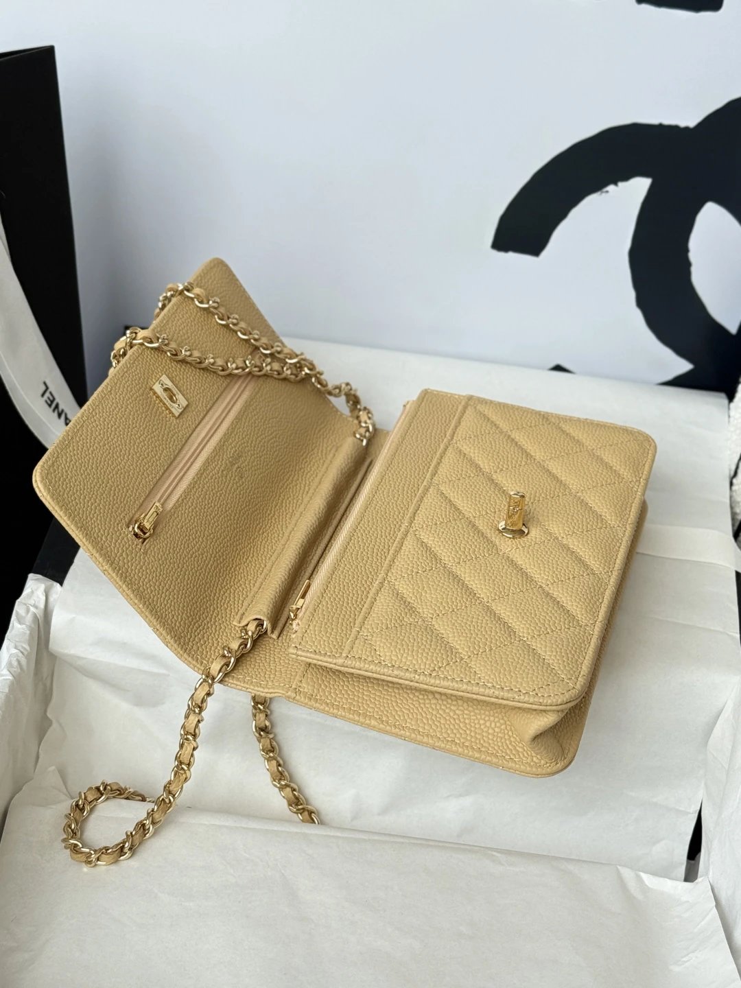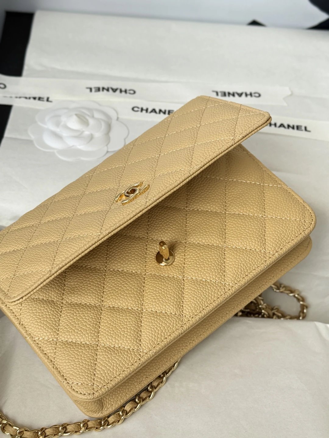 Chanel WOC Classic Multi-Way Handbag uses iconic caviar leather, square shape, multiple carry ways & versatile daily style. Quilted design is full but natural.
