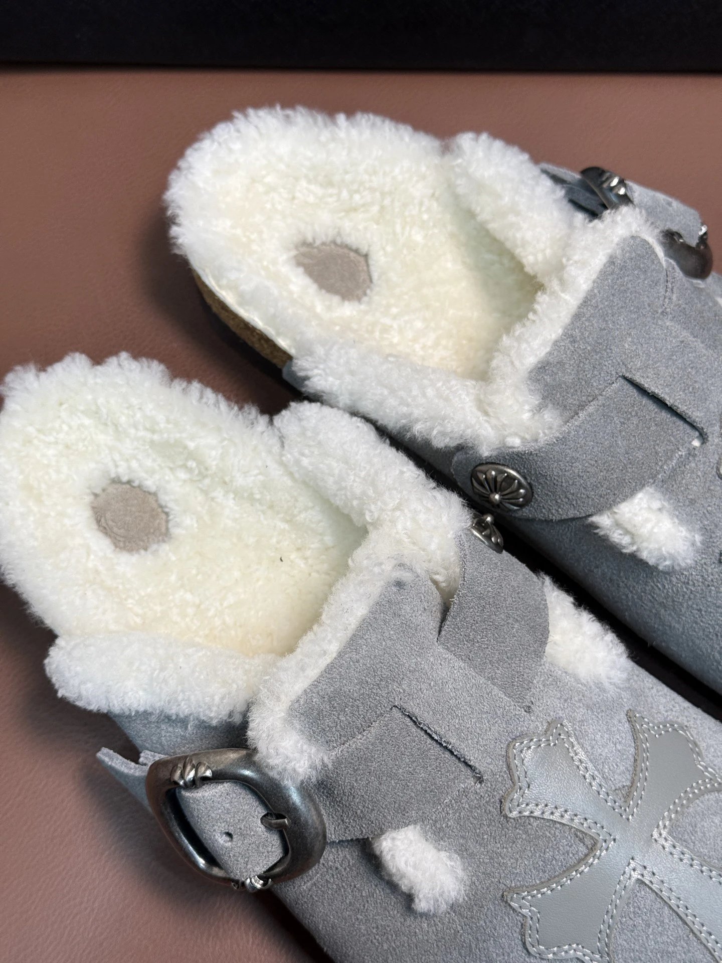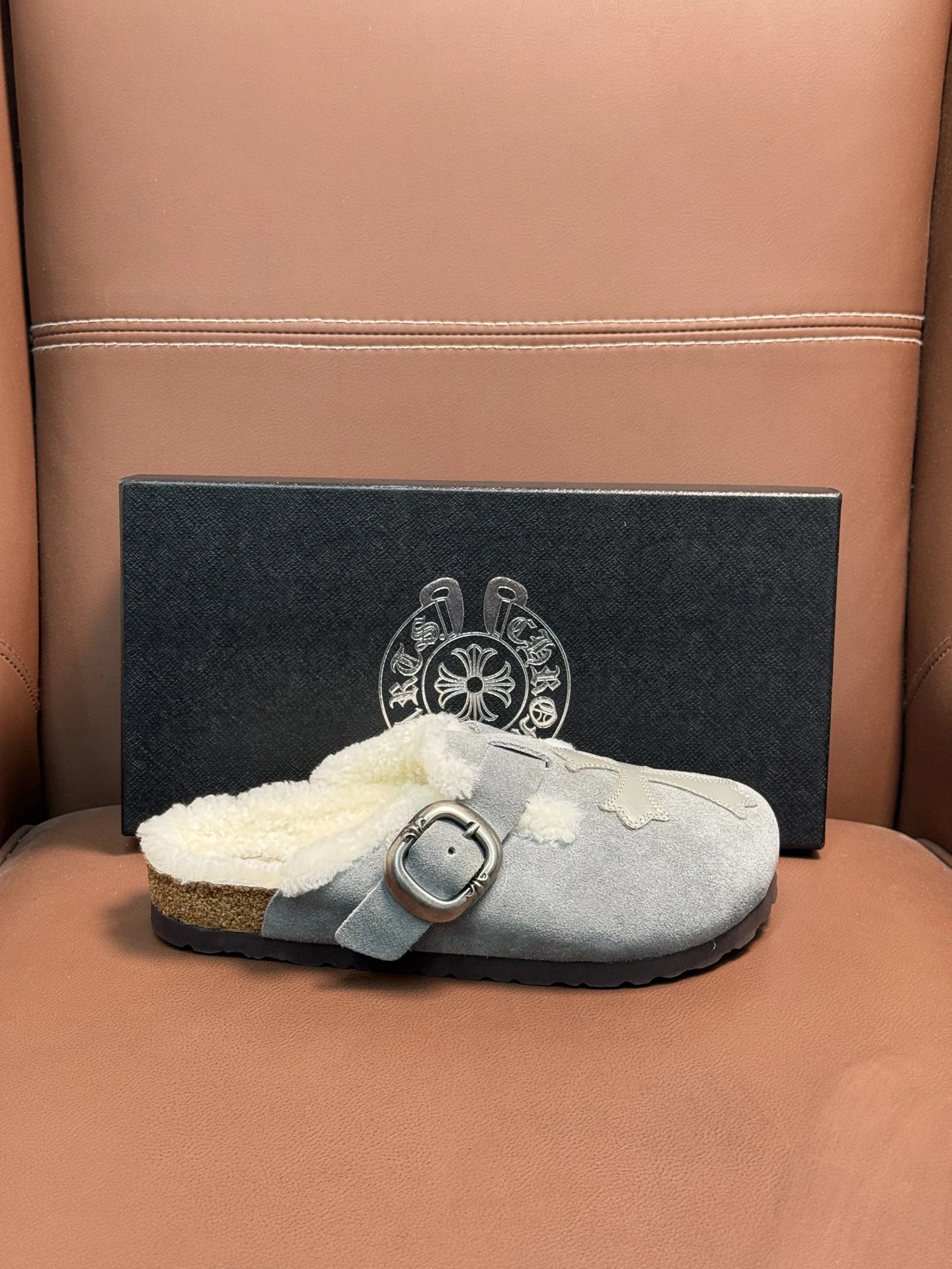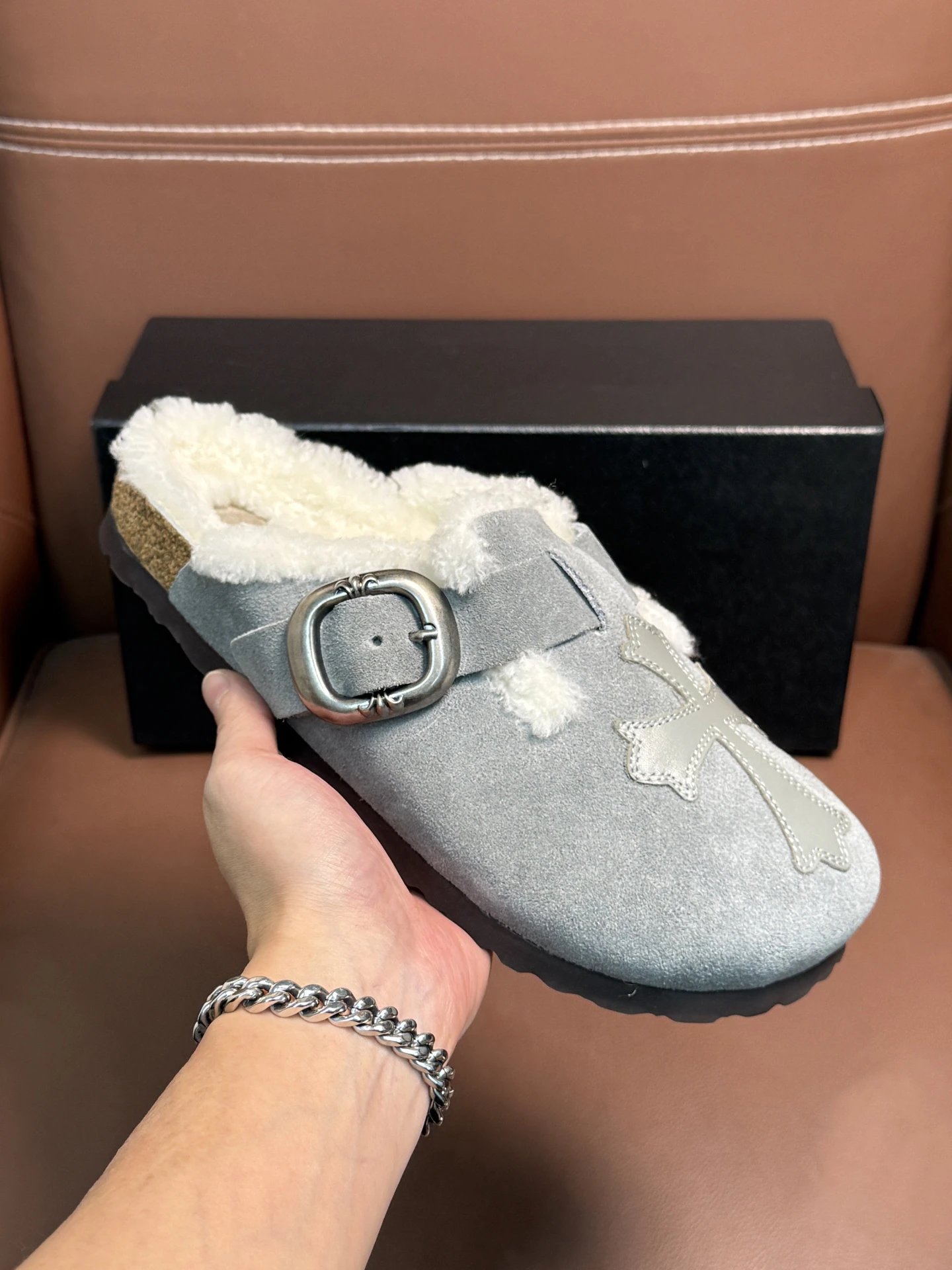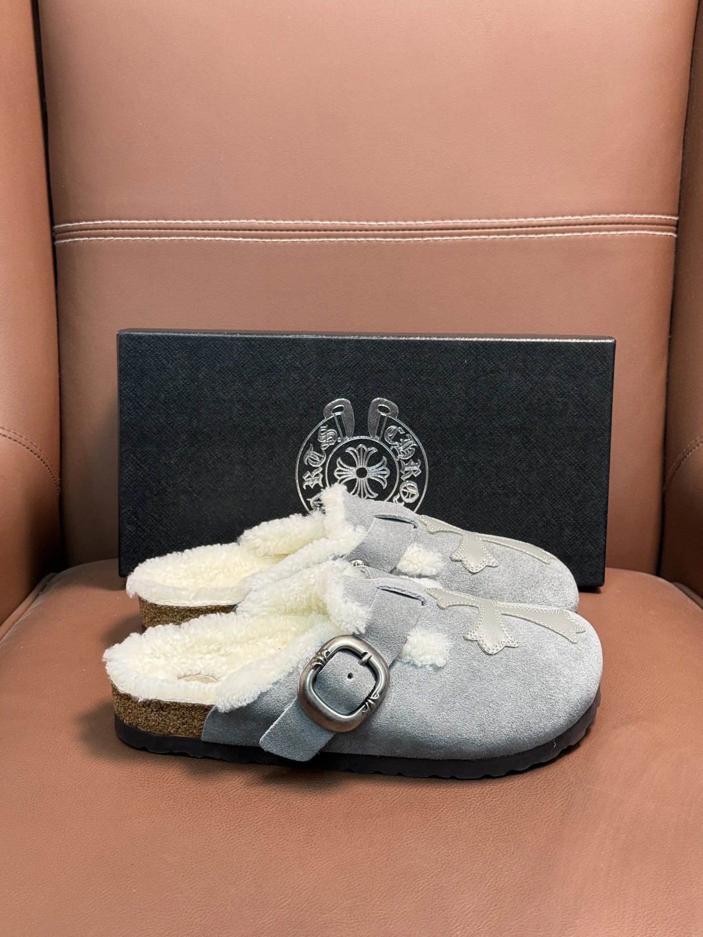 ComeHearts x Birkensto Faux Fur Slippers feature imported cowhide with hardware accents. Comfortable, unique, perfect for commuting/work/travel. Sizes: 38-46