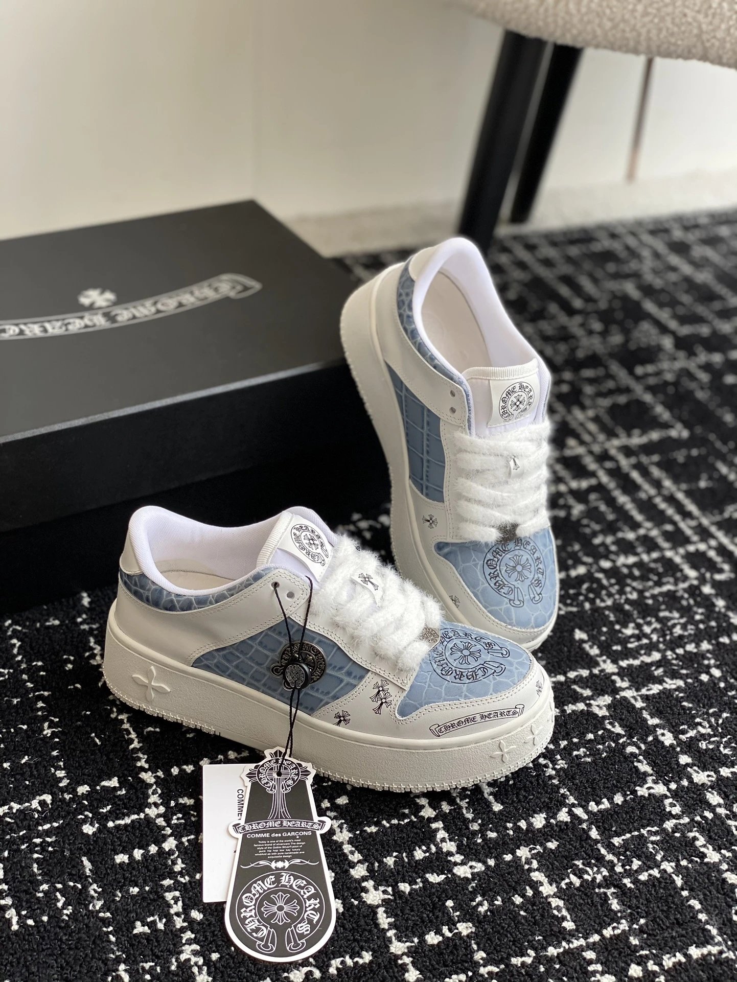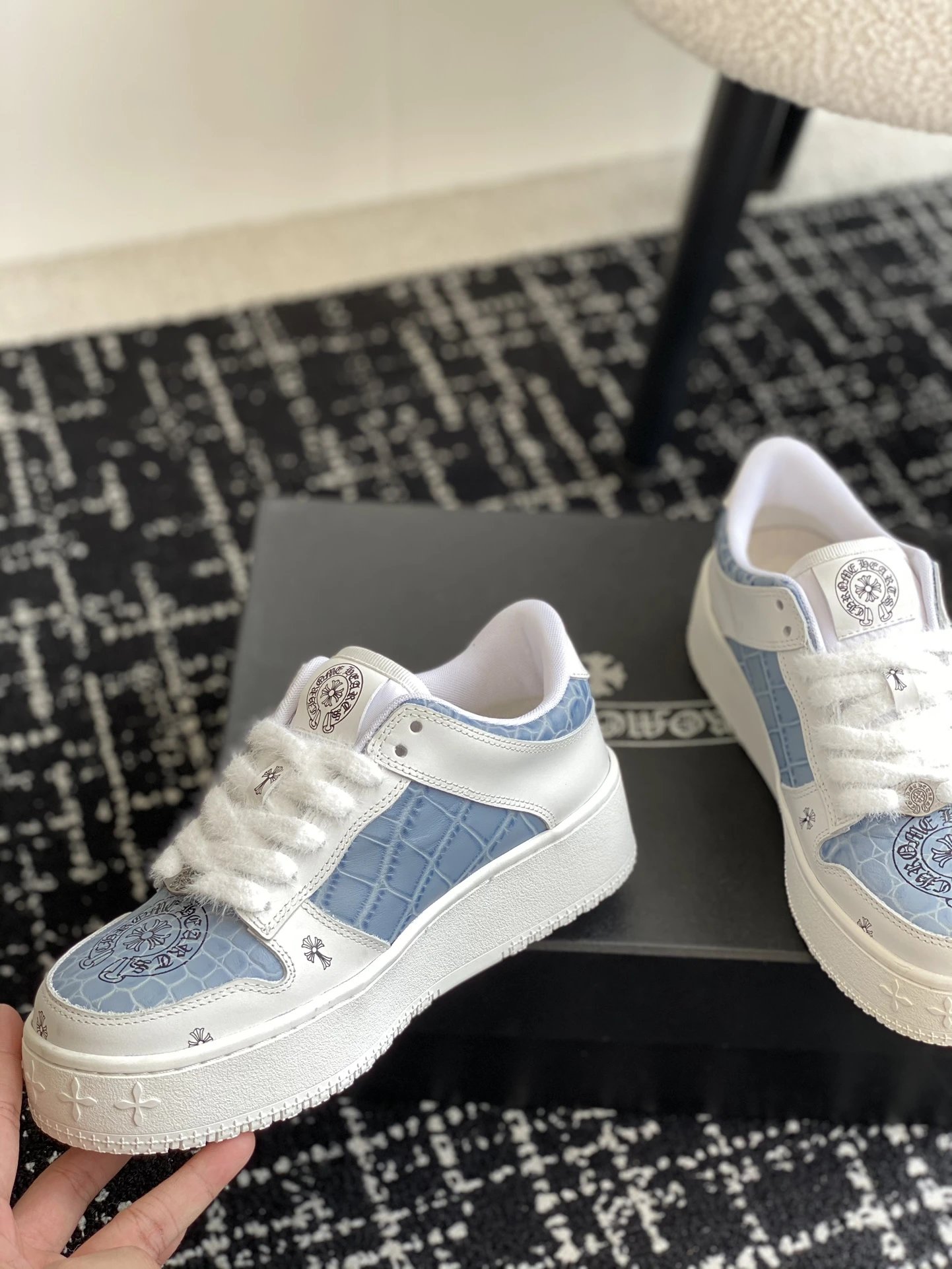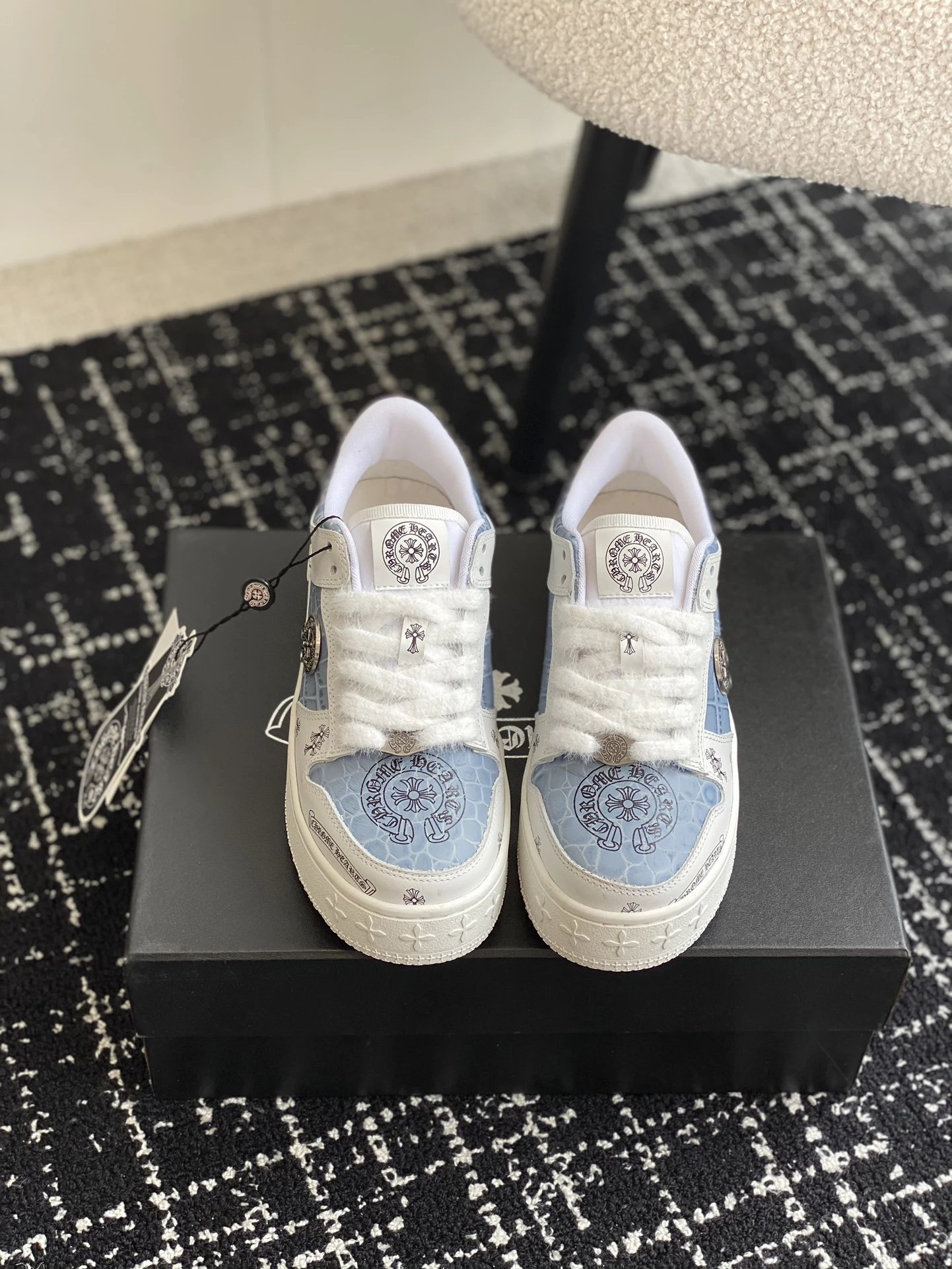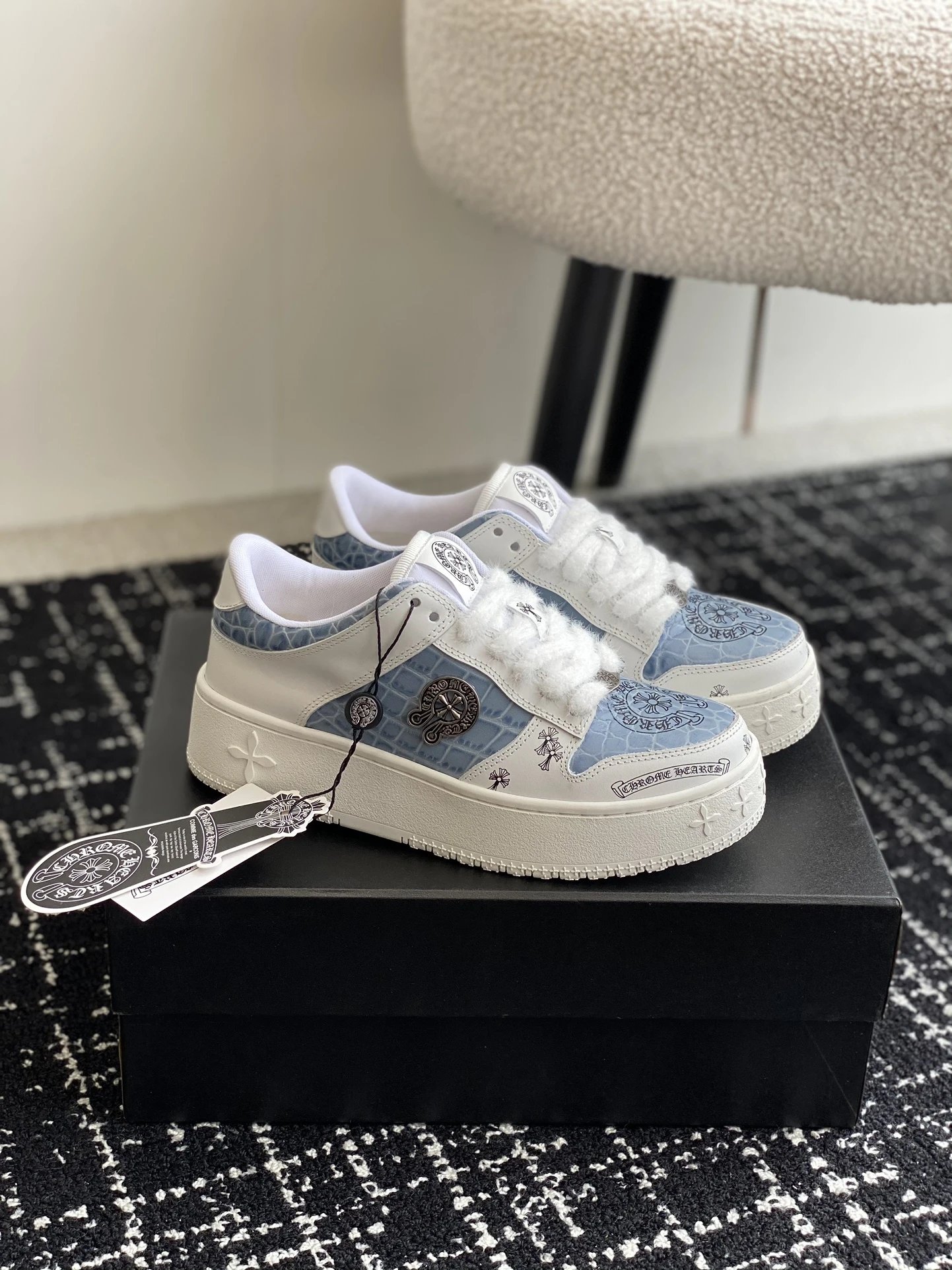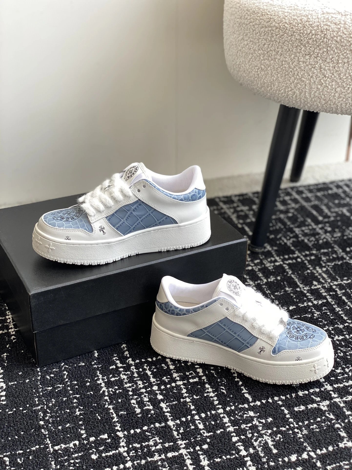 Chrome Hearts 24SS new autumn & winter white sneakers use premium cowhide upper and sheepskin lining.
