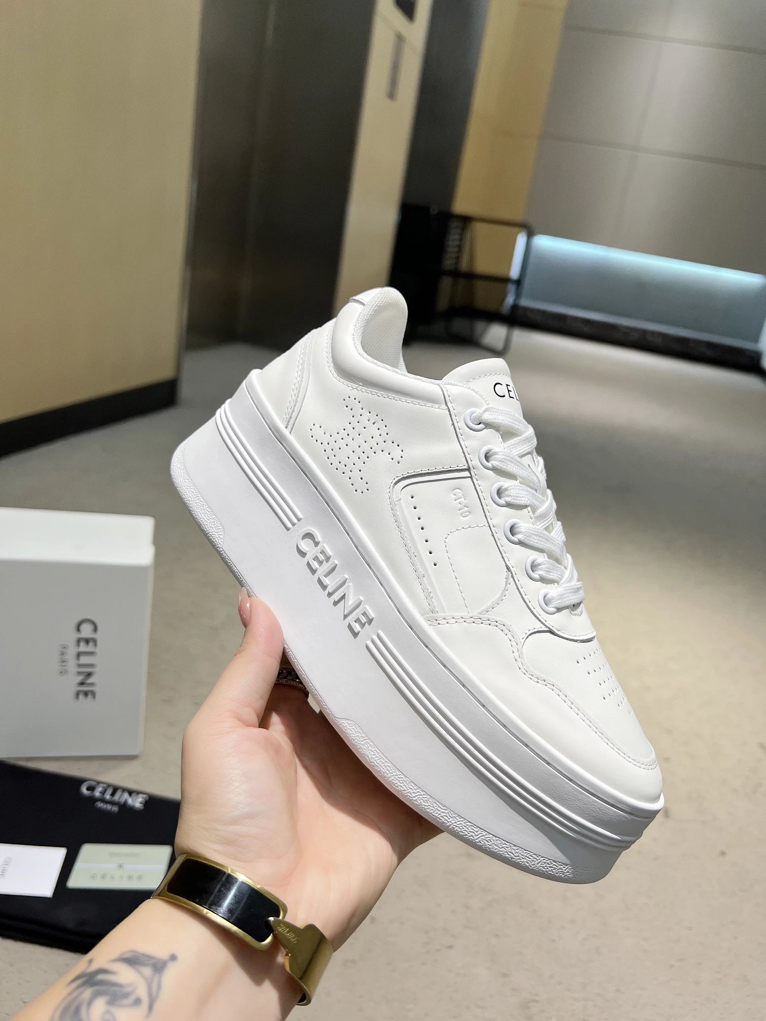 CELINE TRAINER CT10 Upgraded Low-Top Leather Sneakers are stylish & versatile for commuting/travel.