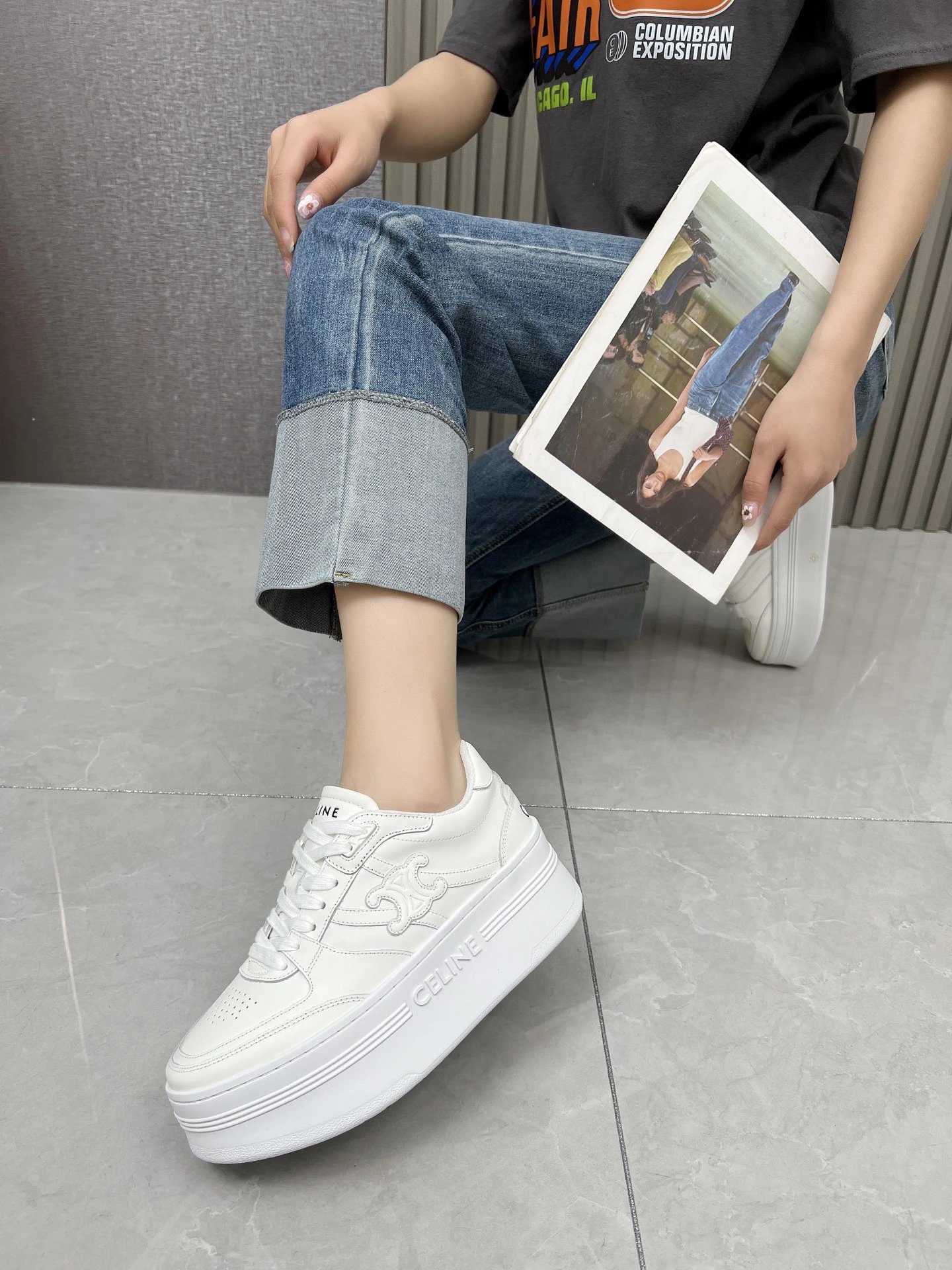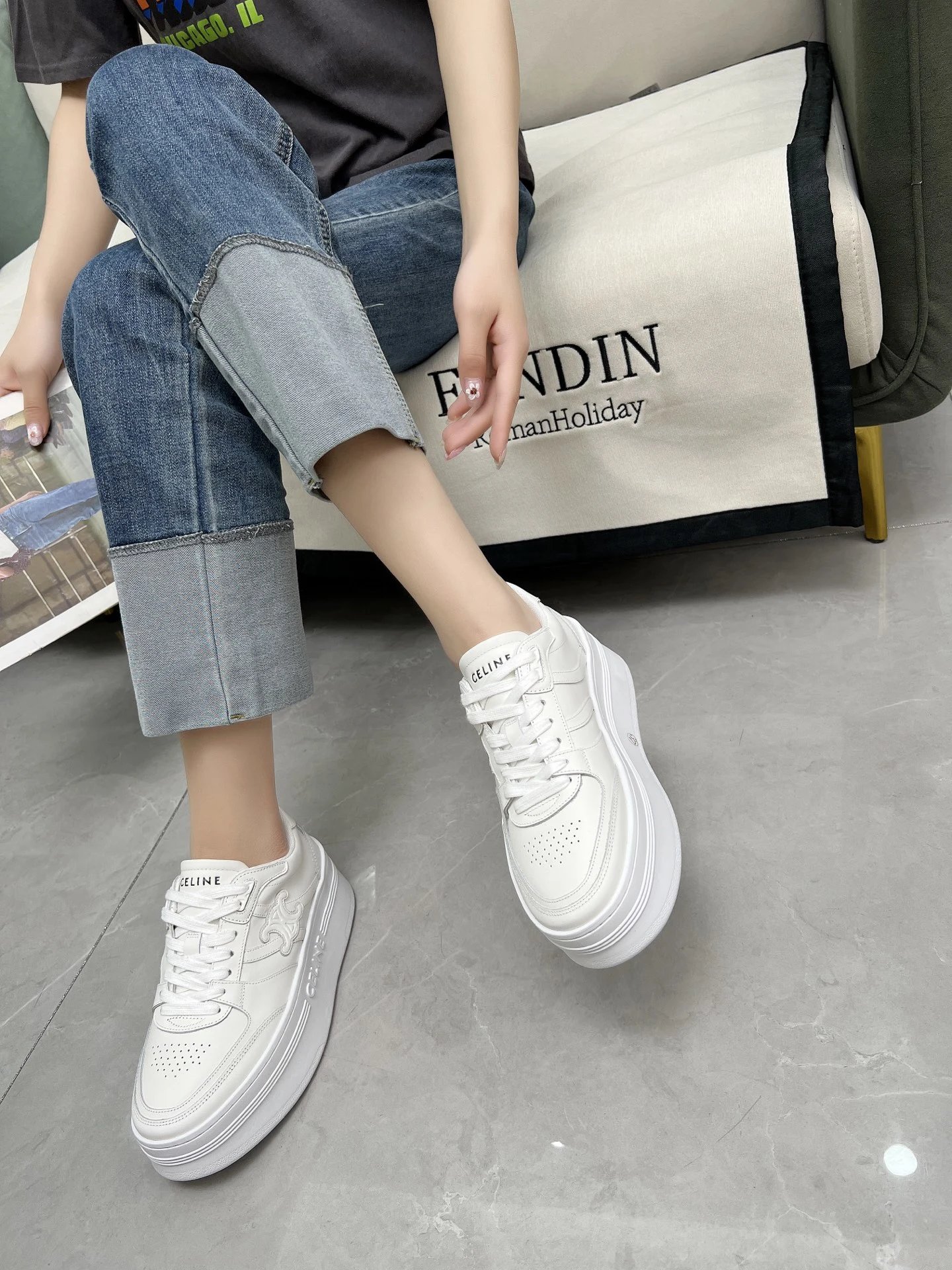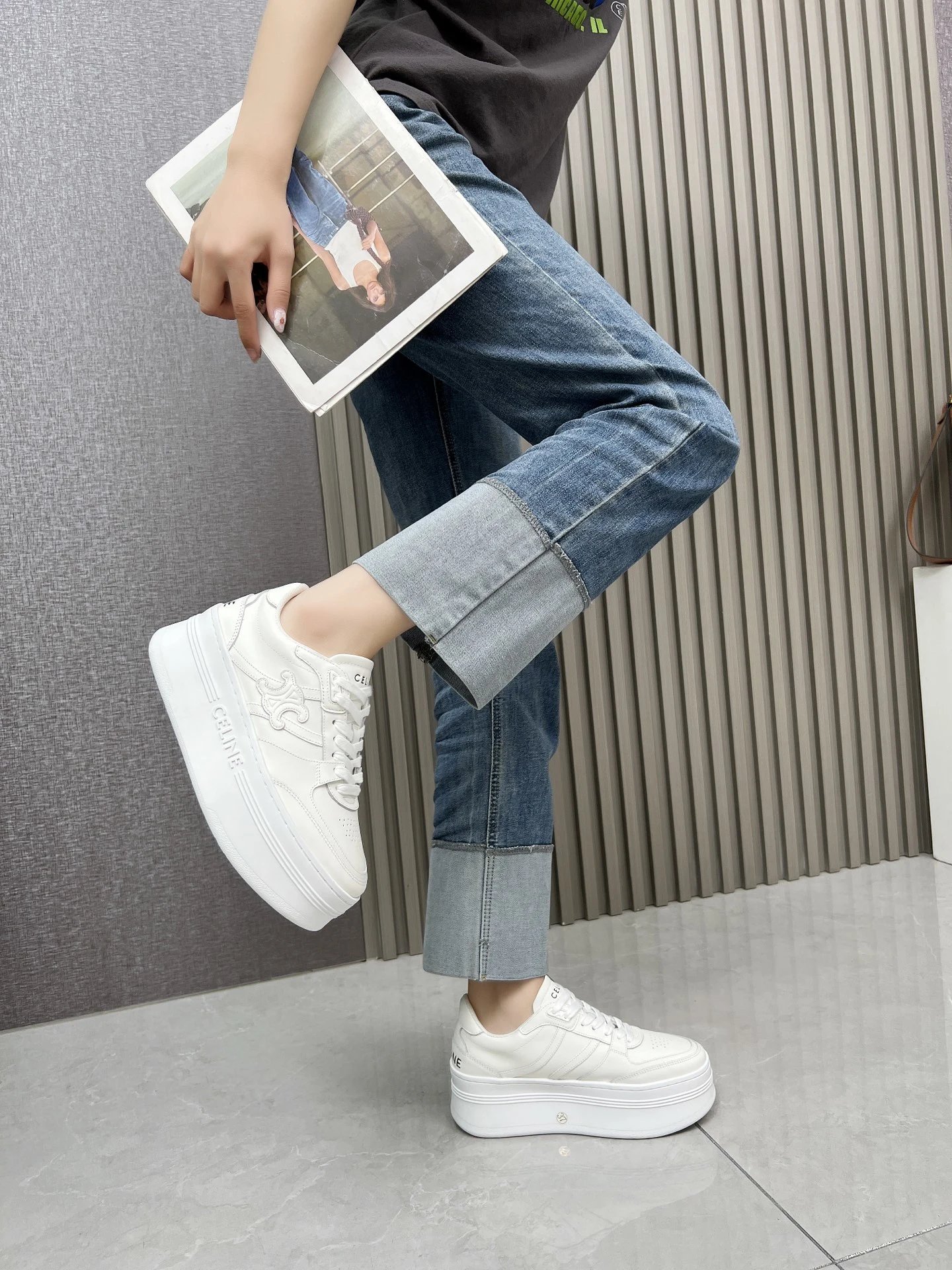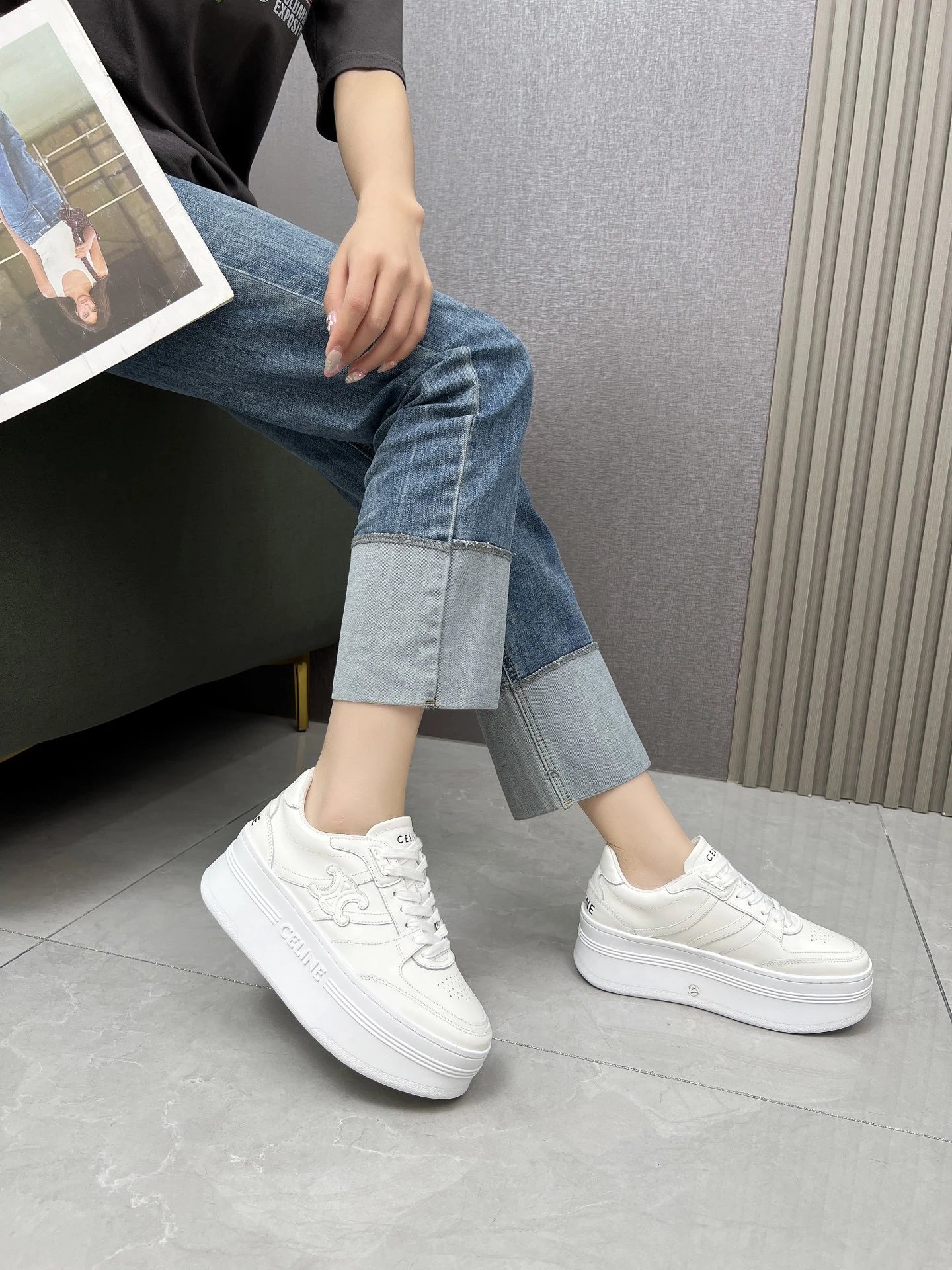 CELINE CT11 Spring Summer Triomphe Logo Casual Sneakers blend softness & edginess with minimalist design, perfect for daily wear—simple, versatile, lightweight & comfortable.