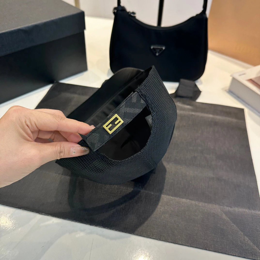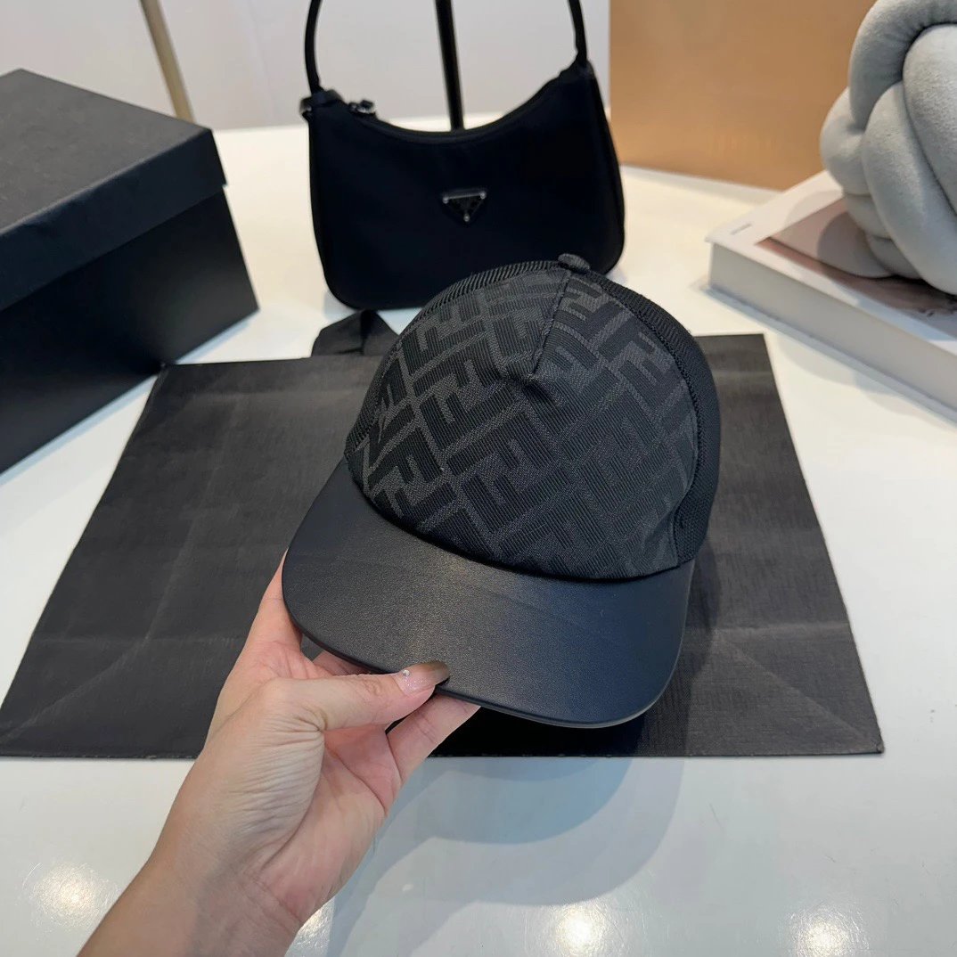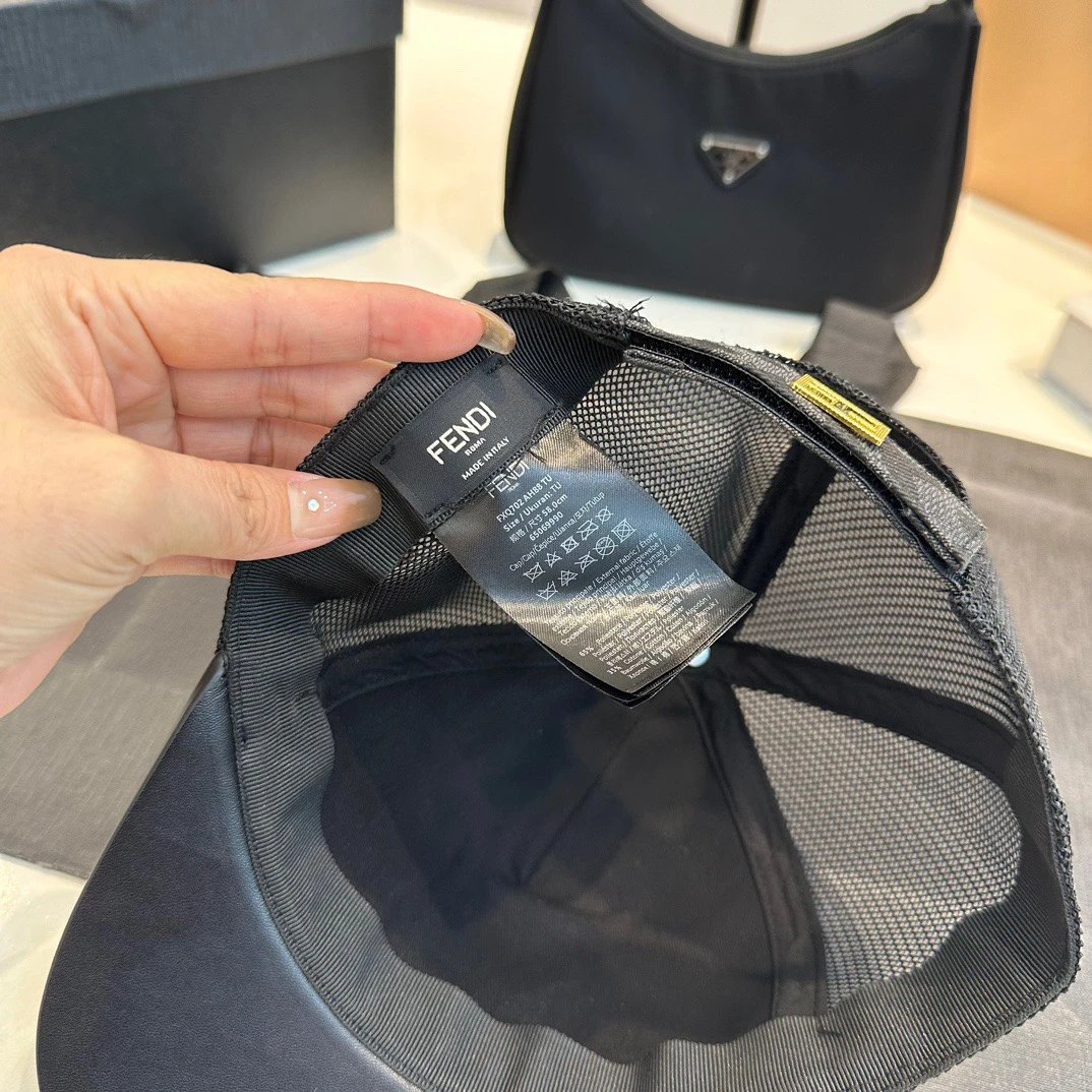 Fendi Dark Gray FF Logo Semi-Soft Hat: Back strap with FENDI metal lettering, leather tongue, made in Italy.