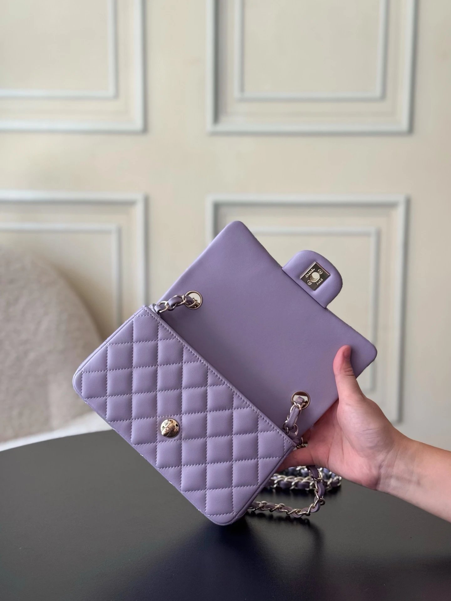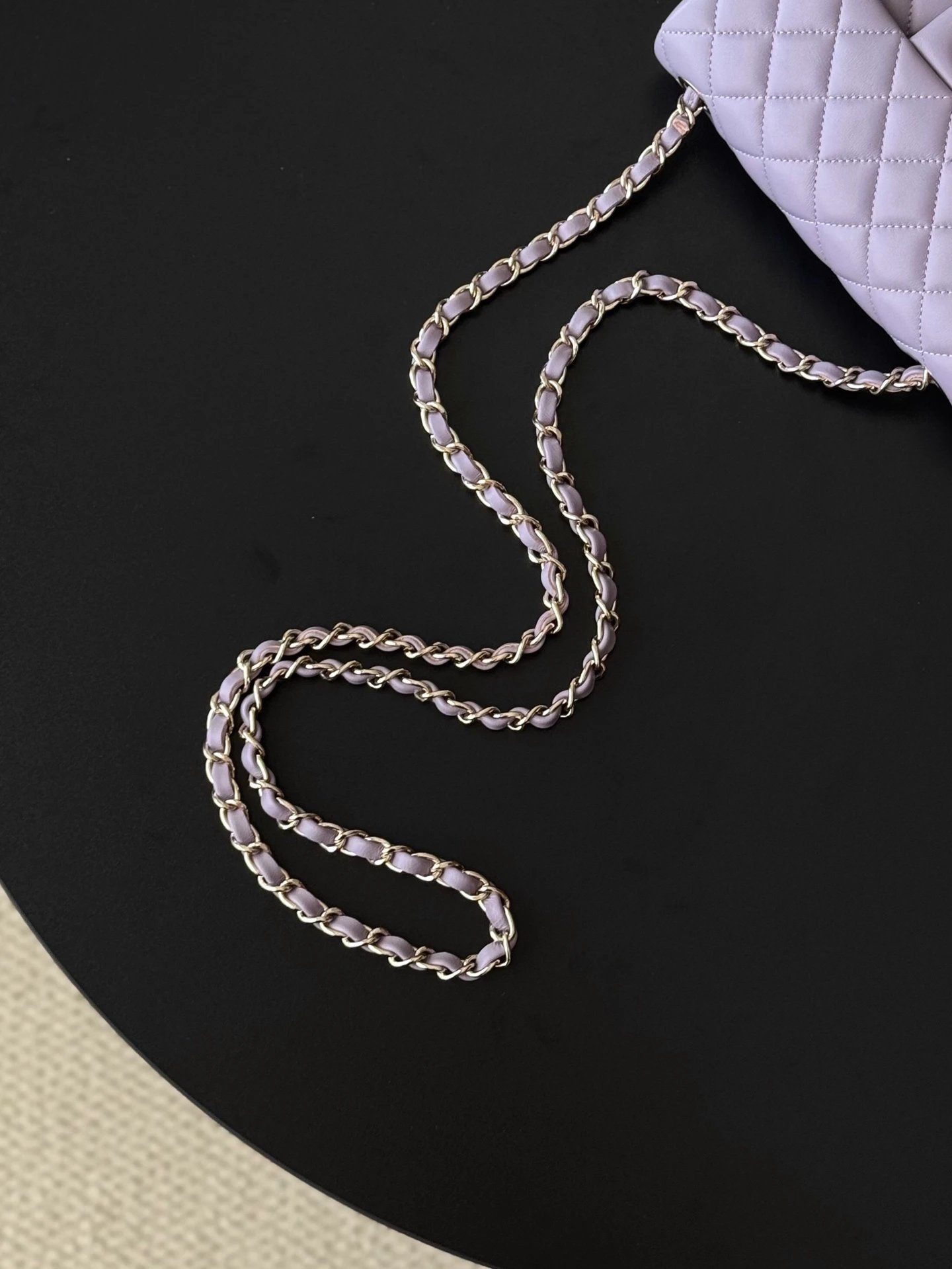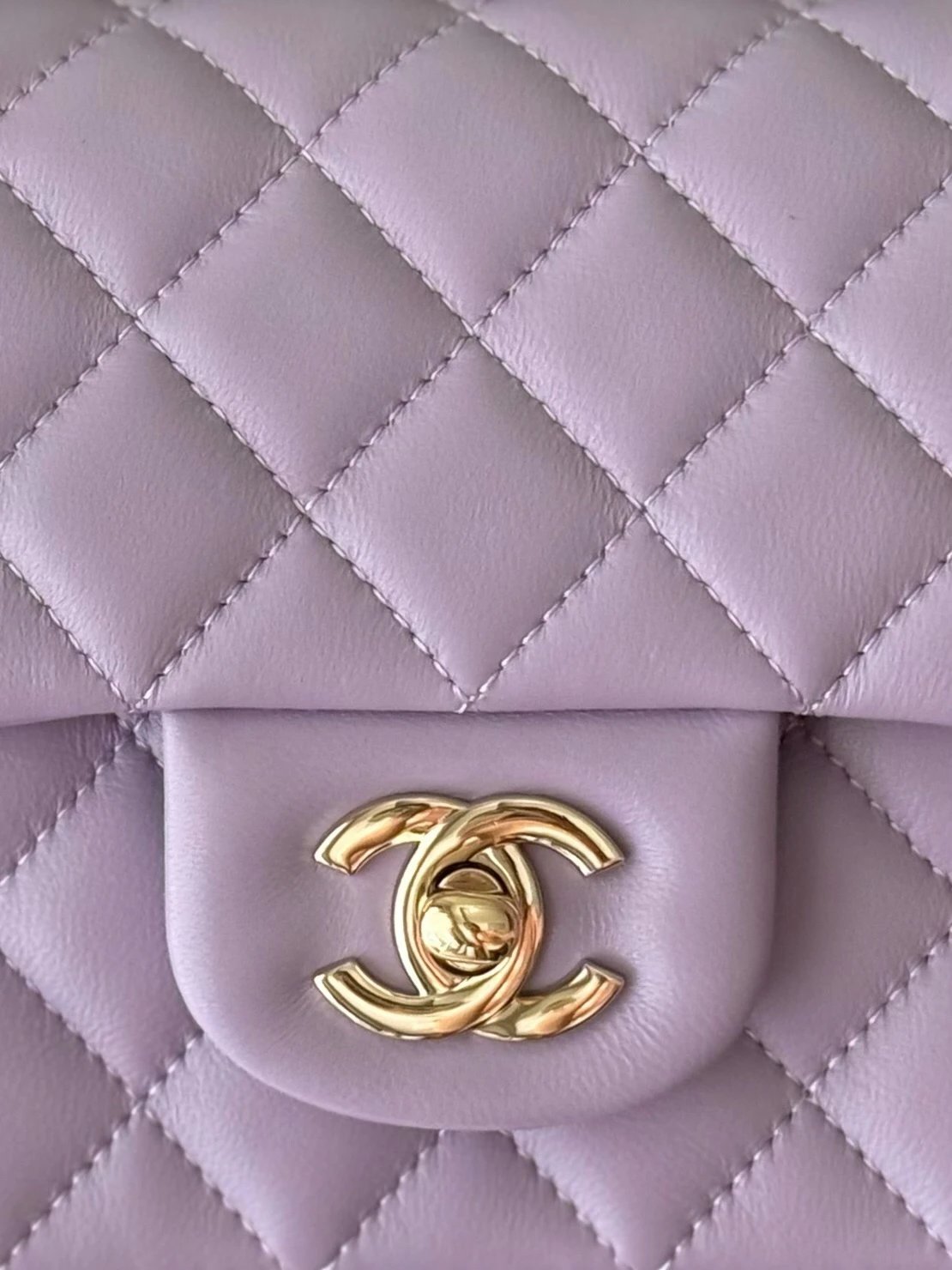 Chanel Classic Flap Large Mini bag uses authentic Haas lambskin lining & 24K gold-plated steel hardware.