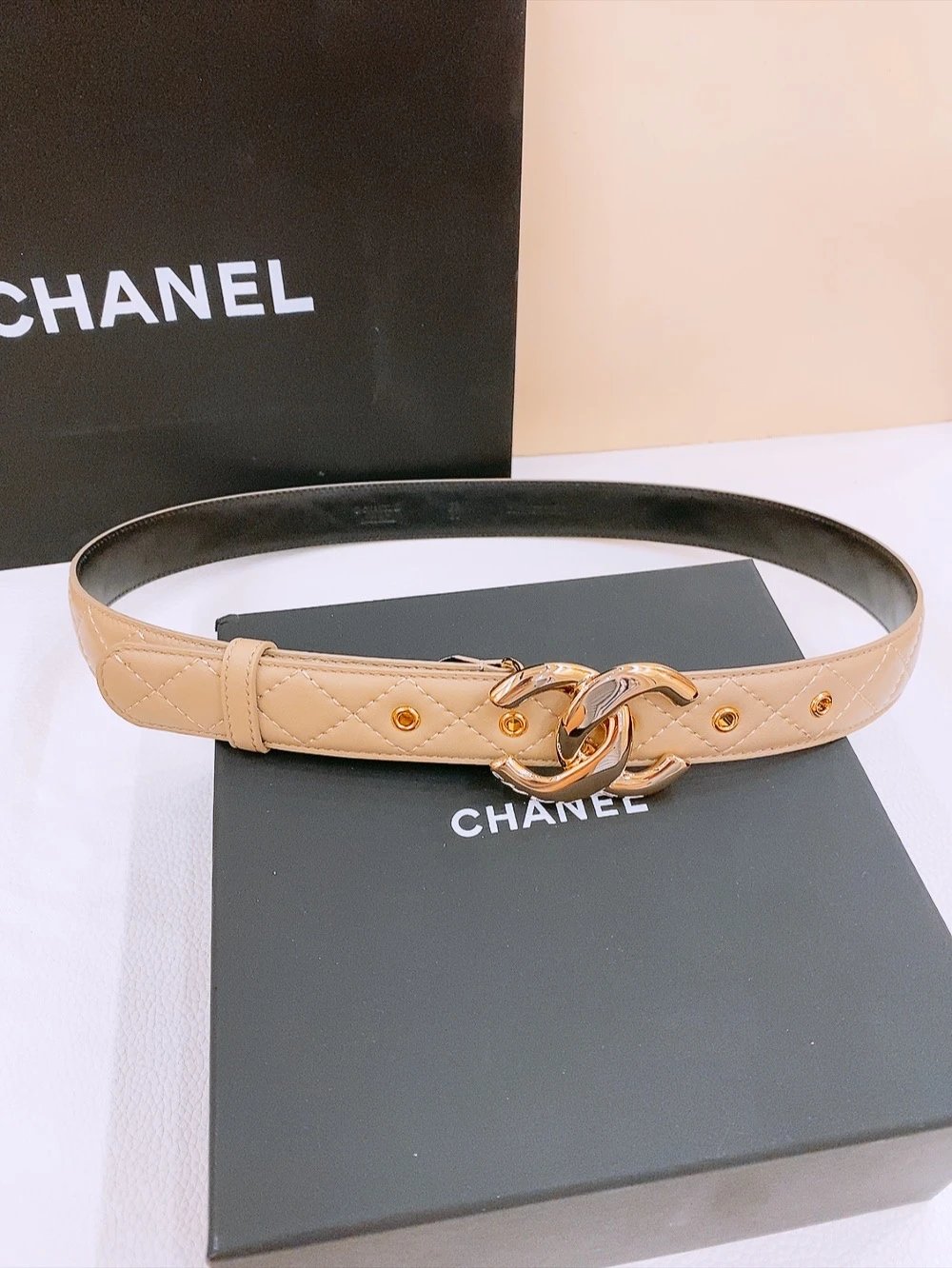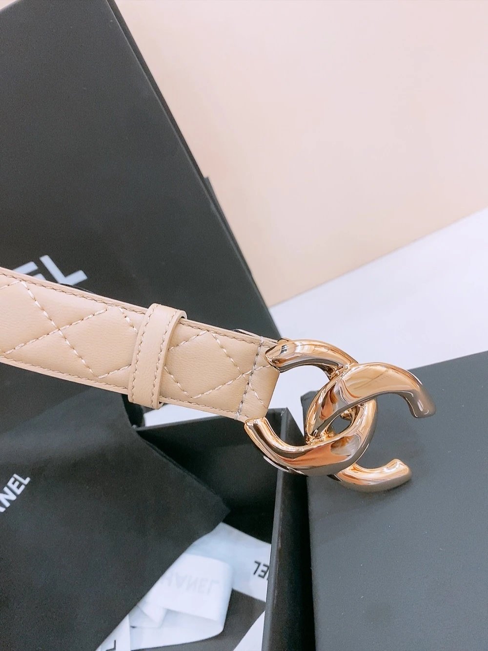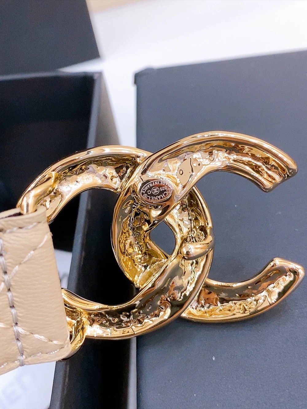 Chanel New Women's Belt features classic lambskin leather with iconic gold Double C buckle.