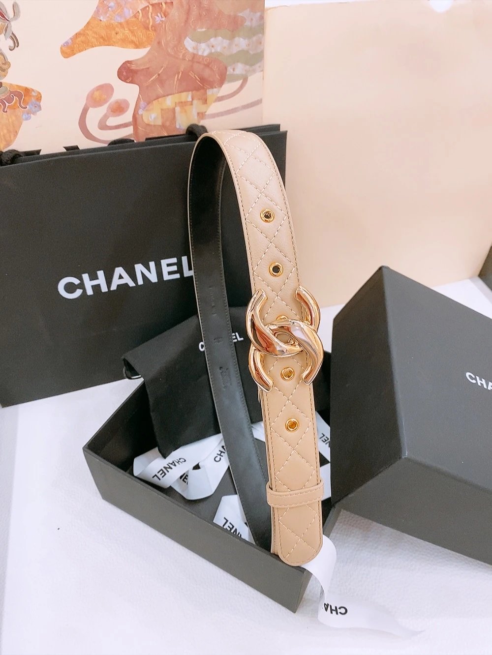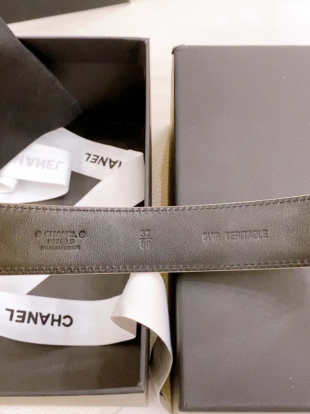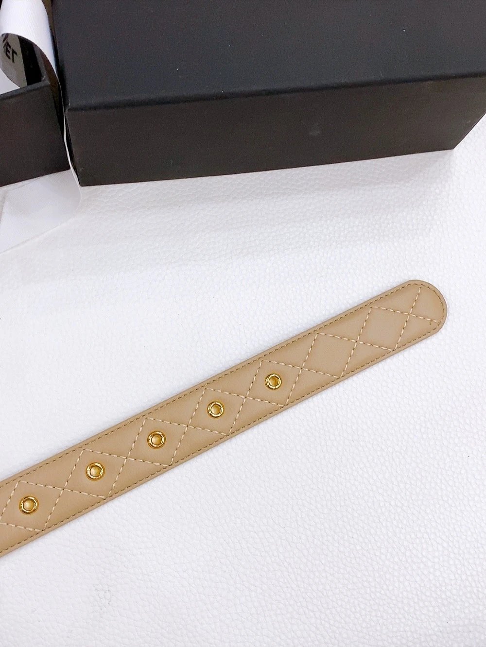 Chanel New Women's Belt features classic lambskin leather with iconic gold Double C buckle.