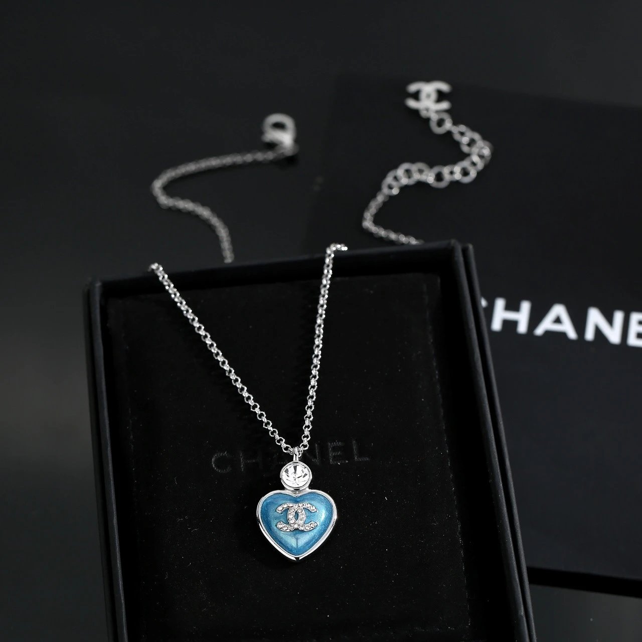 Chanel Heart Peach Blue Necklace has high-quality same material, exquisite fine craftsmanship, and blingbling crystals for a luxurious look.