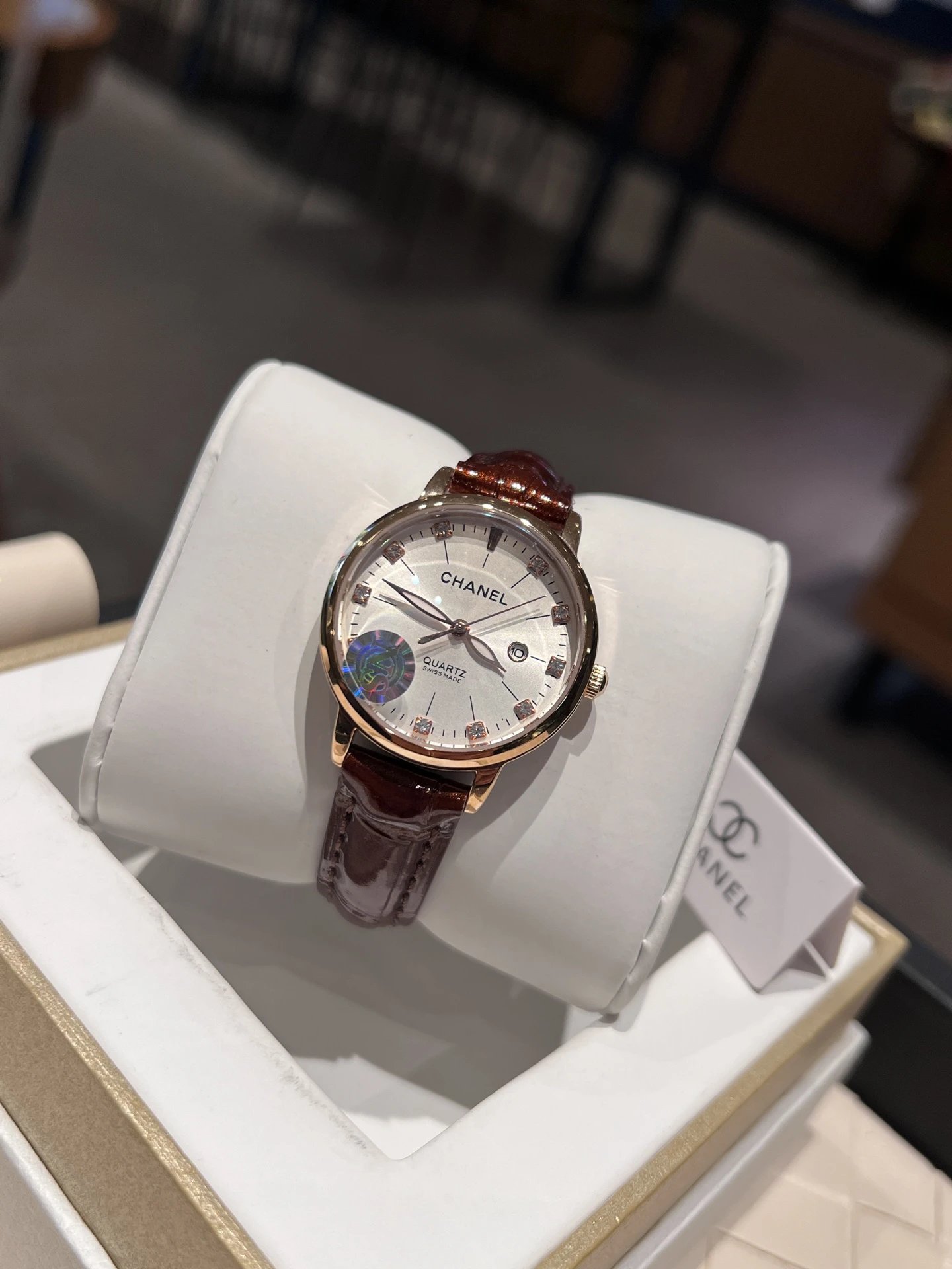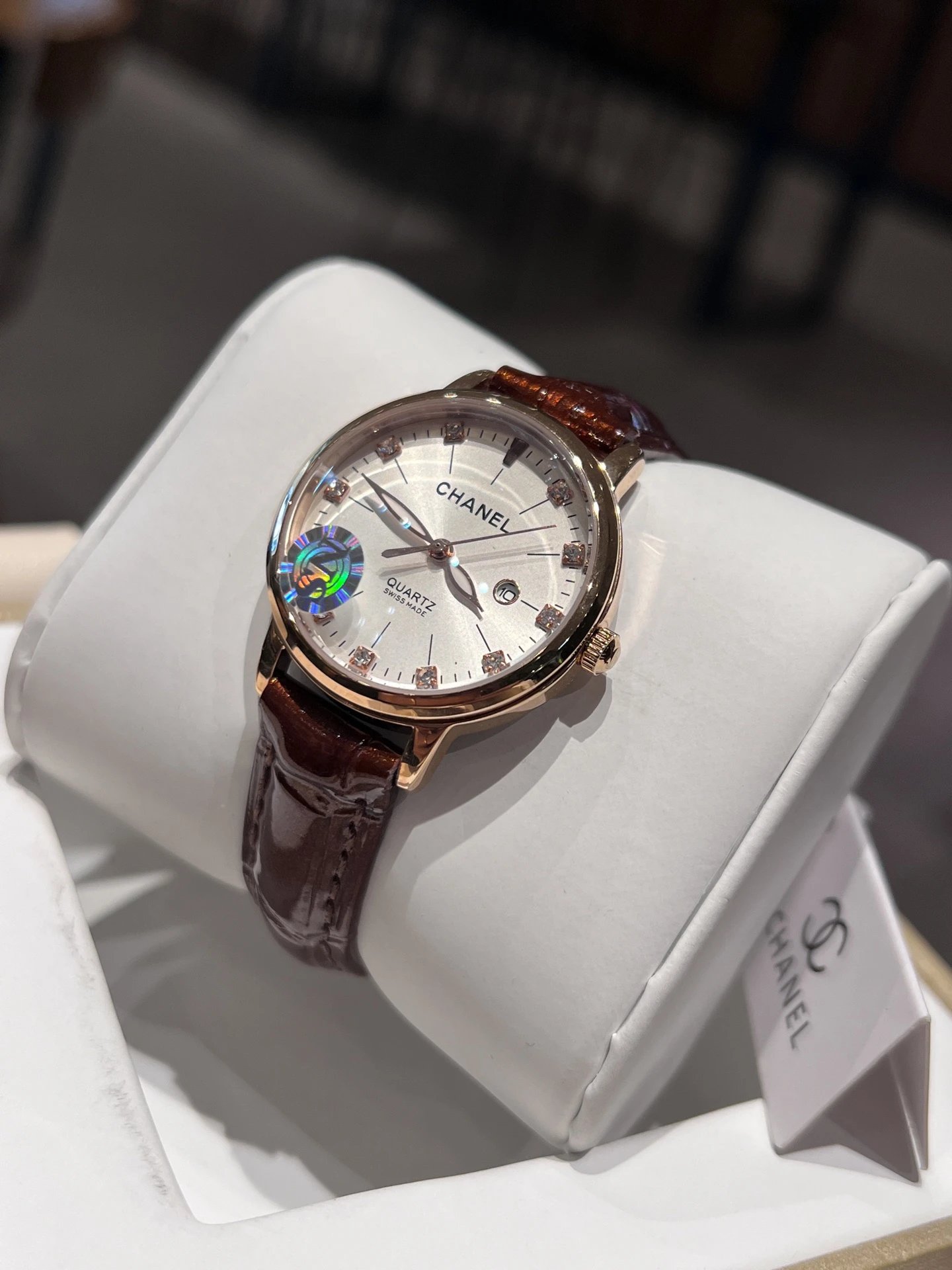Chanel Women's Quartz Watch uses 316L stainless steel case (34mm diameter, 8mm thick).