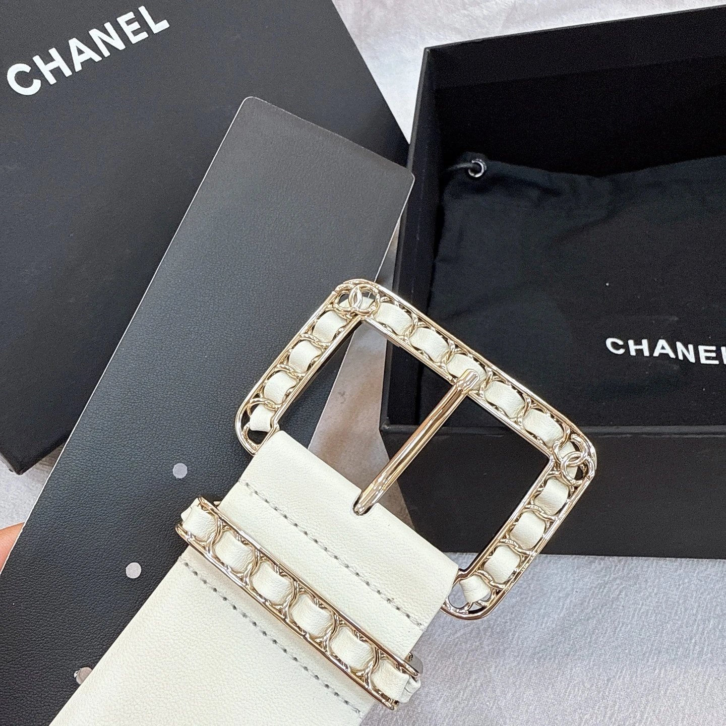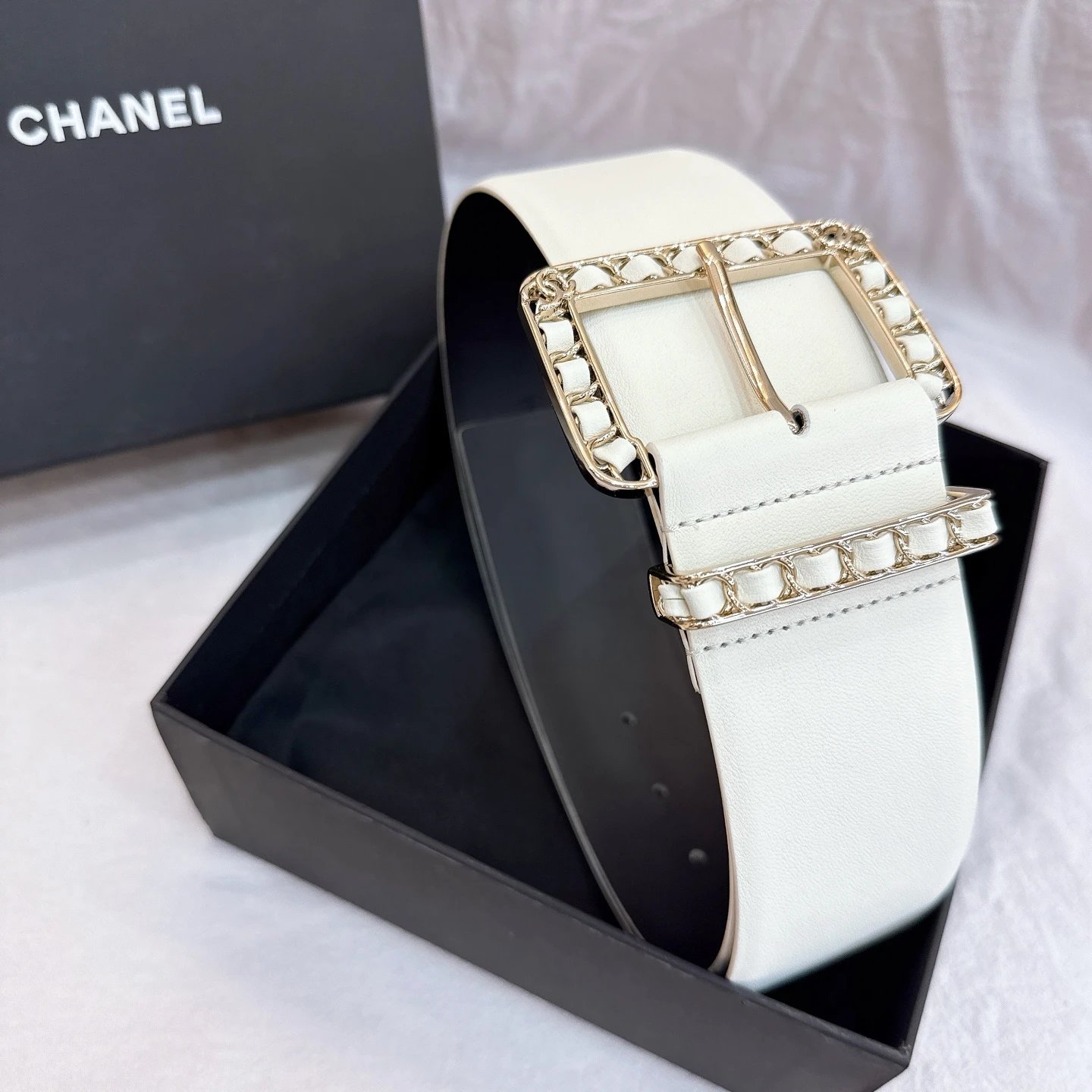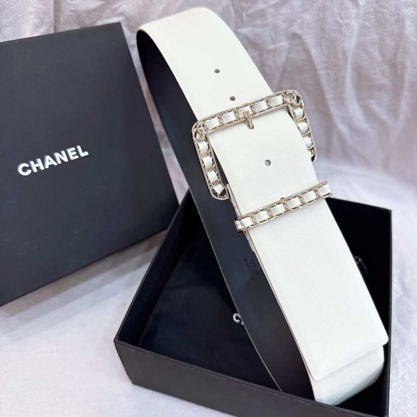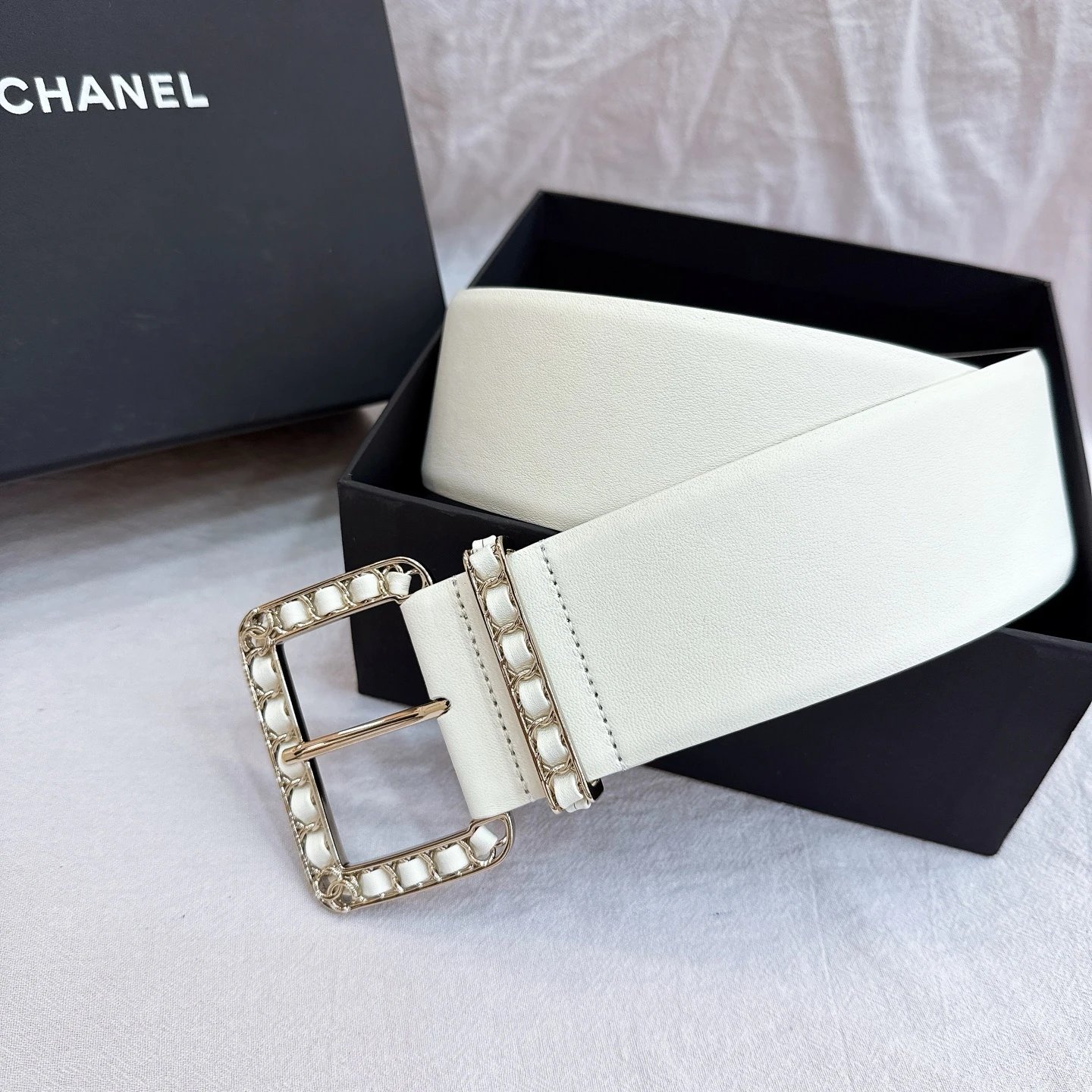 Chanel Wide 5.5cm Special Edition Belt features braided leather, brass pin buckle & imported double cowhide (top grain calfskin).