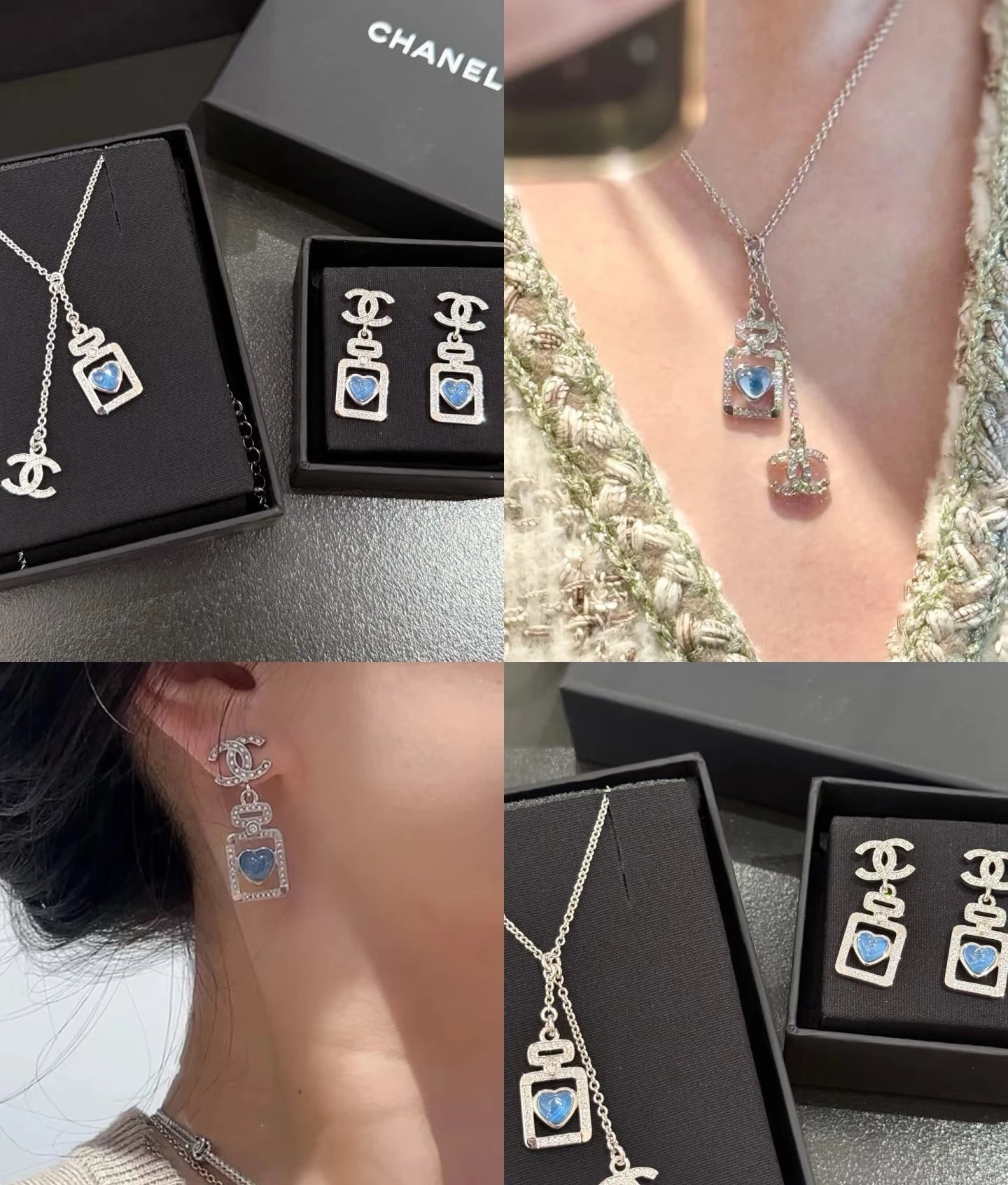 Home > Goods List Chanel Blue Heart Perfume Bottle Necklace High Quality