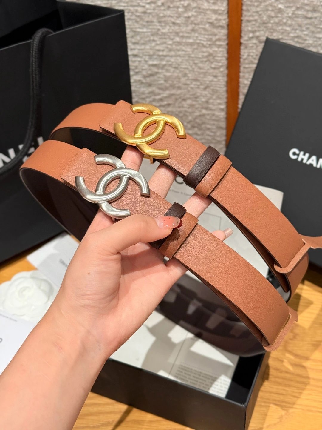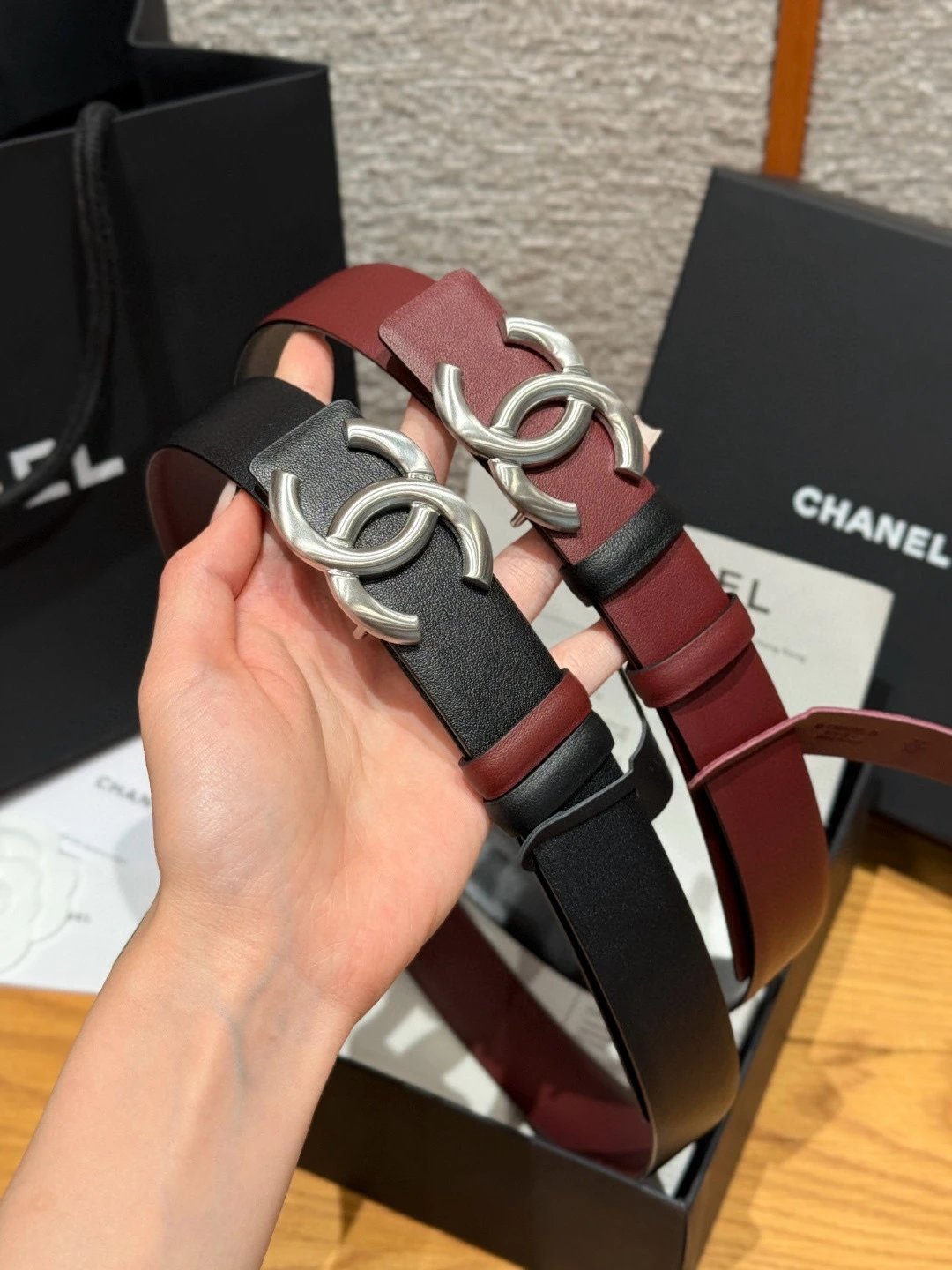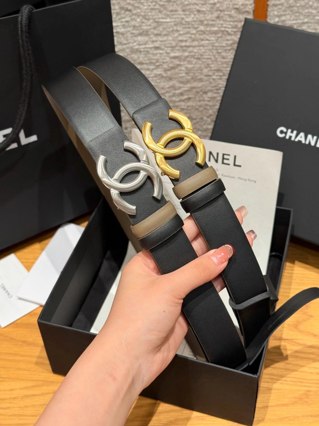 Chanel 24P Double-sided Women's Belt is crafted from top layer cowhide, with brass metal buckle & gold CC logo.