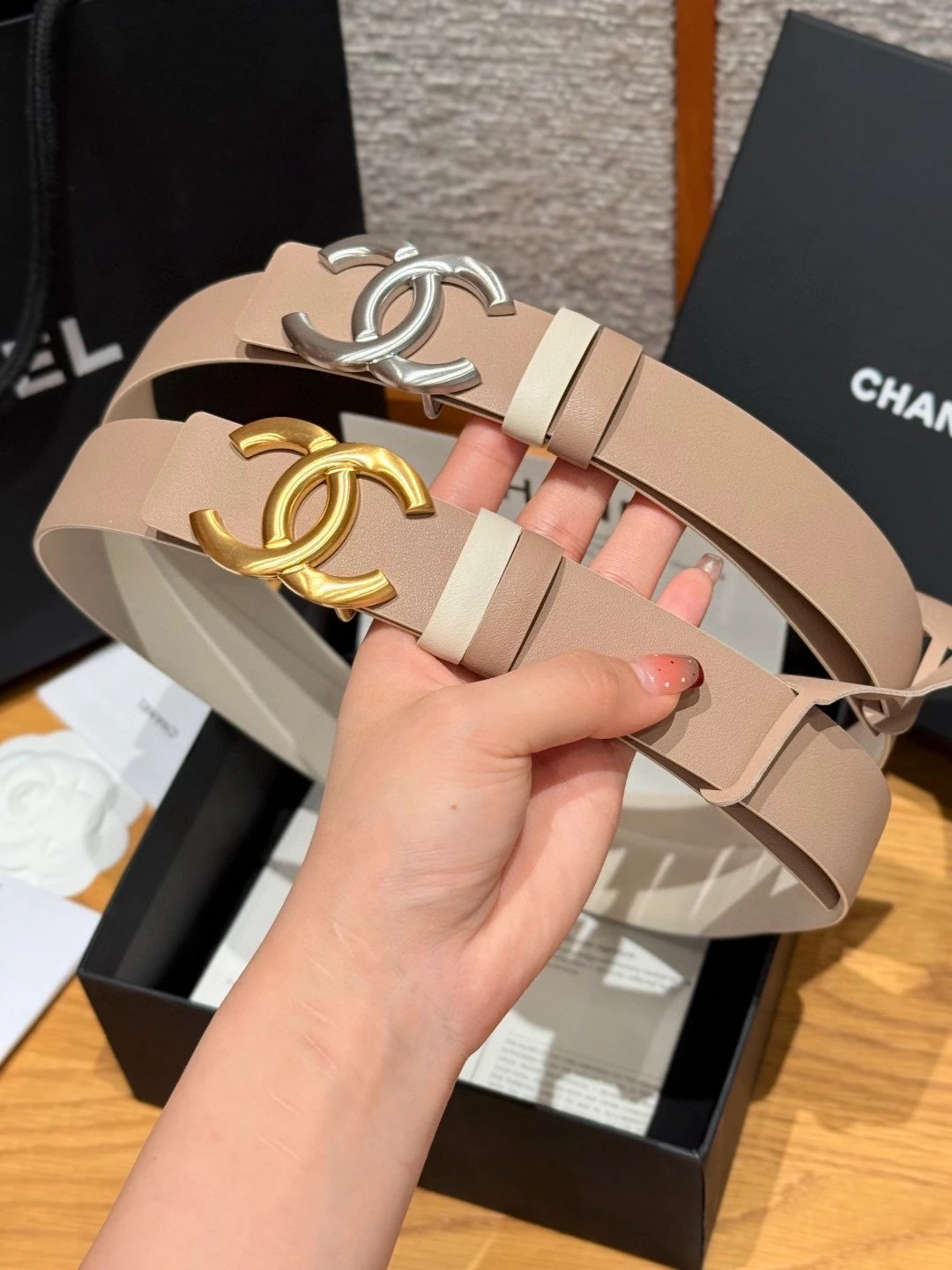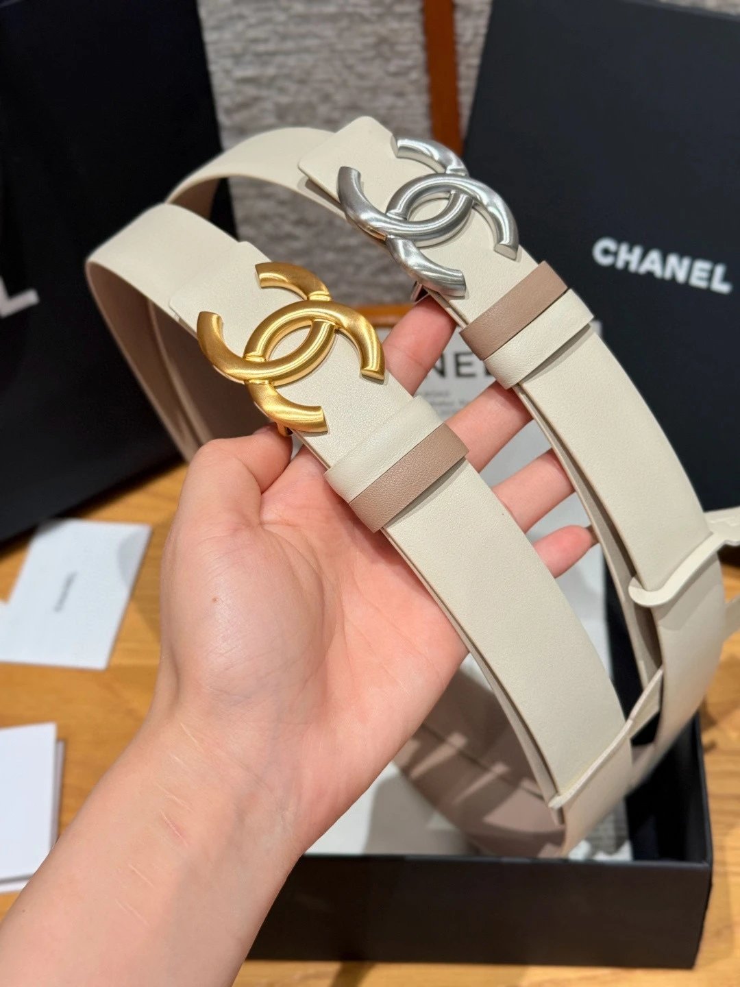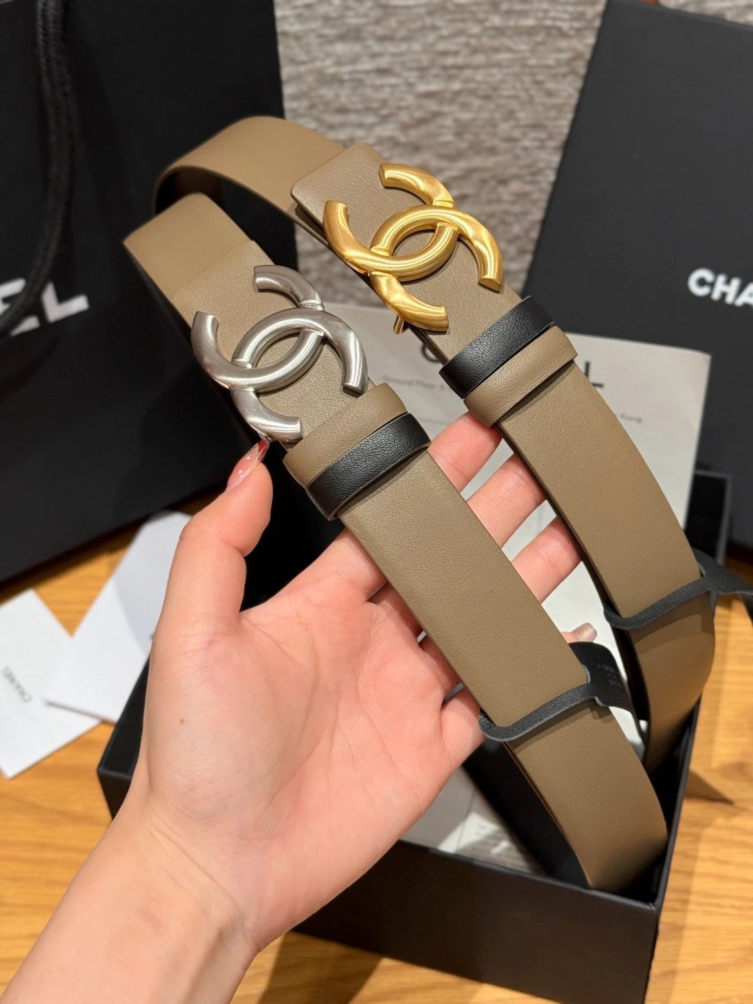 Chanel 24P Double-sided Women's Belt is crafted from top layer cowhide, with brass metal buckle & gold CC logo.