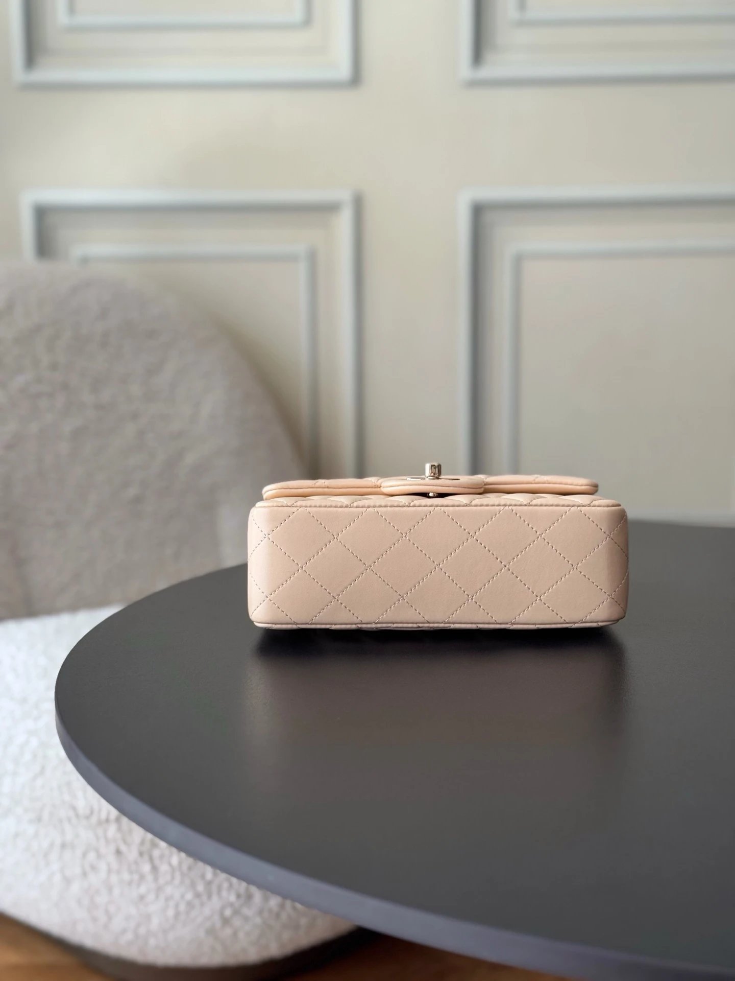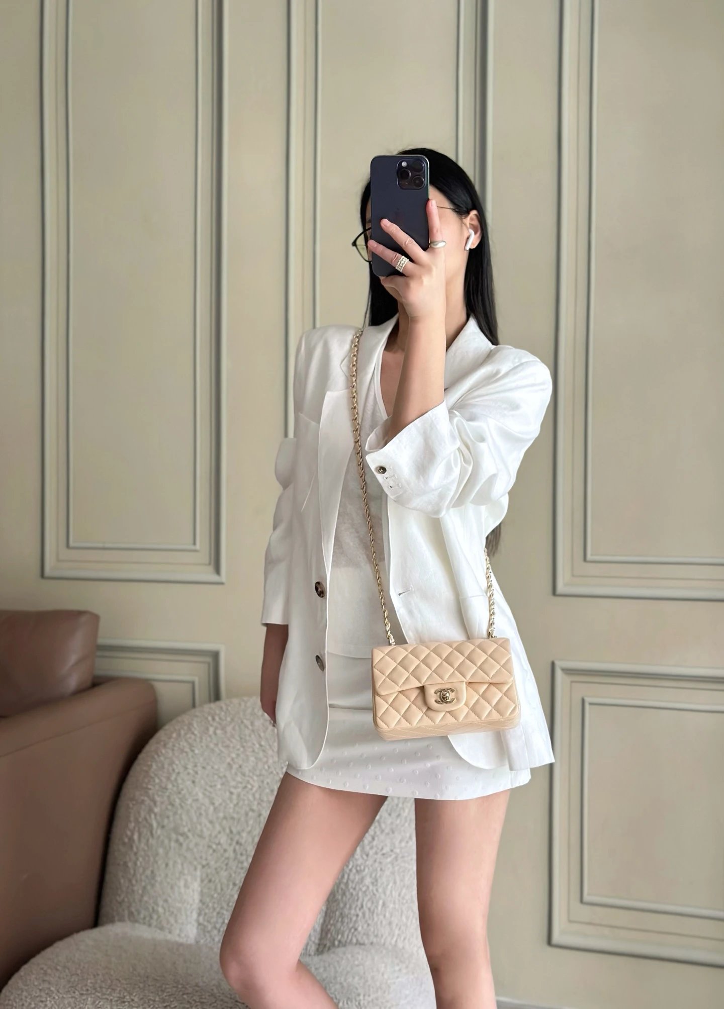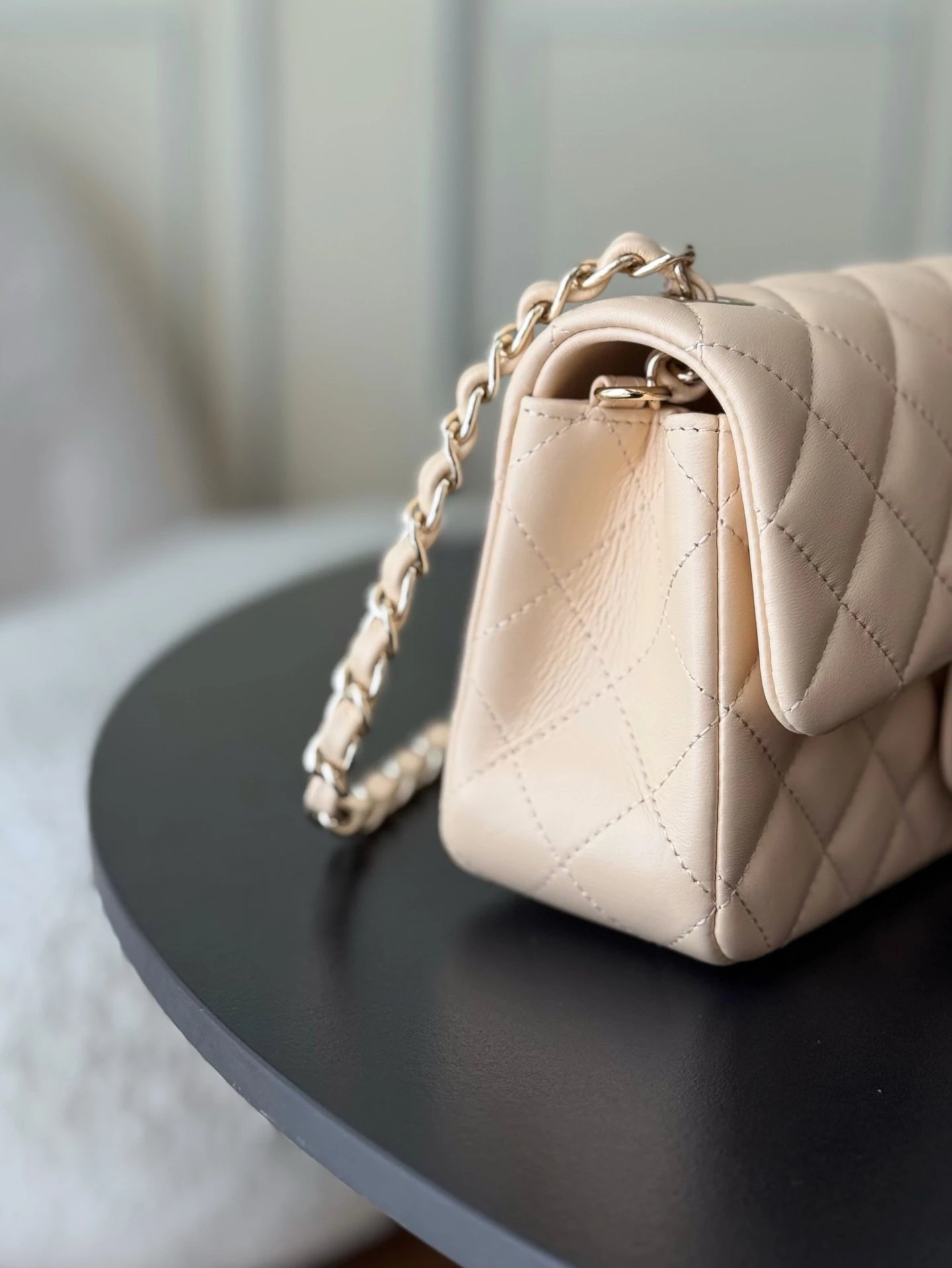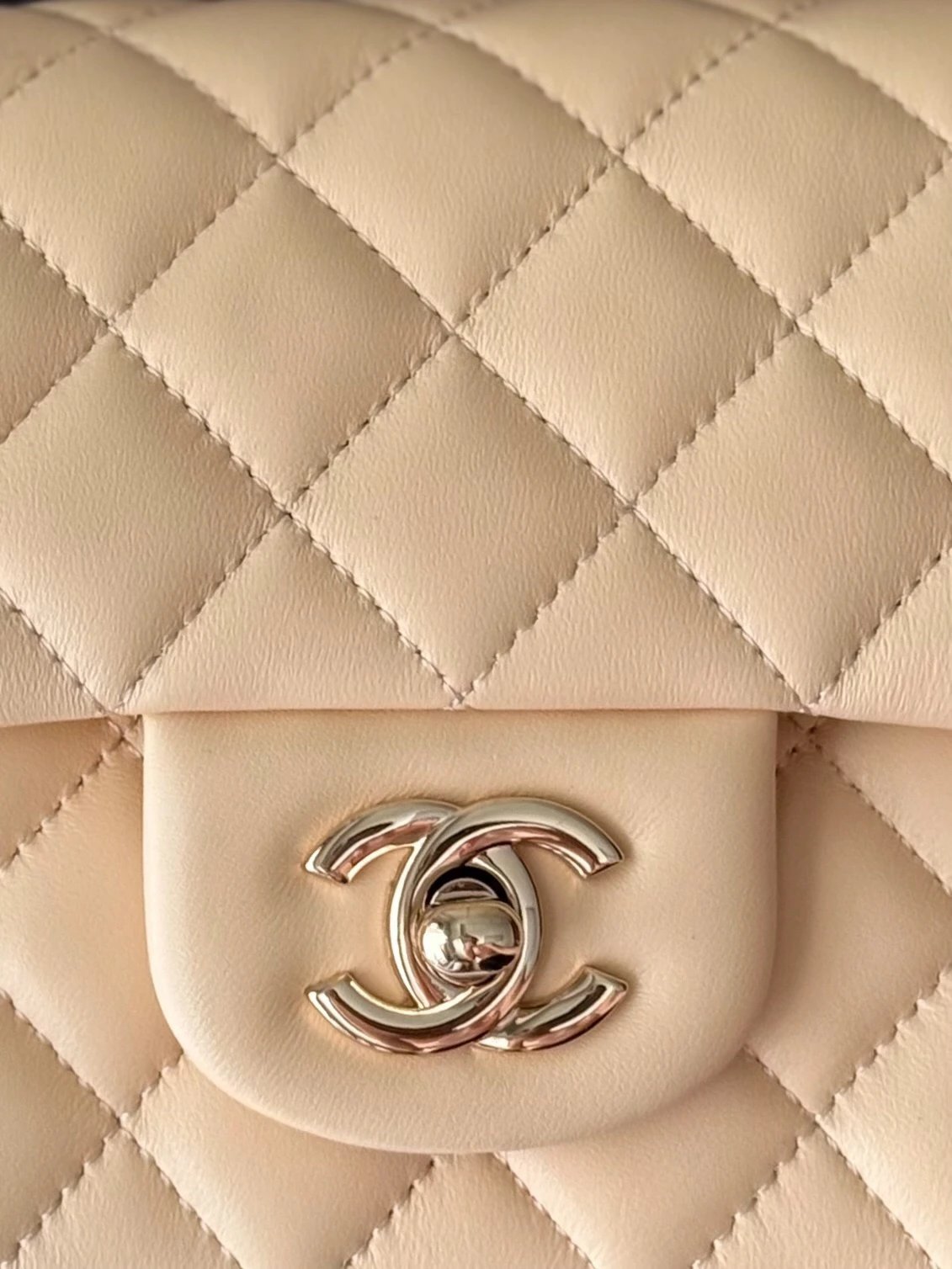 Chanel Classic Flap Large Mini handbag uses premium white lambskin leather.
