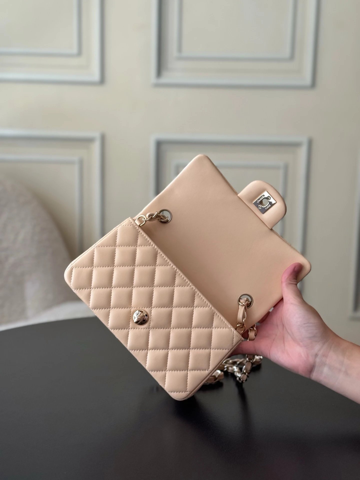 Original Haas lambskin lining, 24K gold-plated full steel hardware.