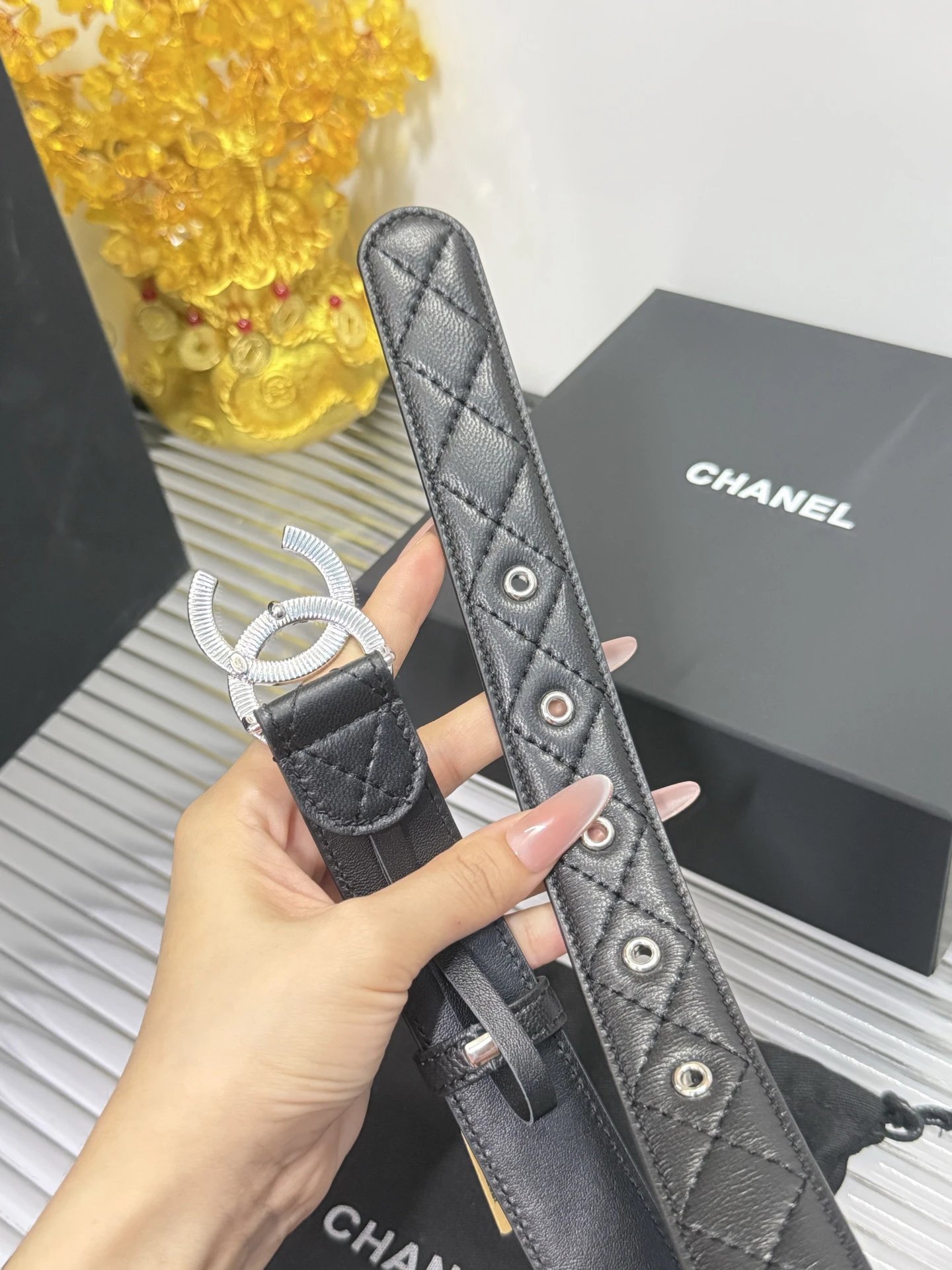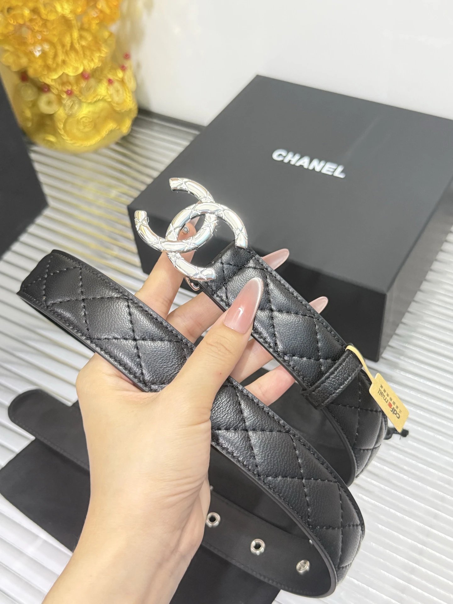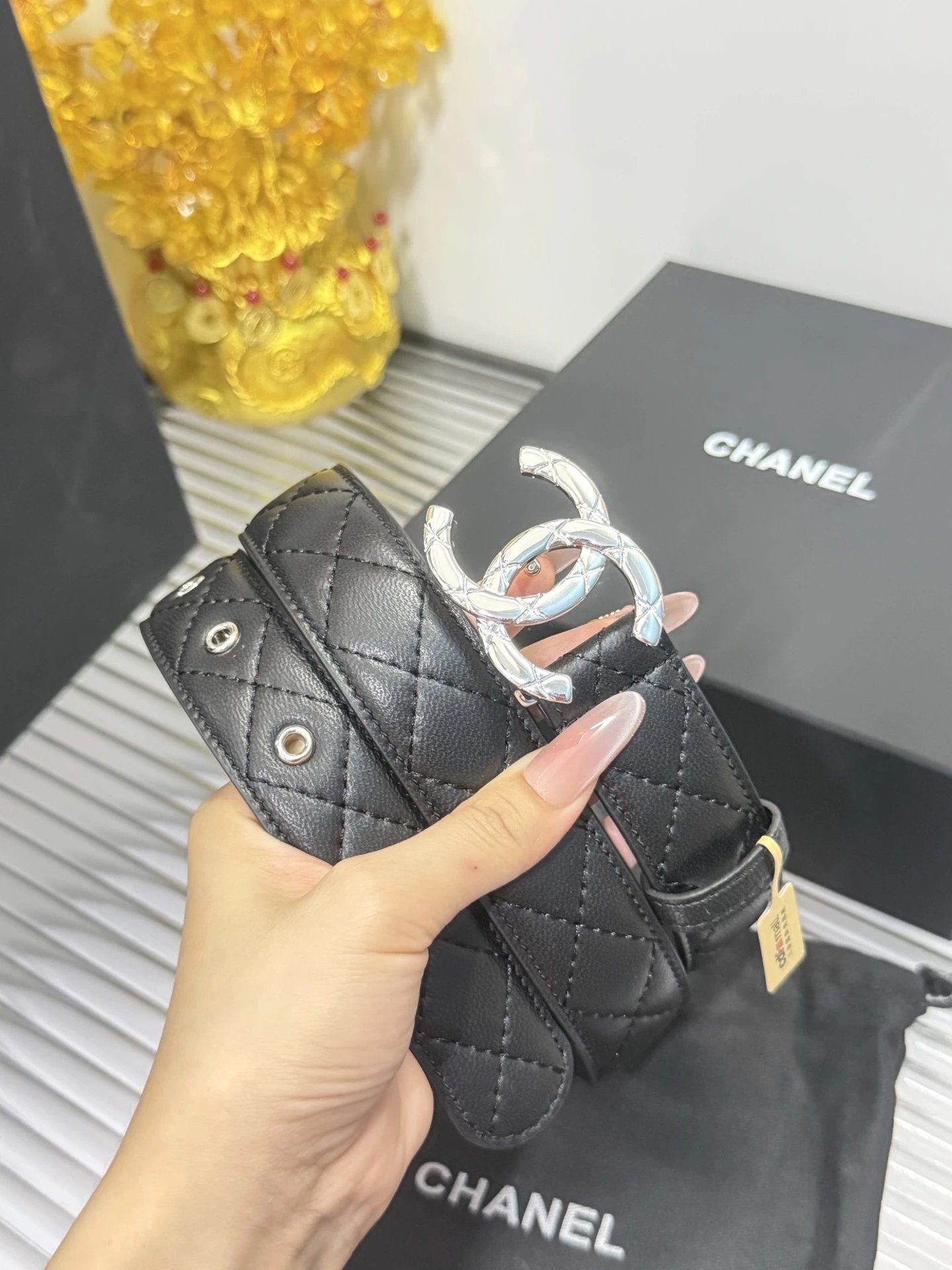 Chanel genuine lambskin accessory has soft texture, brass buckle, new back stamp & full original packaging.