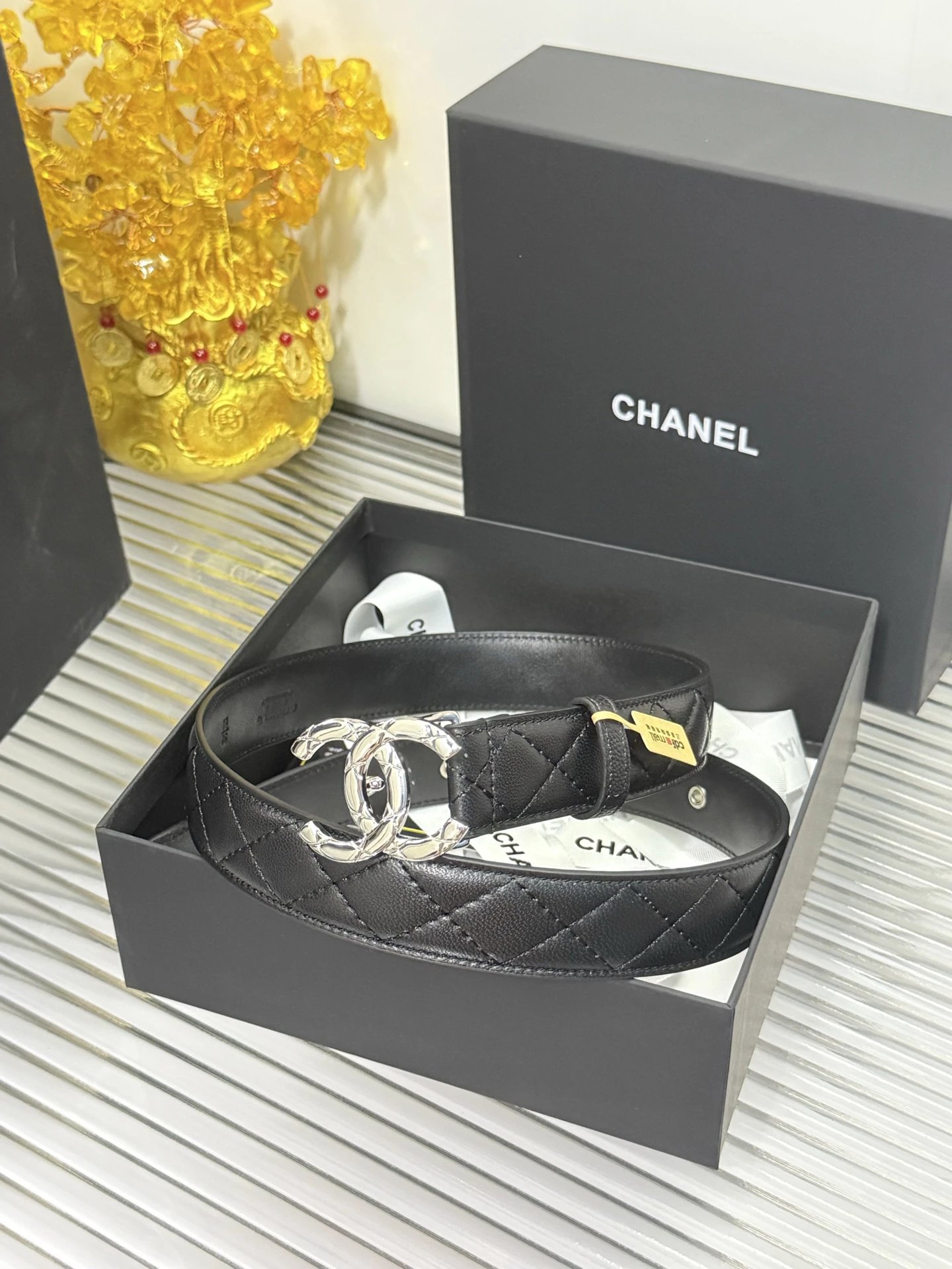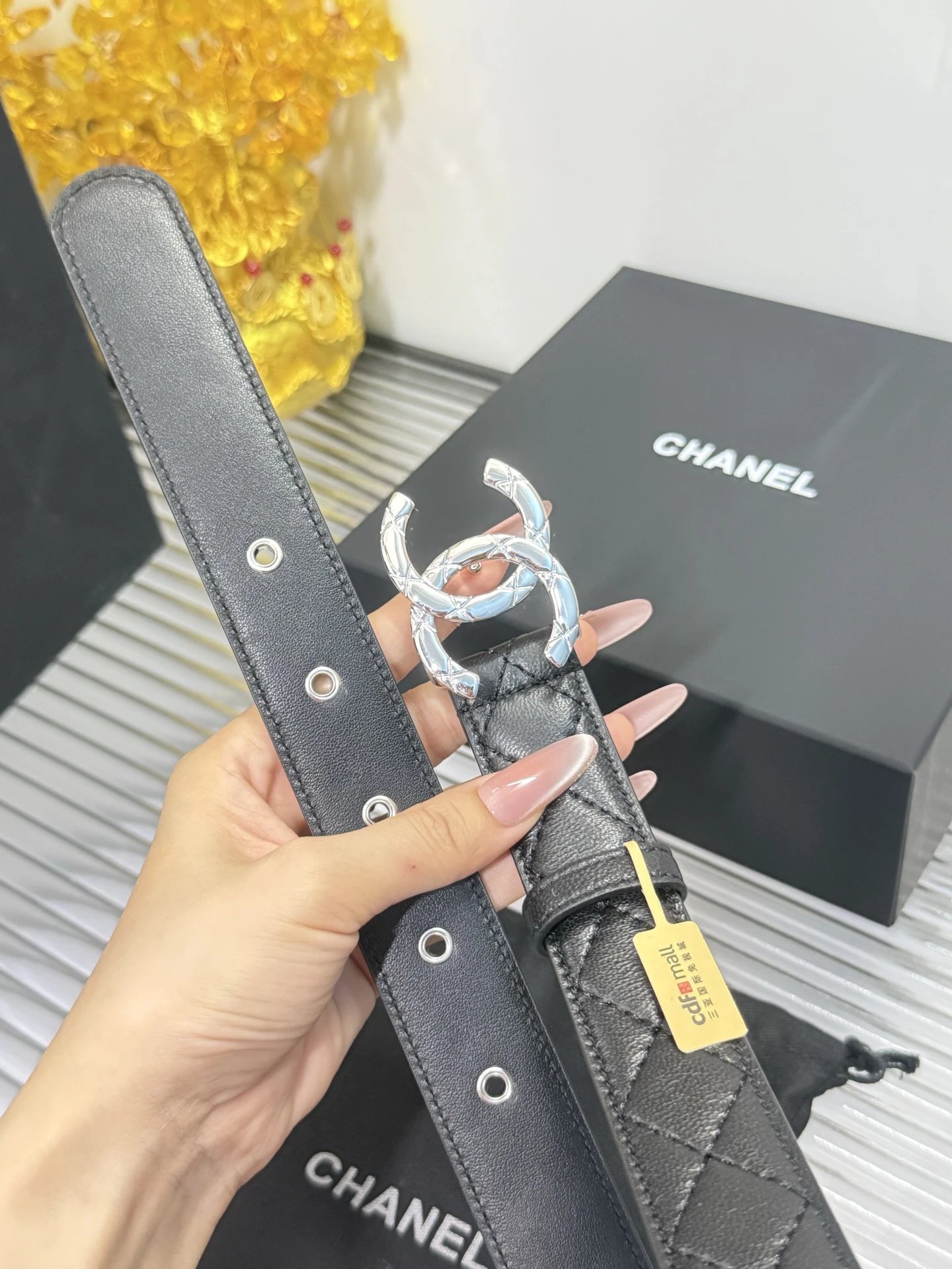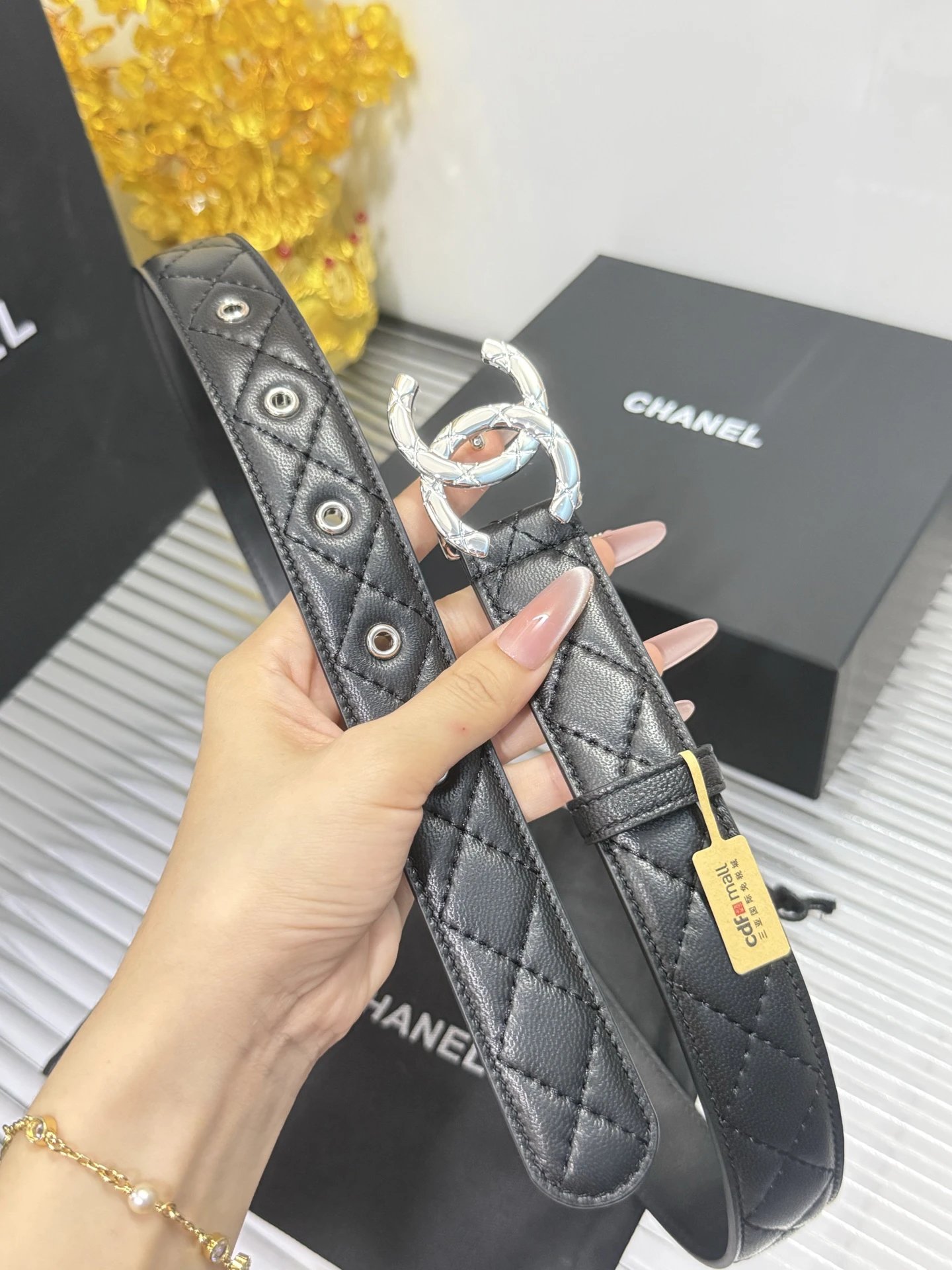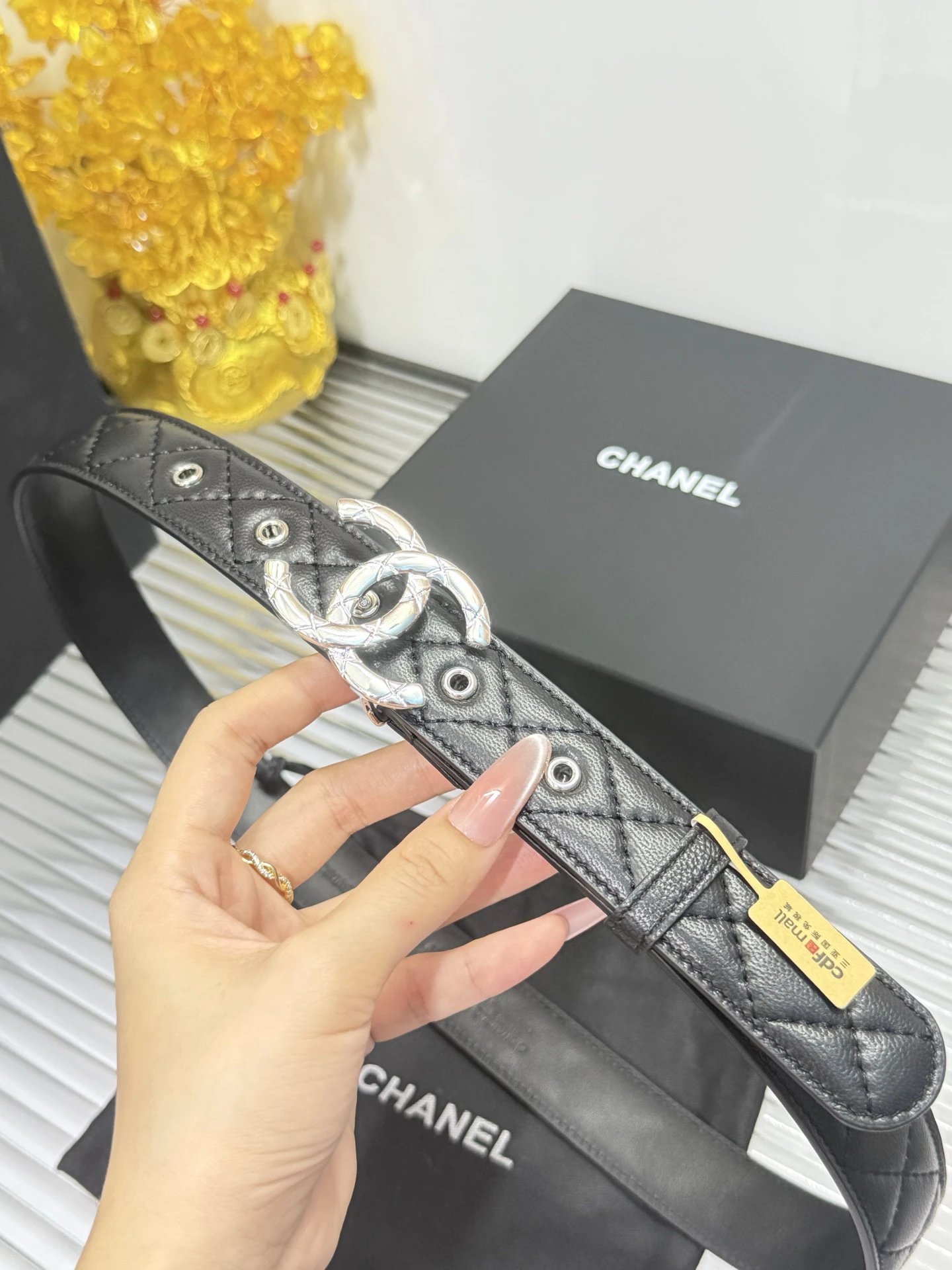 Chanel genuine lambskin accessory has soft texture, brass buckle, new back stamp & full original packaging.