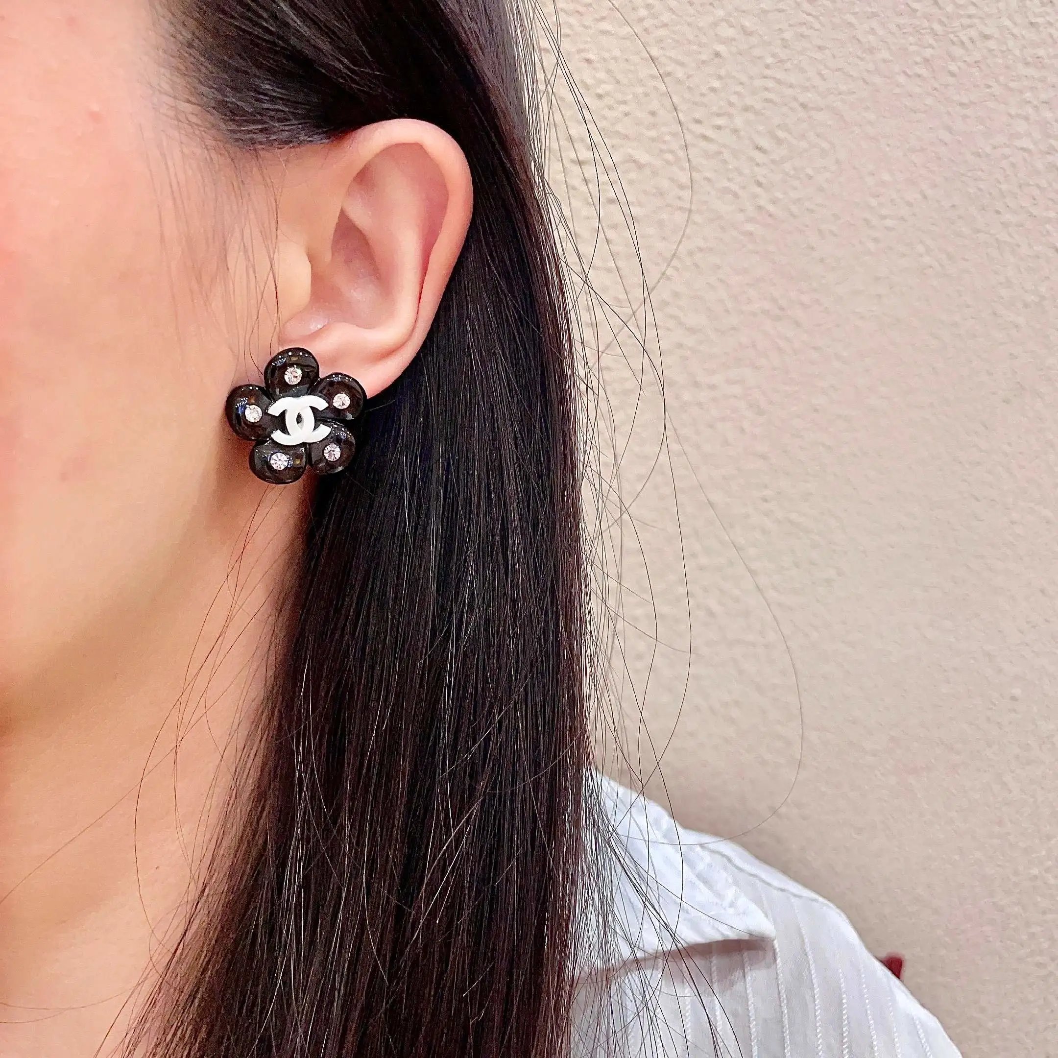 Chanel Camellia Double C Earrings feature iconic camellia & double C designs, adding luxury to daily/formal wear.