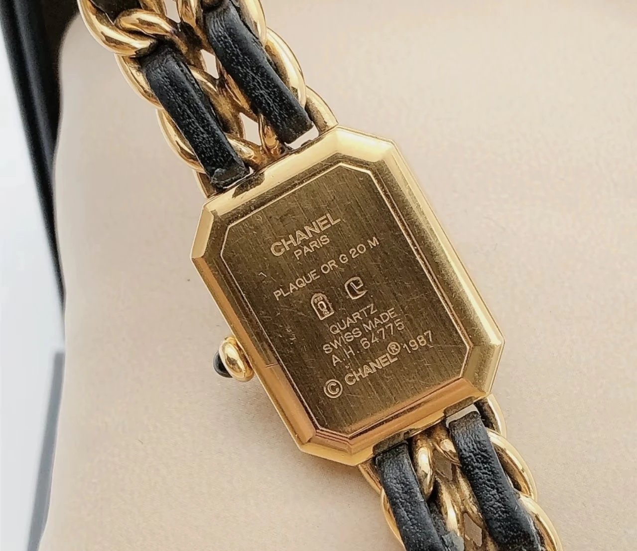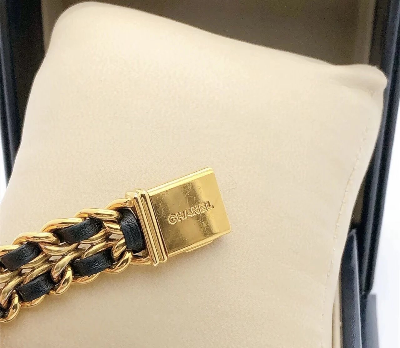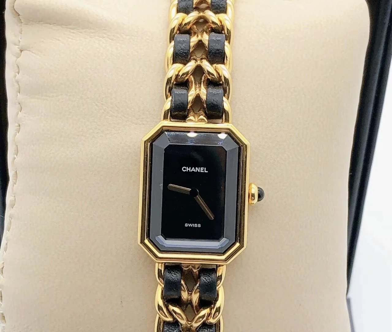 Chanel PREMIERE Series Square Black Gold Women's Watch: stainless steel gold-plated, woven strap, 20*26mm case, quartz movement, L size fits wrist under 165mm, minor strap wear.