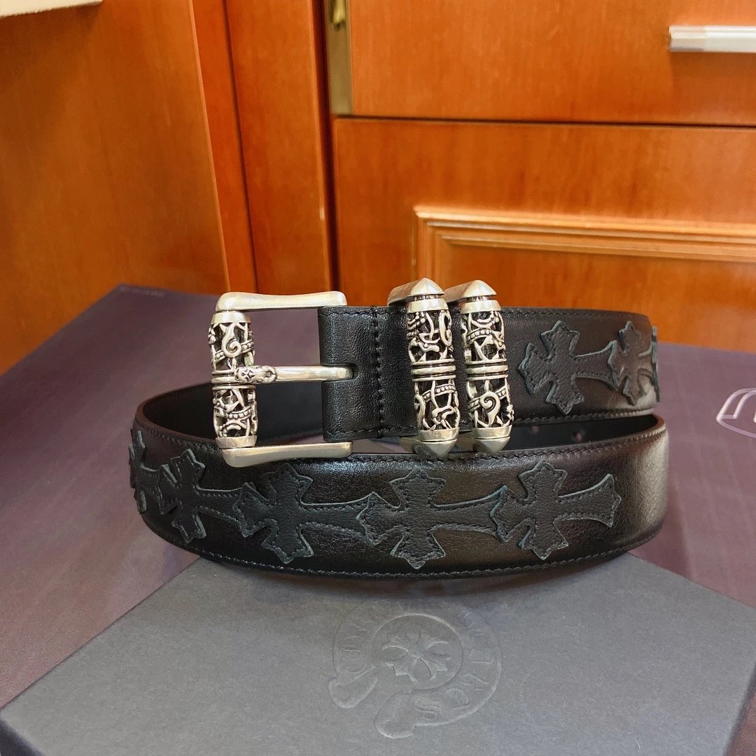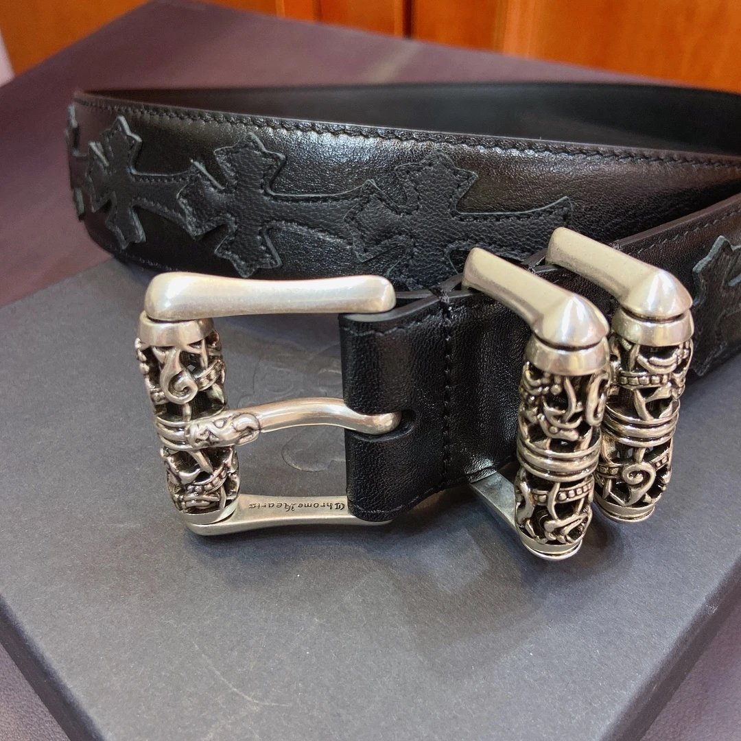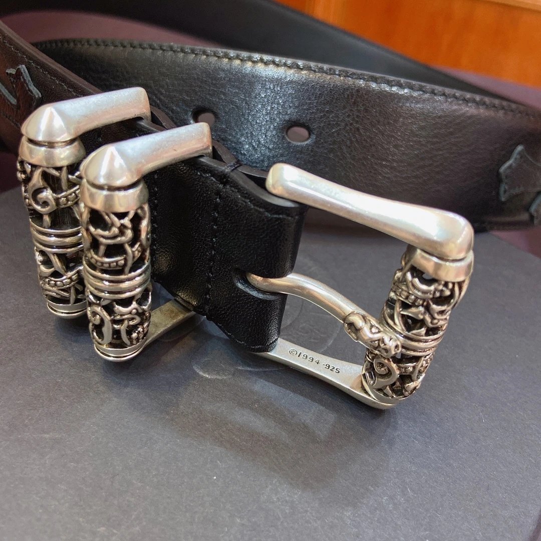 Chrome Hearts Celtic Dragon Roller Buckle Belt: 3.8cm width, S925 plated silver brass buckle, imported leather.