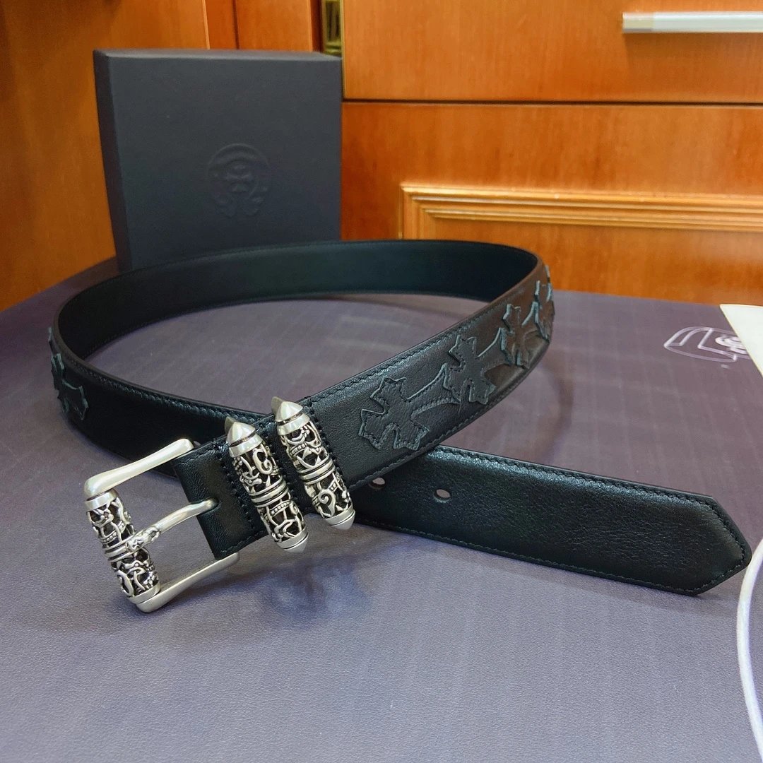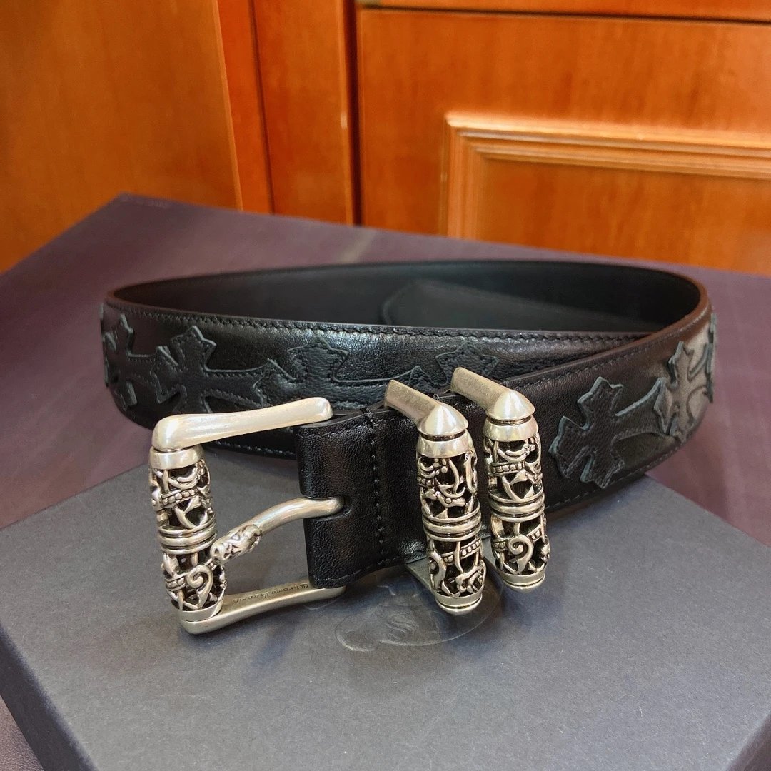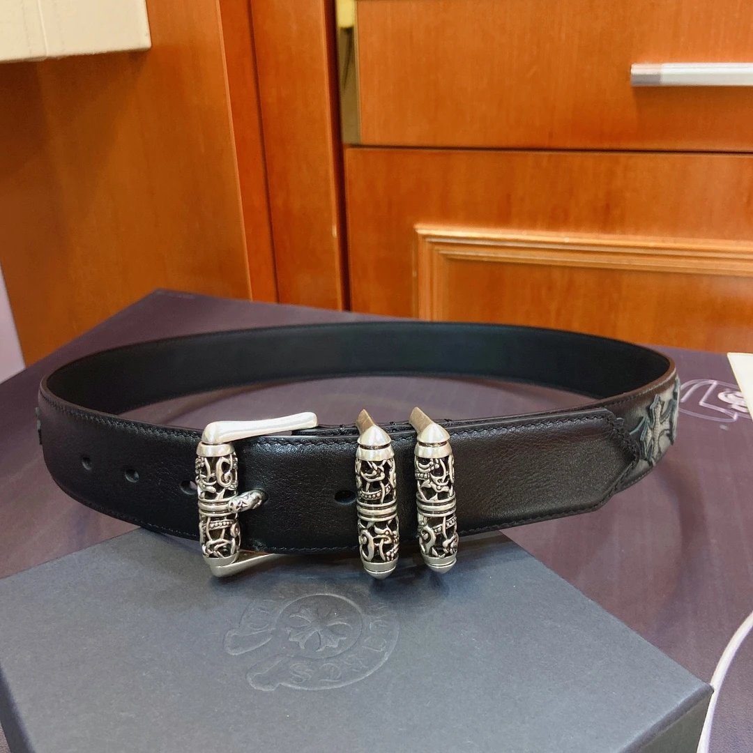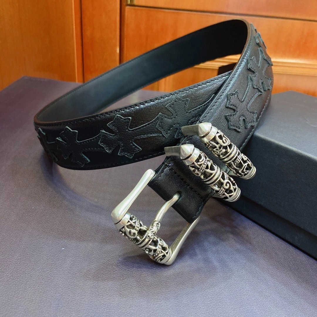 Chrome Hearts Celtic Dragon Roller Buckle Belt: 3.8cm width, S925 plated silver brass buckle, imported leather.