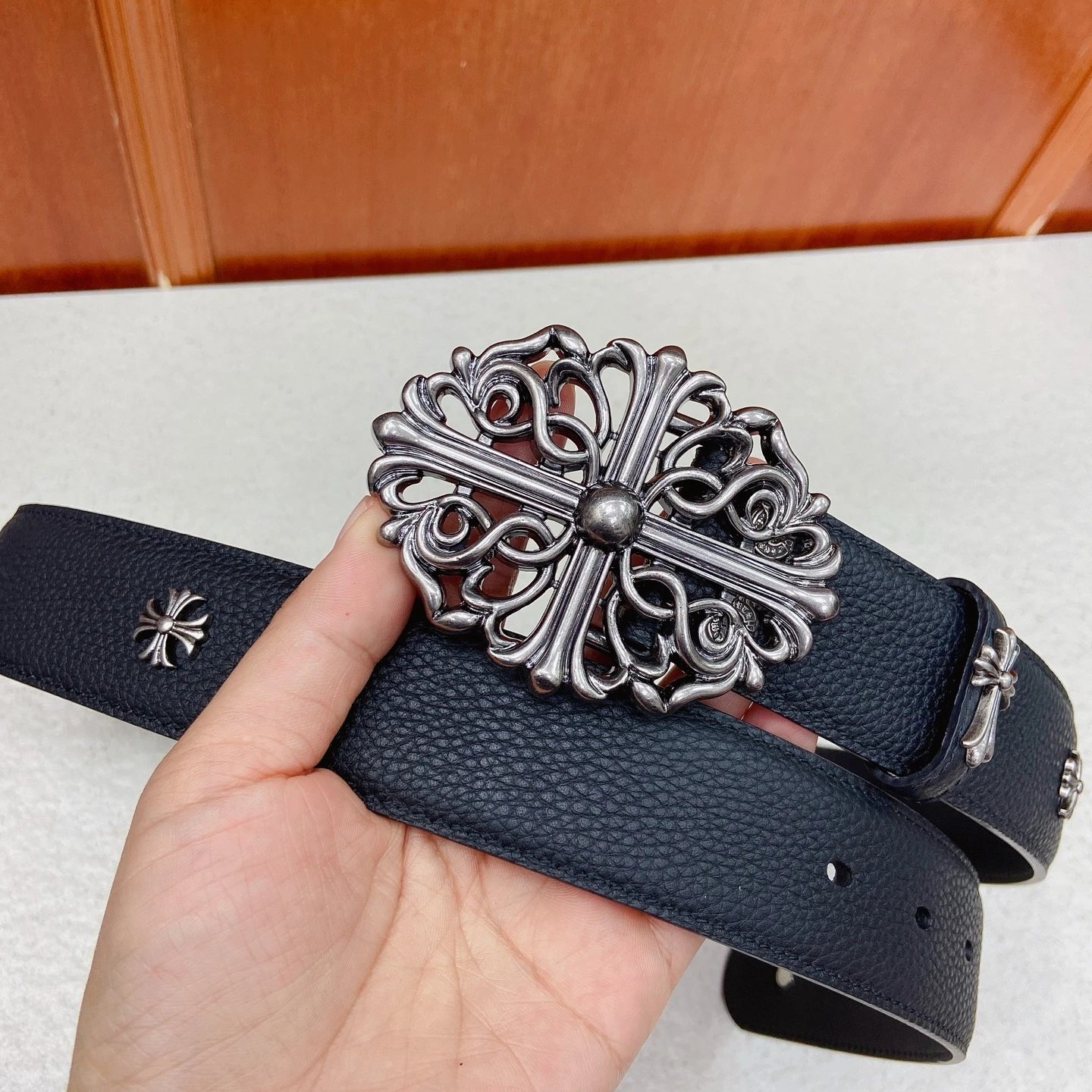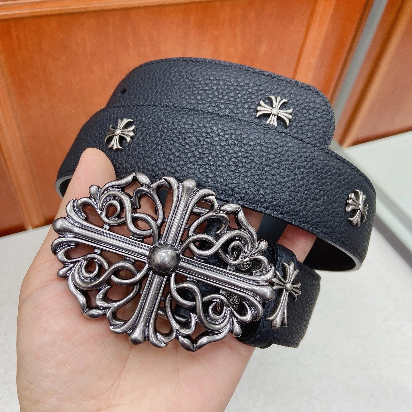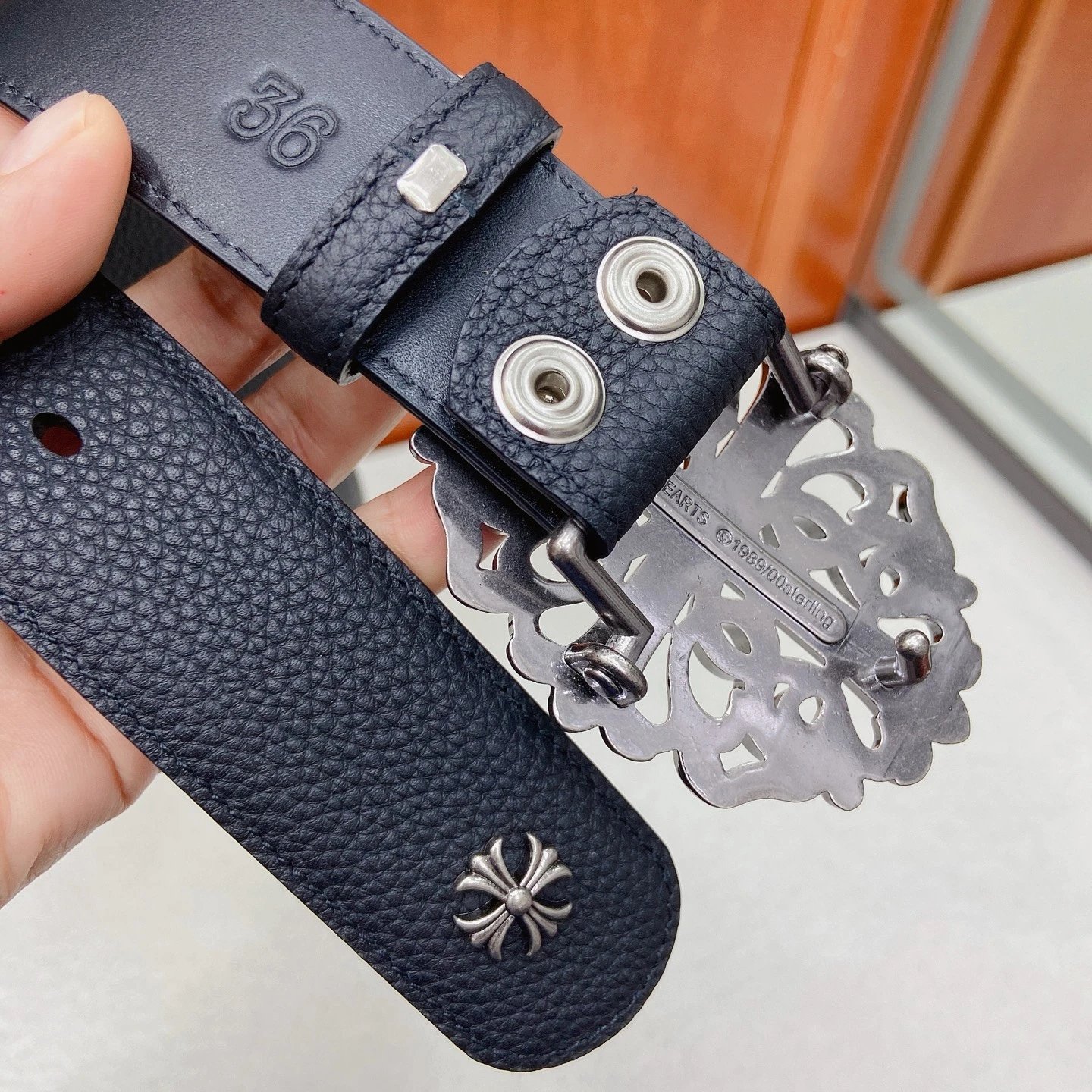 Chrome Hearts Cross Stud Belt features detachable brass plated 925 silver hardware, original oil-wax top layer cowhide (3.8cm width).