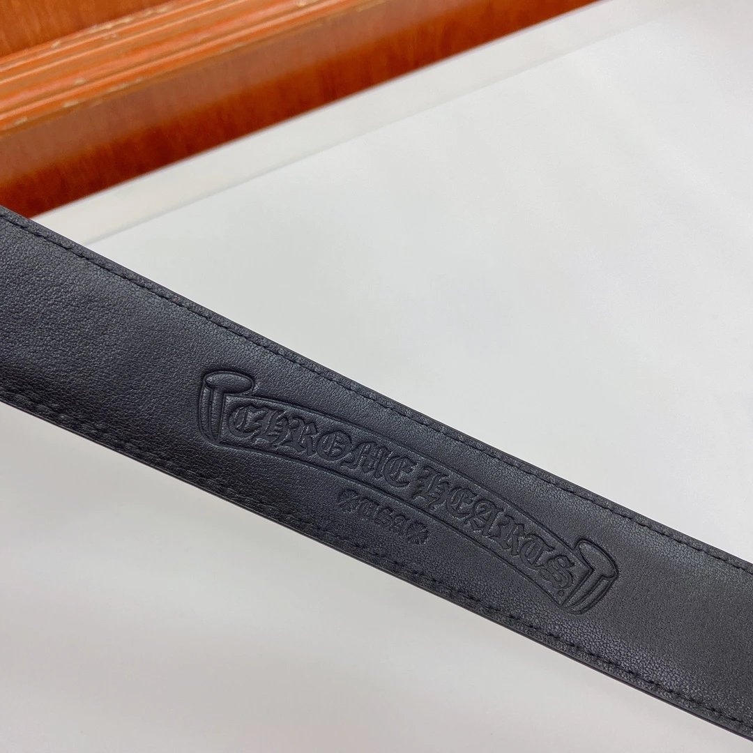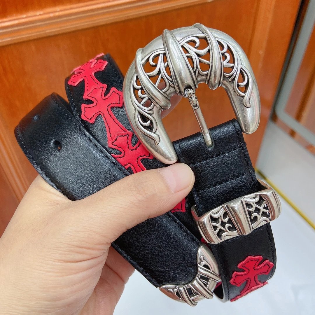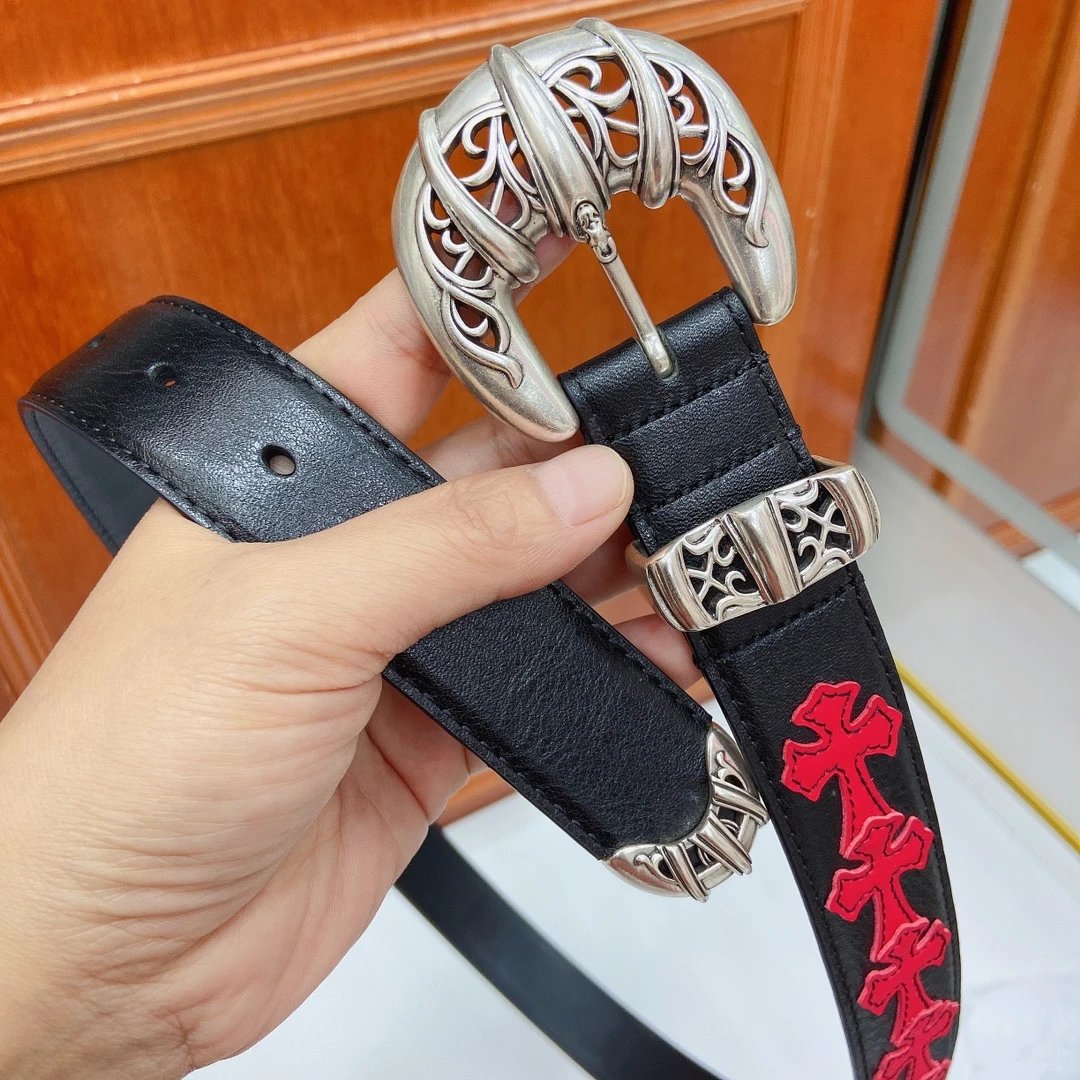 Chrome Hearts Cat Claw Buckle Belt (Fixed Style) features a pure copper silver-plated buckle and imported oiled leather strap with top-layer cross details.