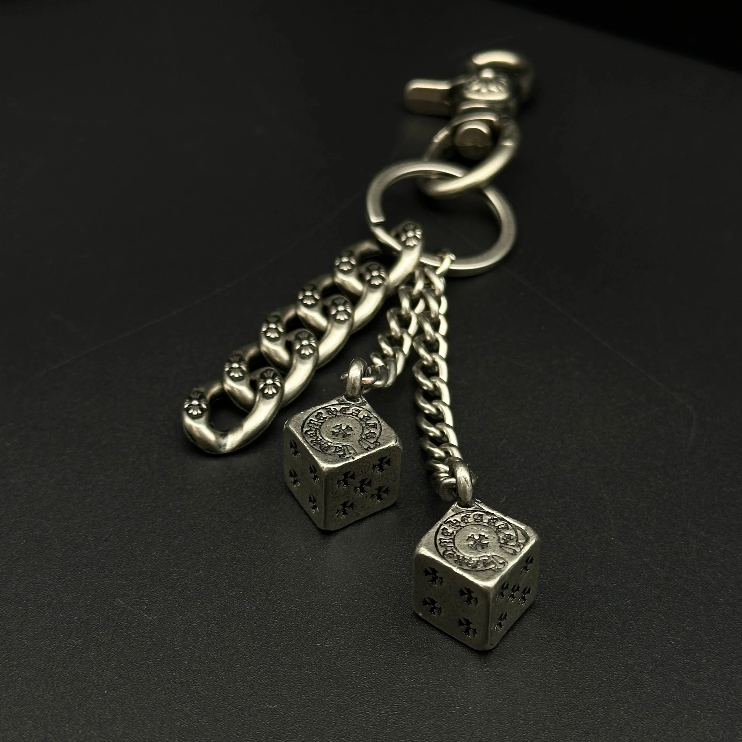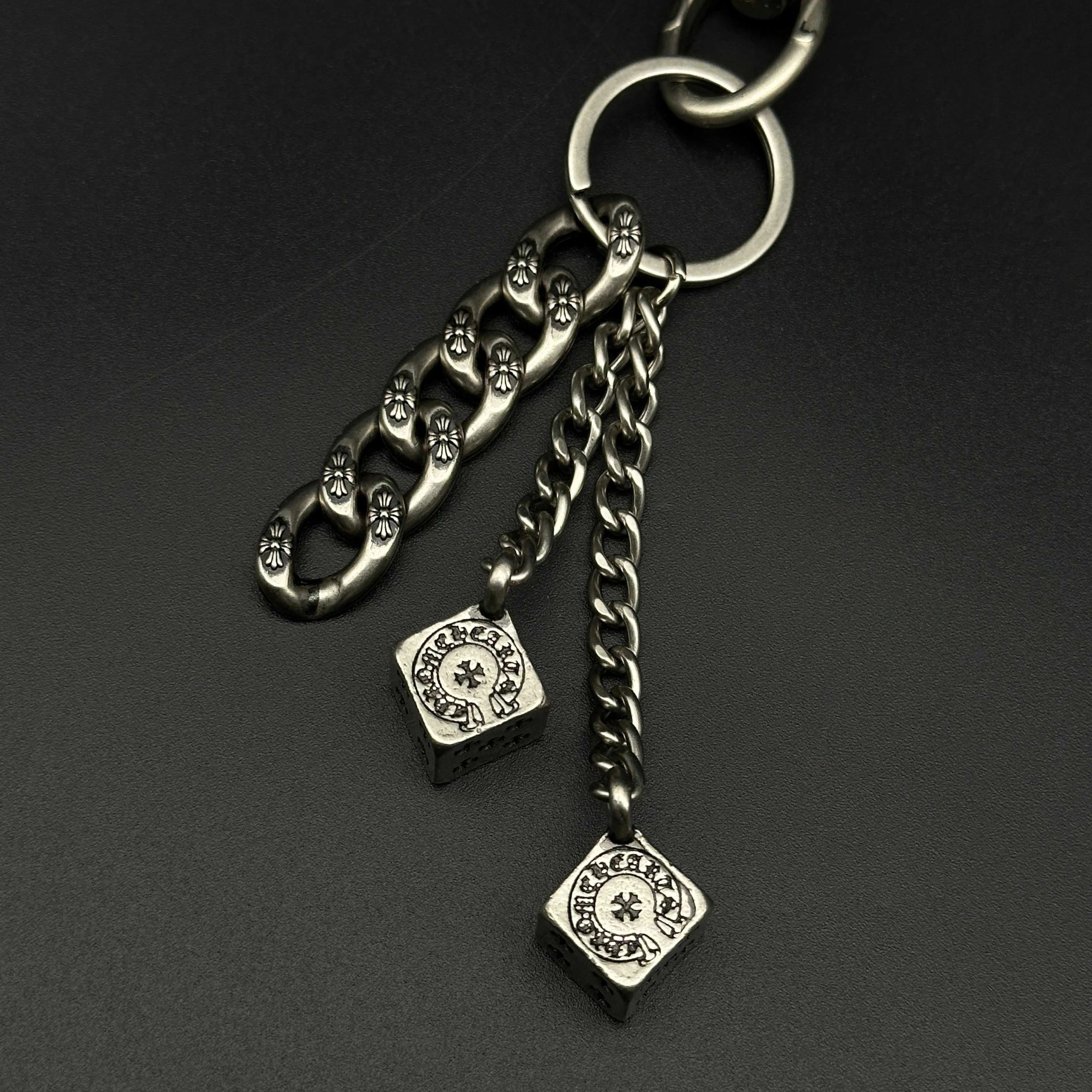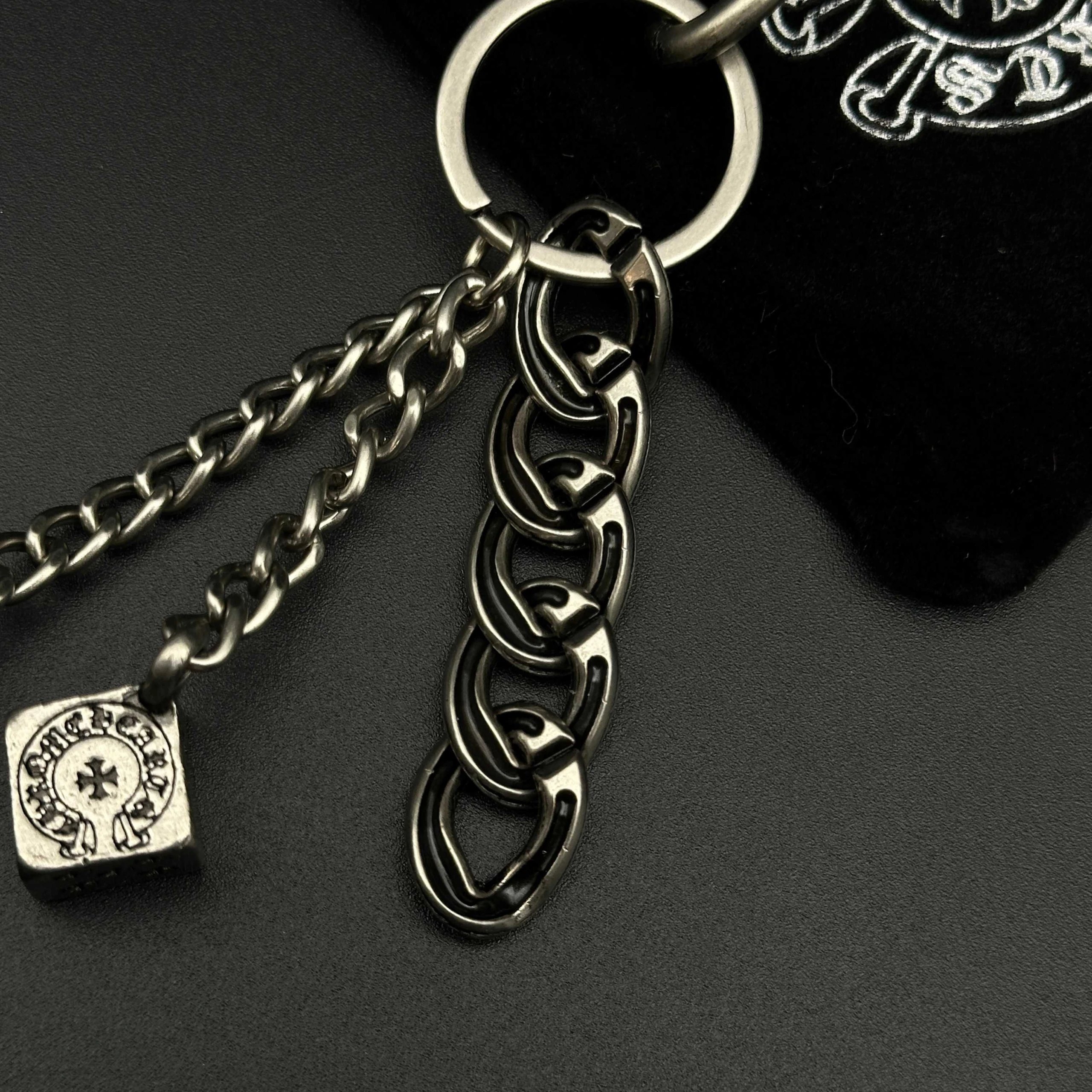 Chrome Hearts 925 silver keychain/bag charm has handmade craftsmanship with vintage rugged style, oxidized silver accents for distinct layers.