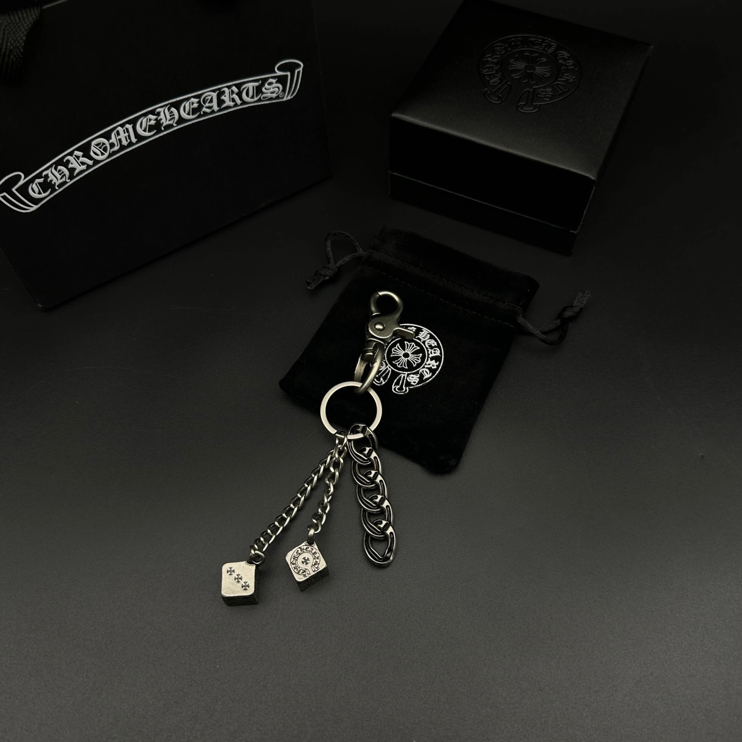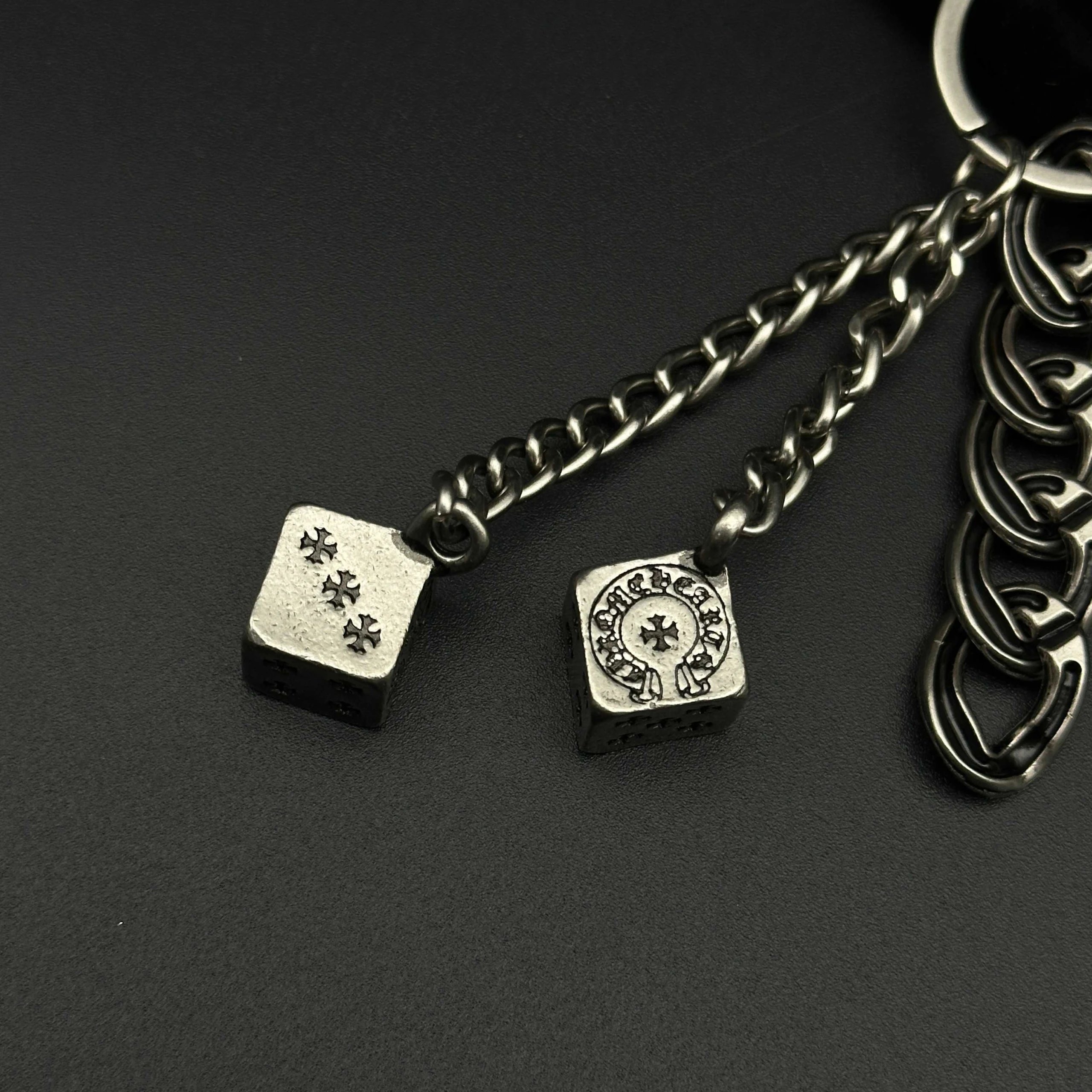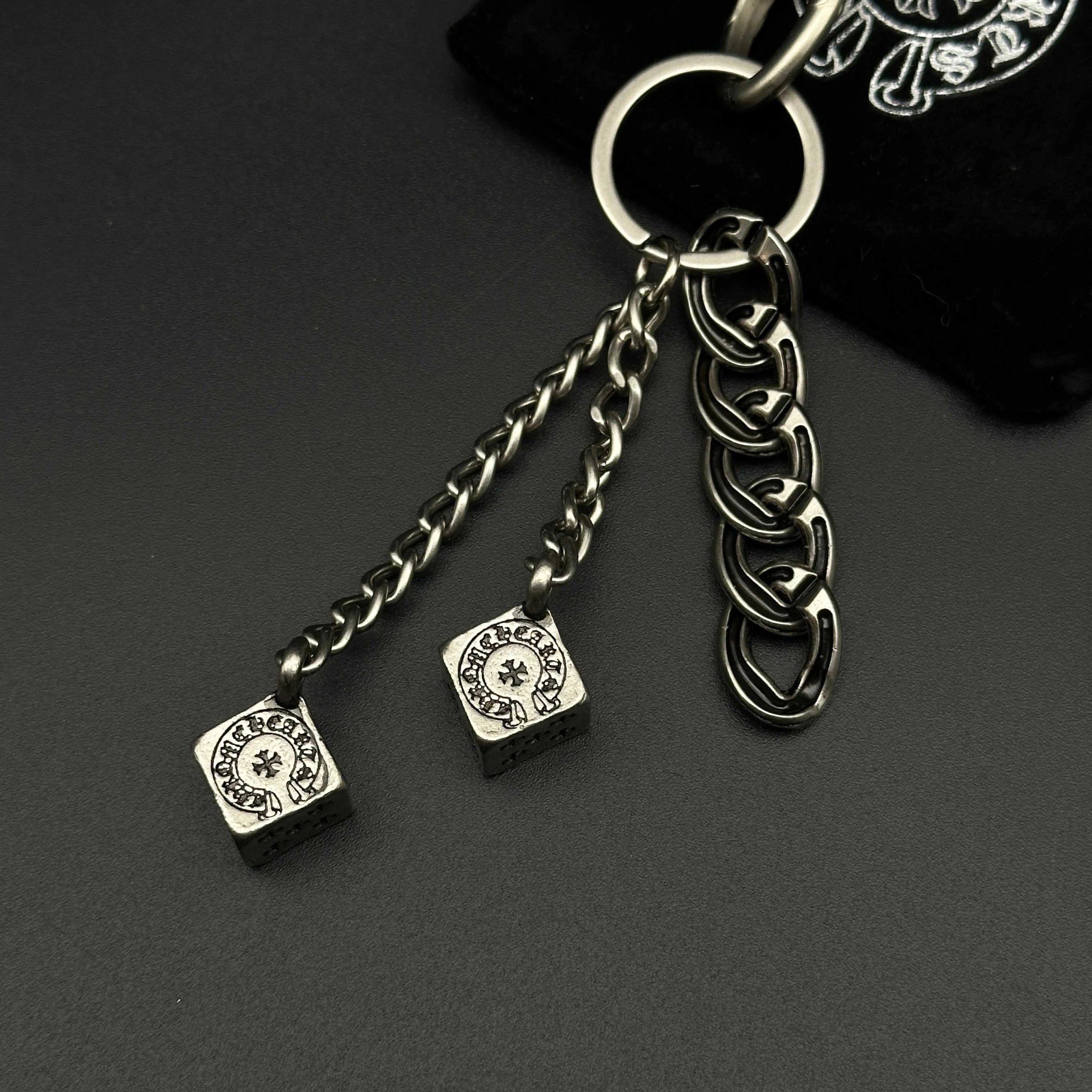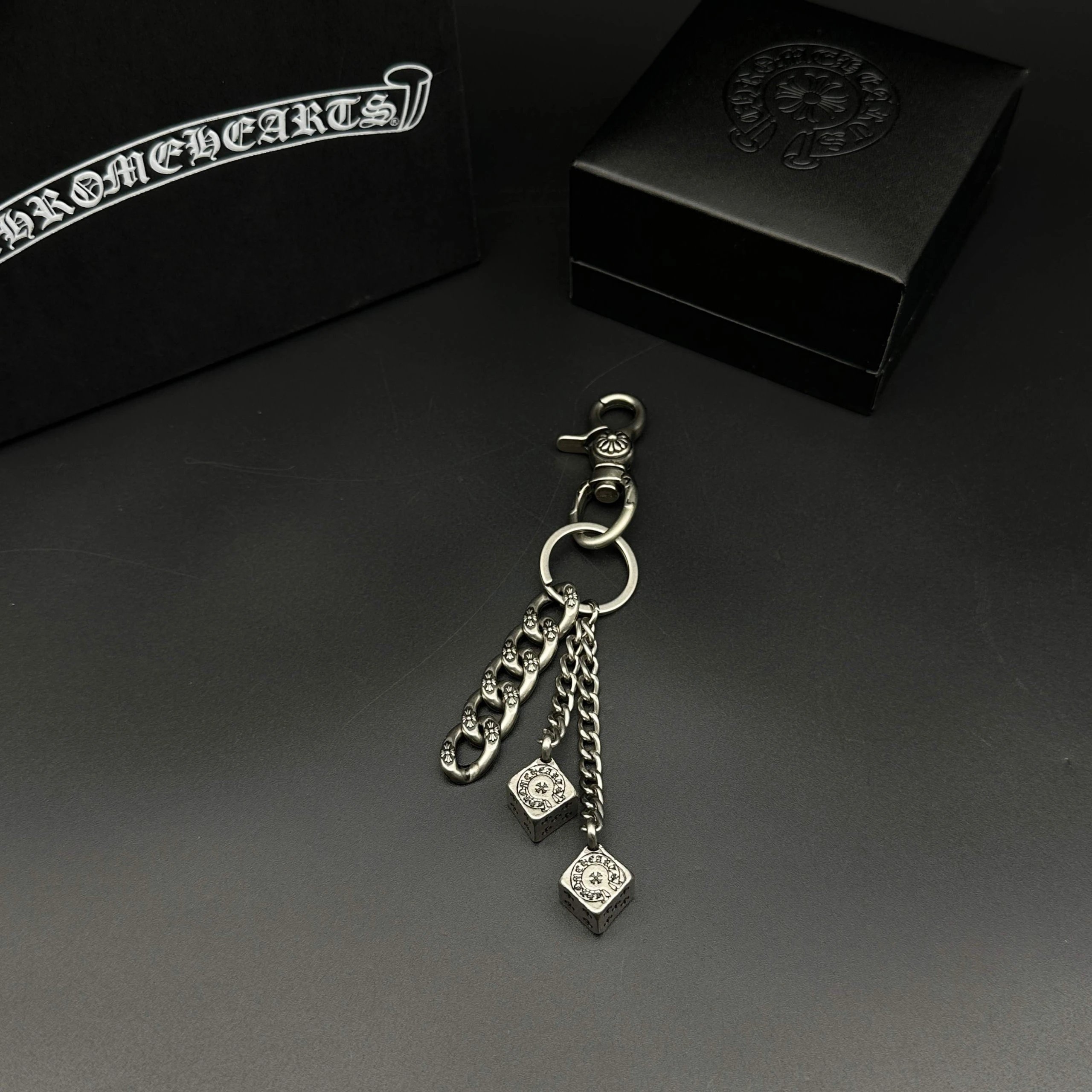 Chrome Hearts 925 silver keychain/bag charm has handmade craftsmanship with vintage rugged style, oxidized silver accents for distinct layers.