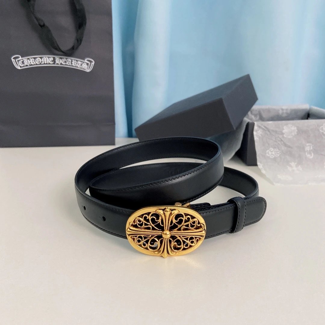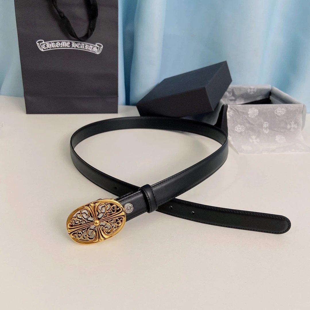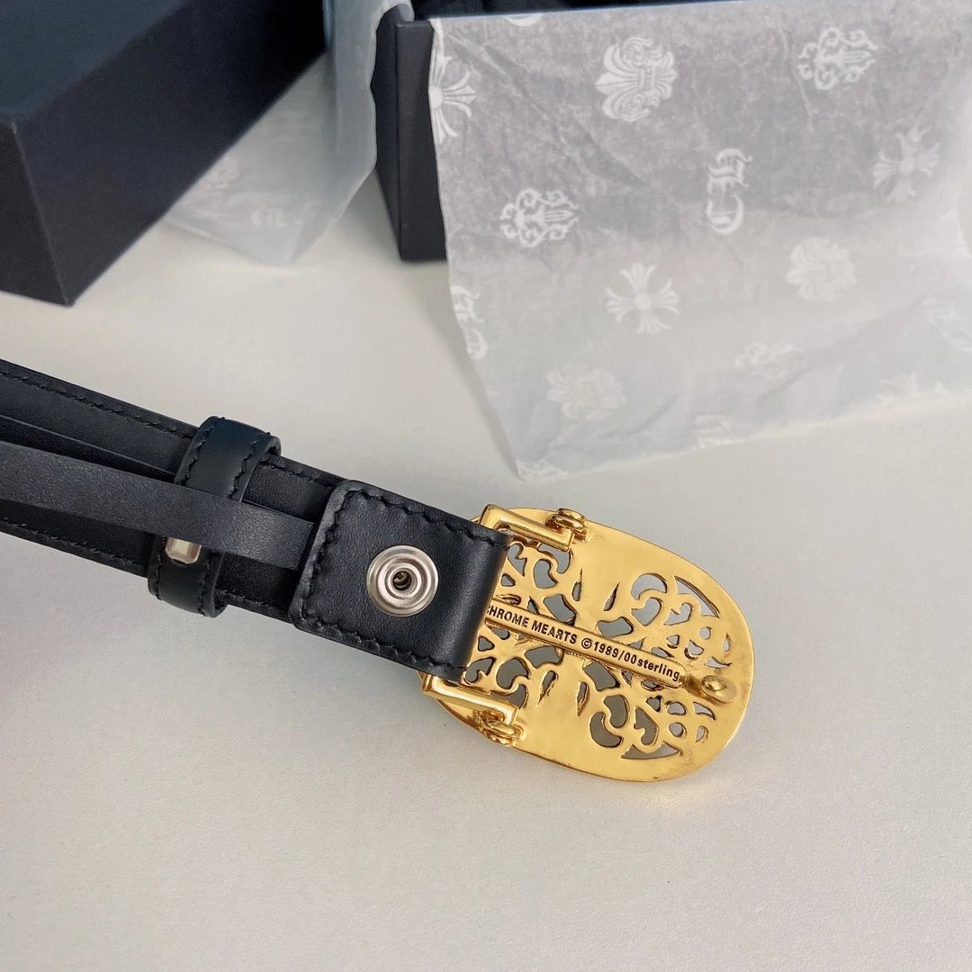 Chrome Hearts Mini Guardian Belt features detachable brass plated real gold hardware, made of original oil wax top layer cowhide (2.5cm width).