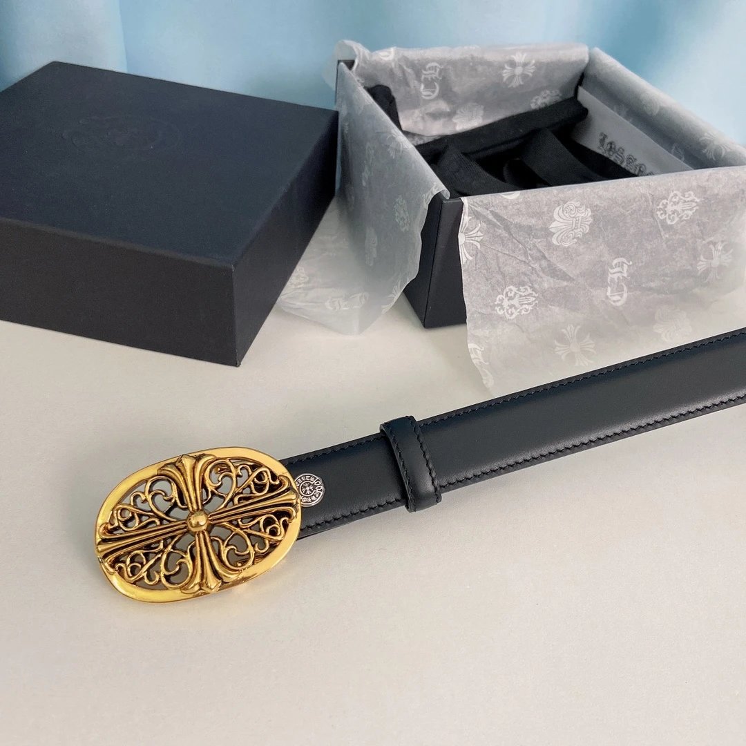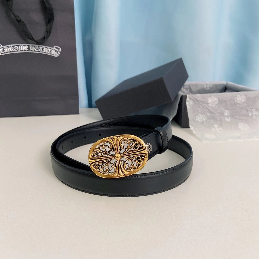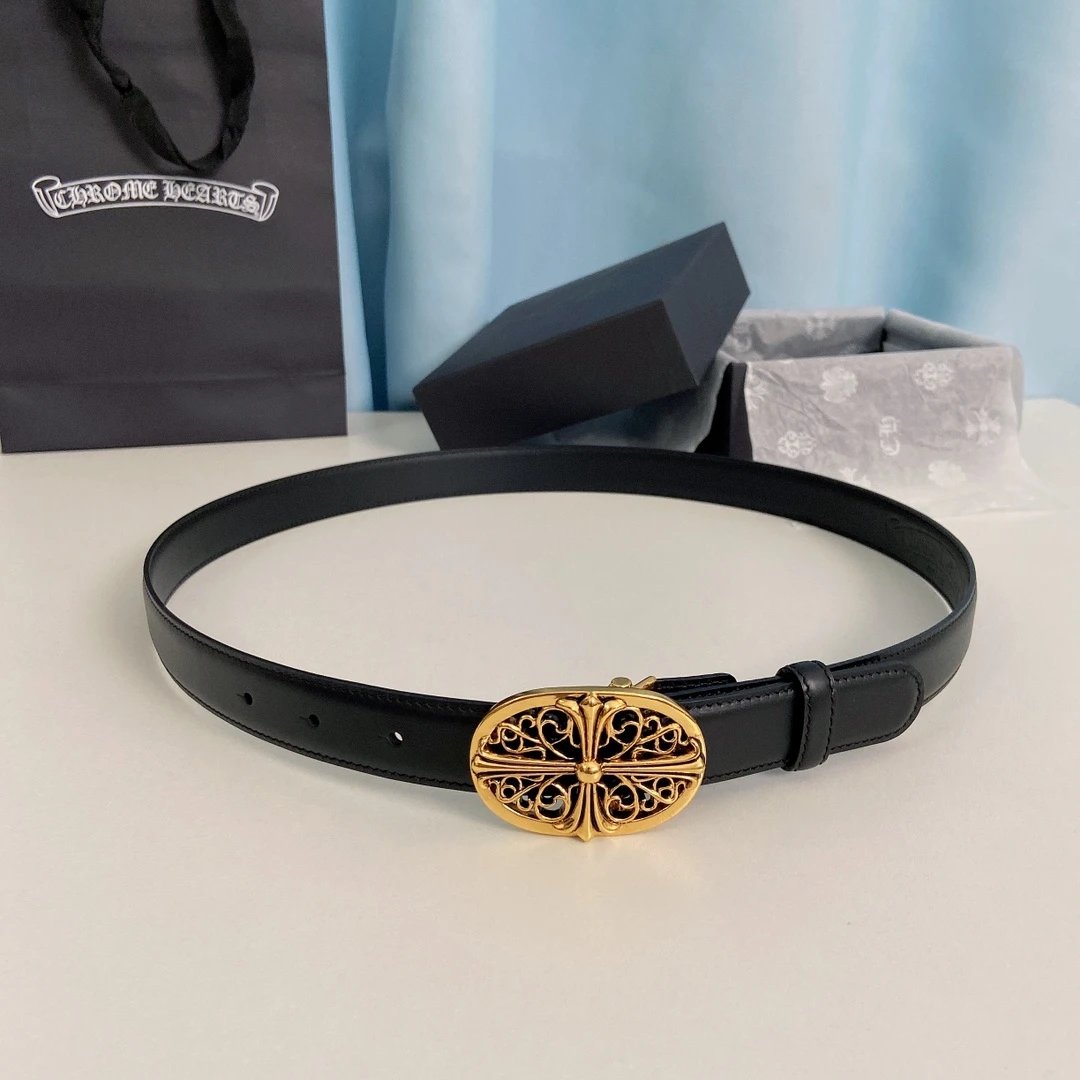 Chrome Hearts Mini Guardian Belt features detachable brass plated real gold hardware, made of original oil wax top layer cowhide (2.5cm width).