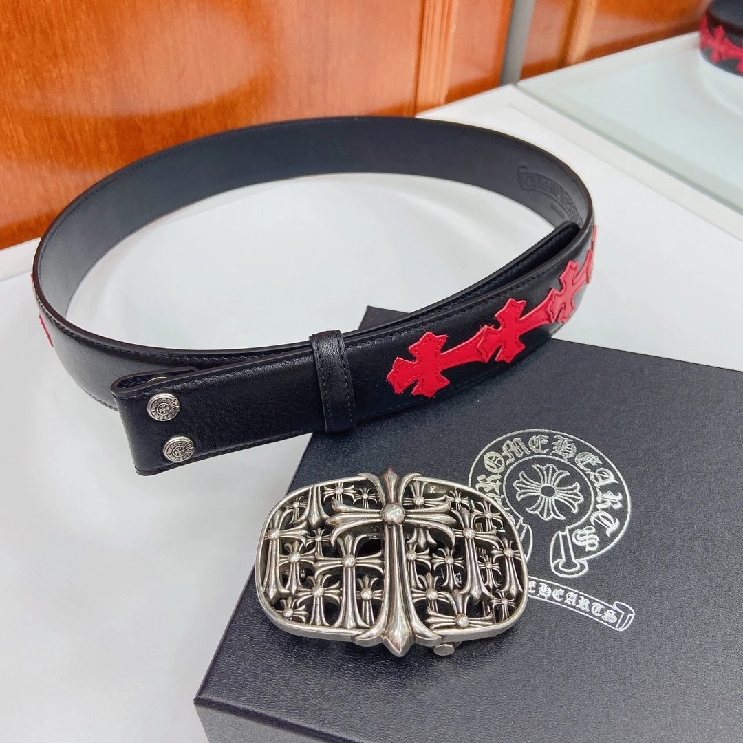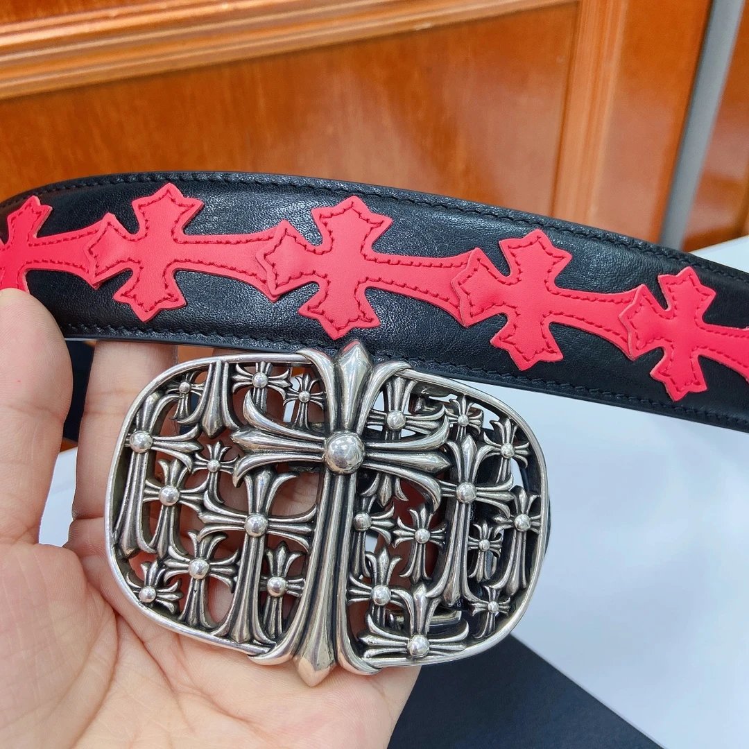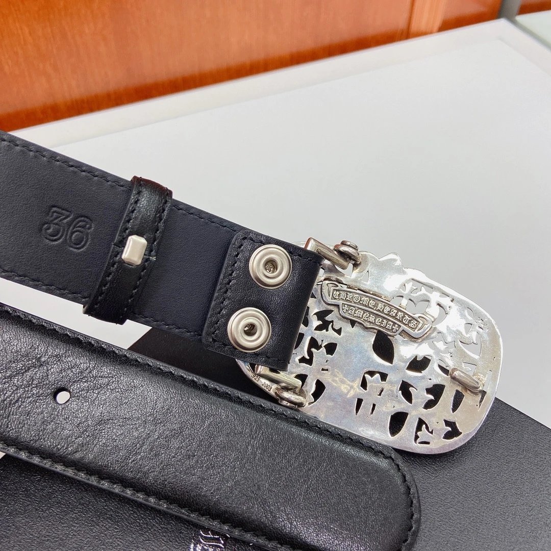 Chrome Hearts Classic Vine Cross Detachable Belt uses imported oil wax leather & copper plated silver hardware.