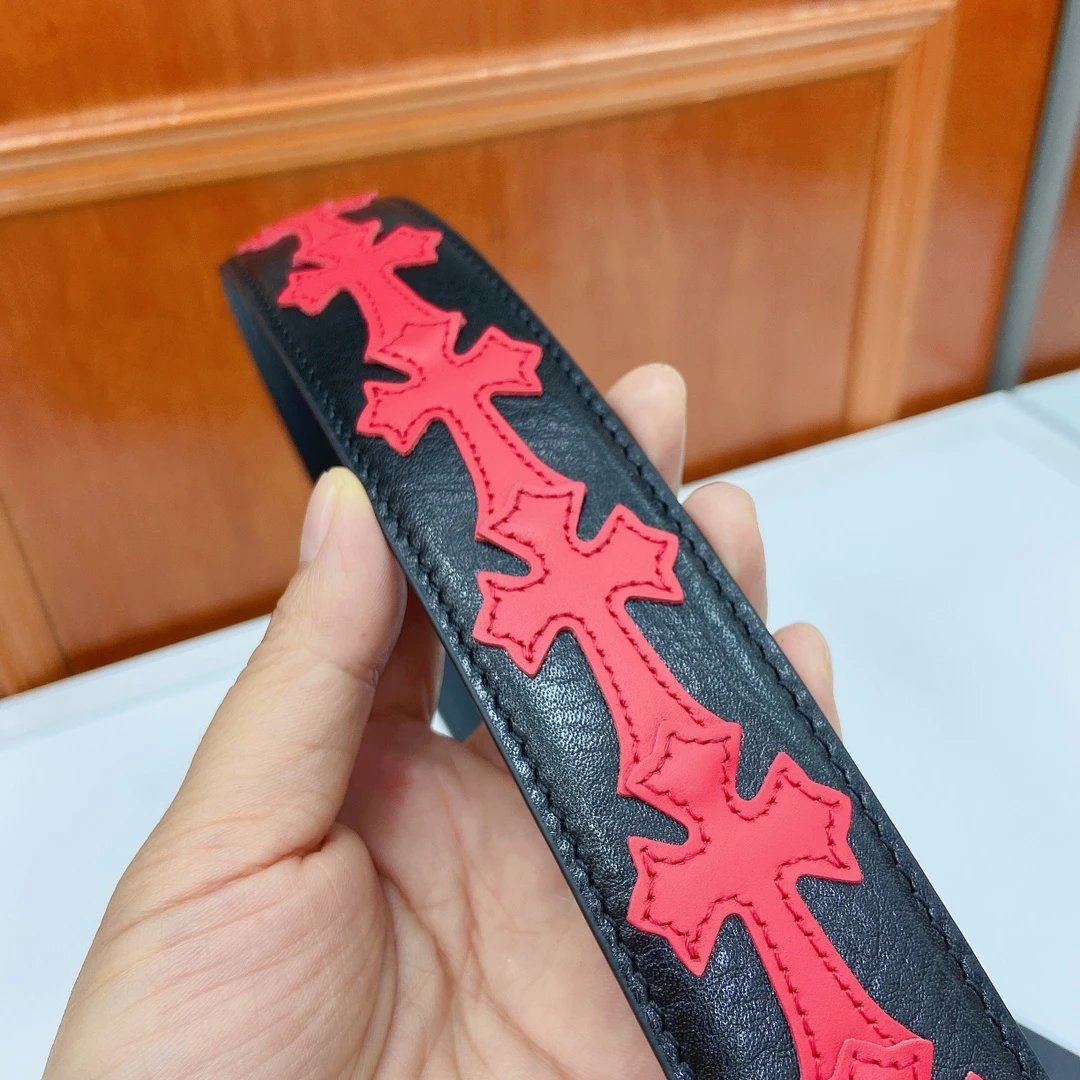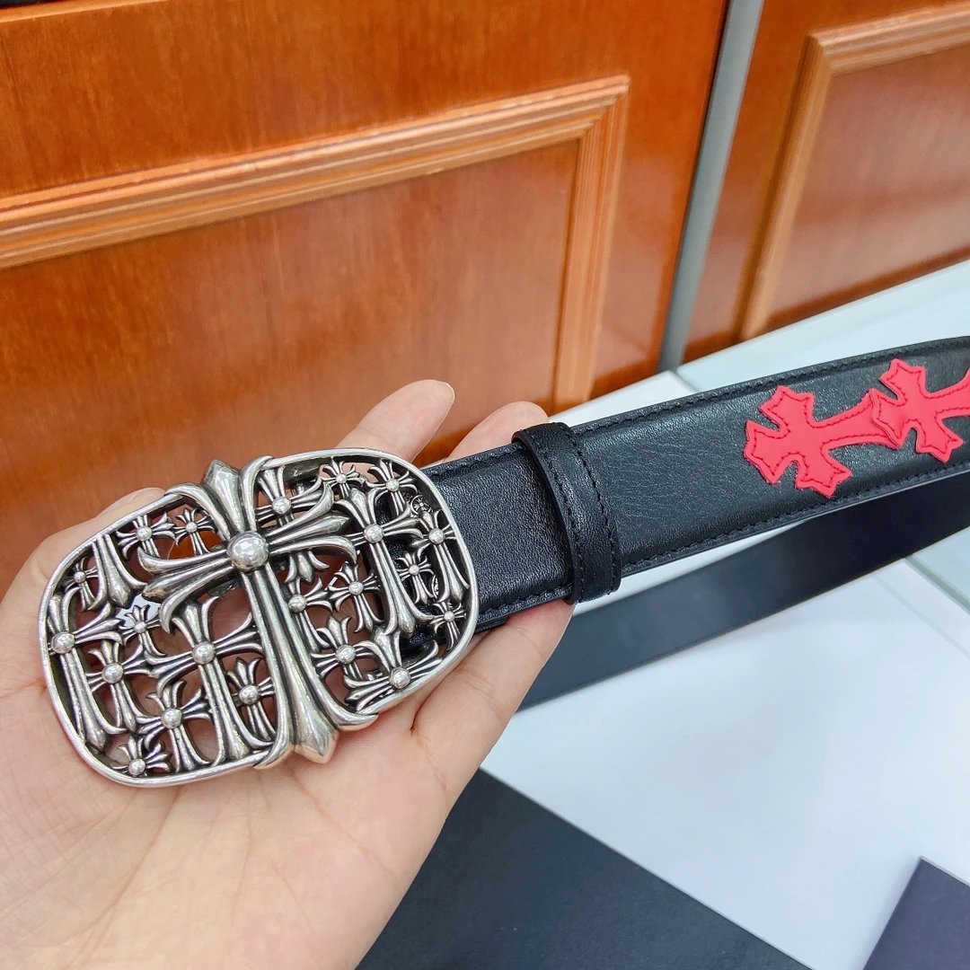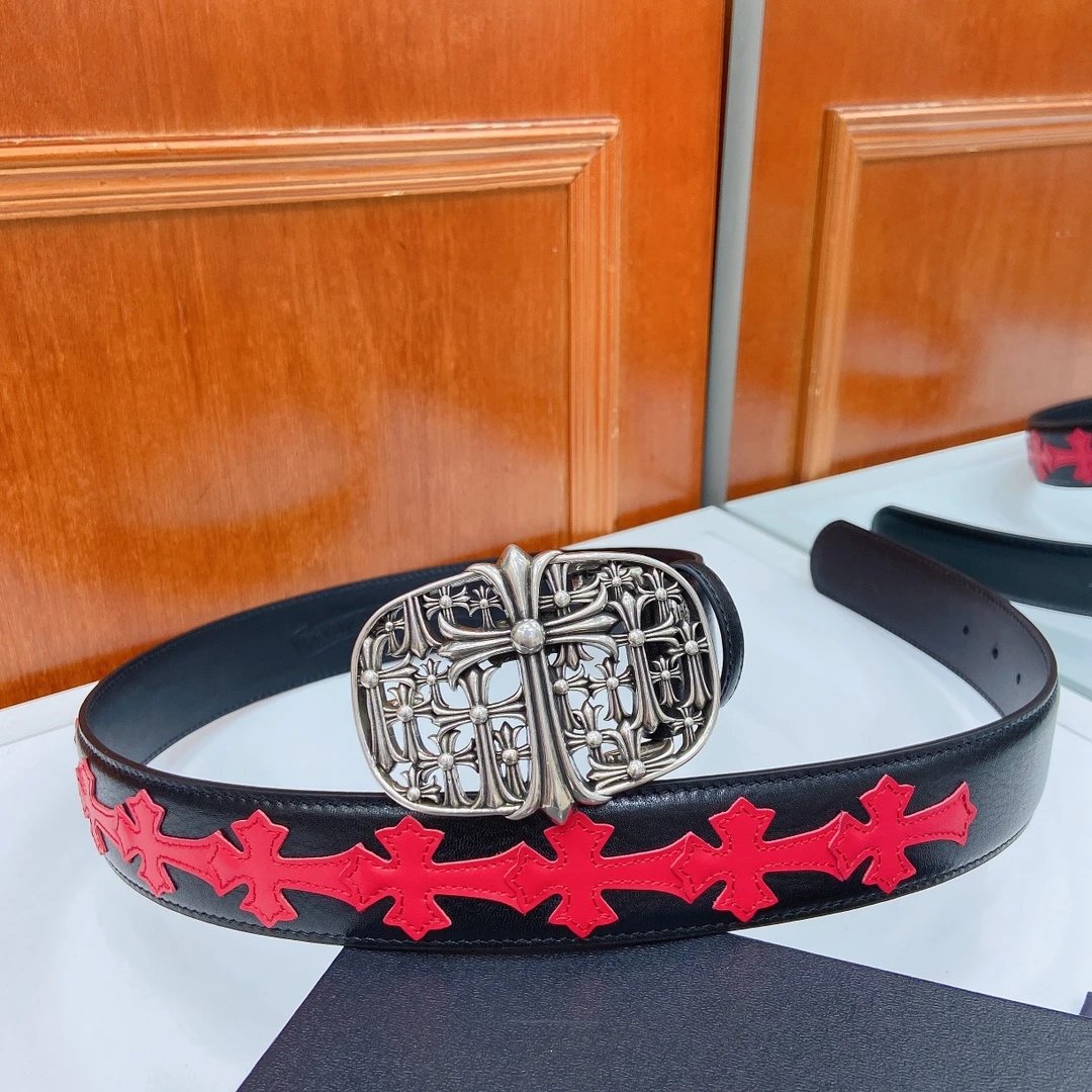 Chrome Hearts Classic Vine Cross Detachable Belt uses imported oil wax leather & copper plated silver hardware.