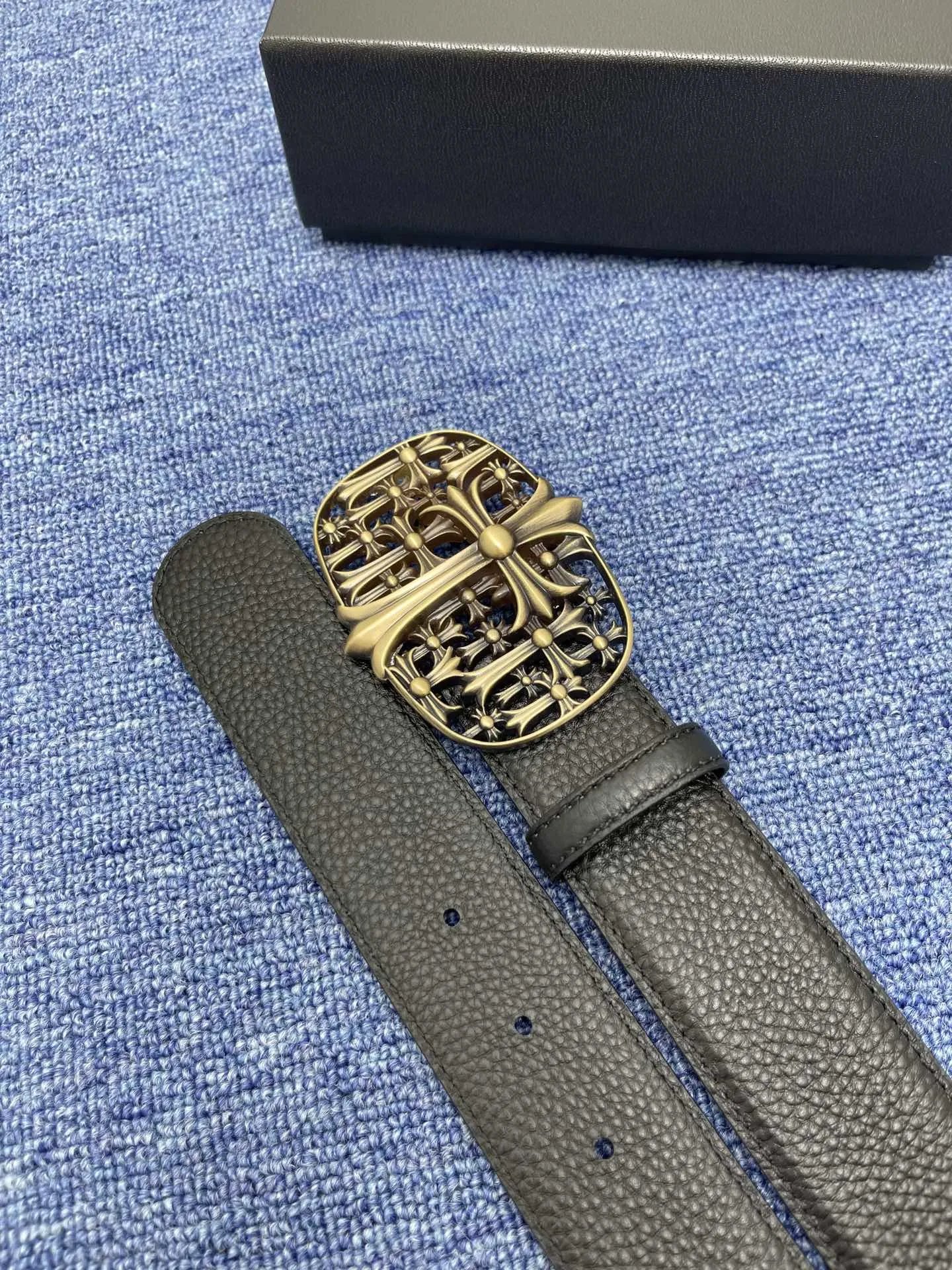 Chrome Hearts Black Signature Leather Belt is crafted from premium Signature leather with a thick tactile feel and logo buckle.