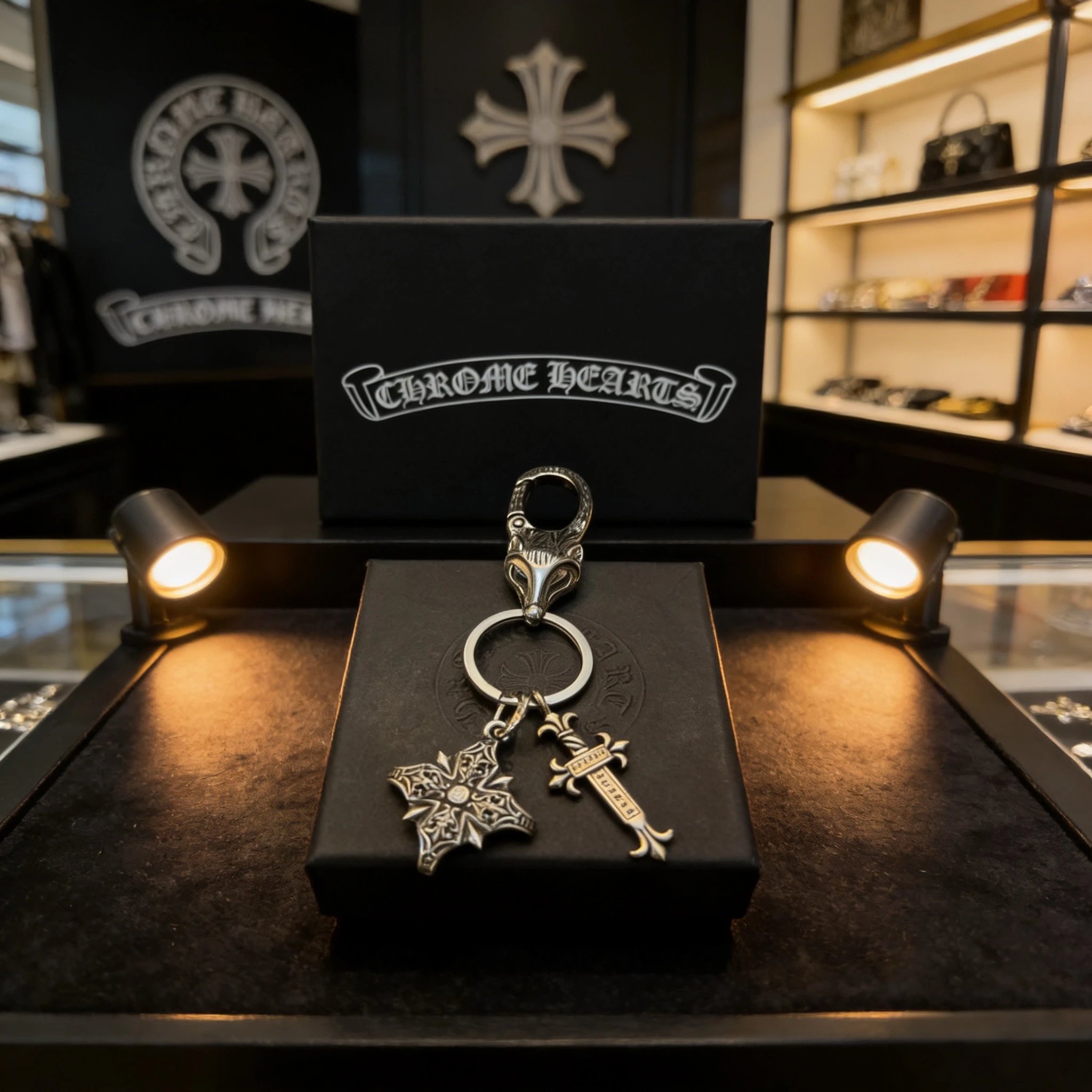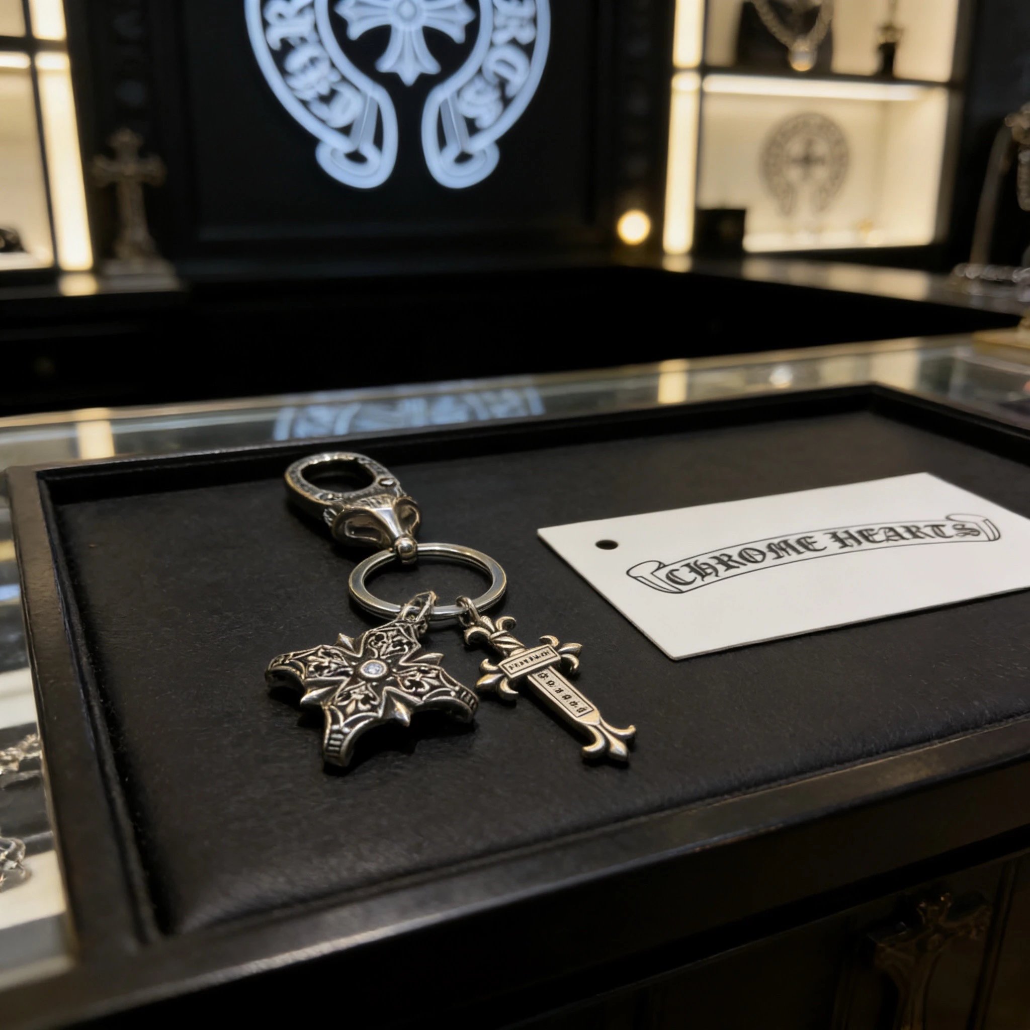 Home > Goods List Chrome Hearts Come Hearts Cross Keychain Thai Silver Punk Style