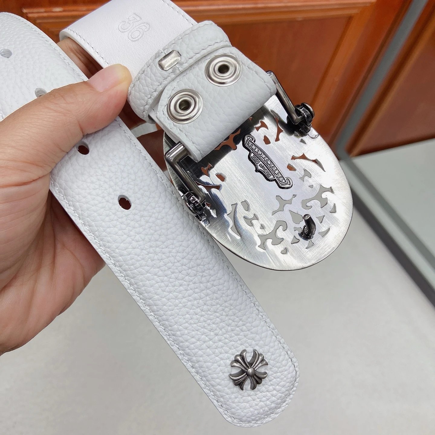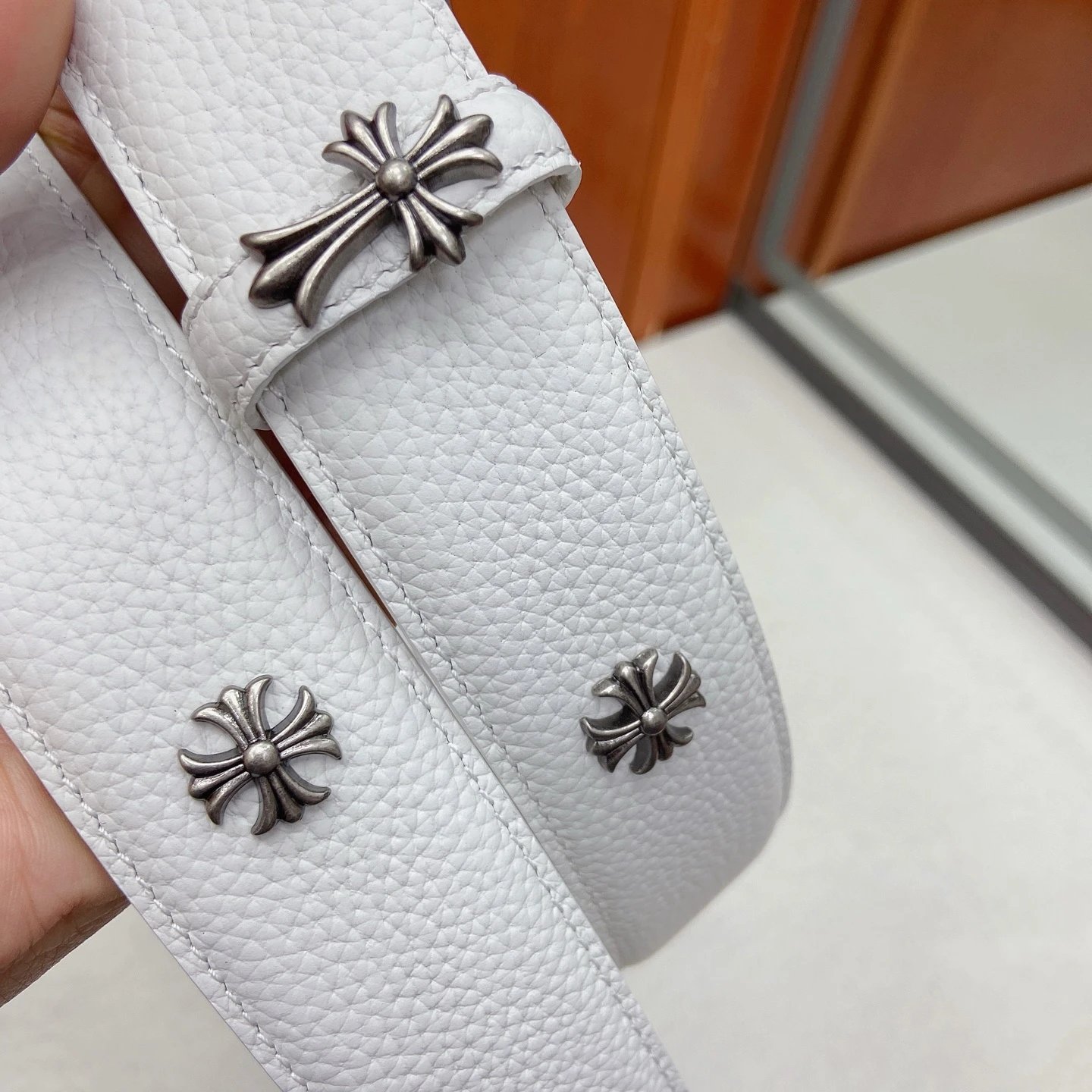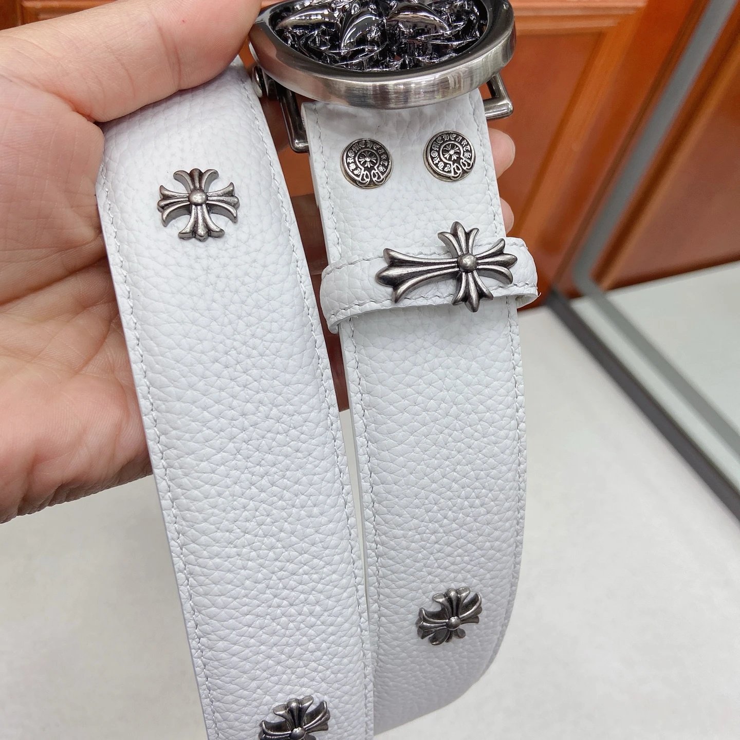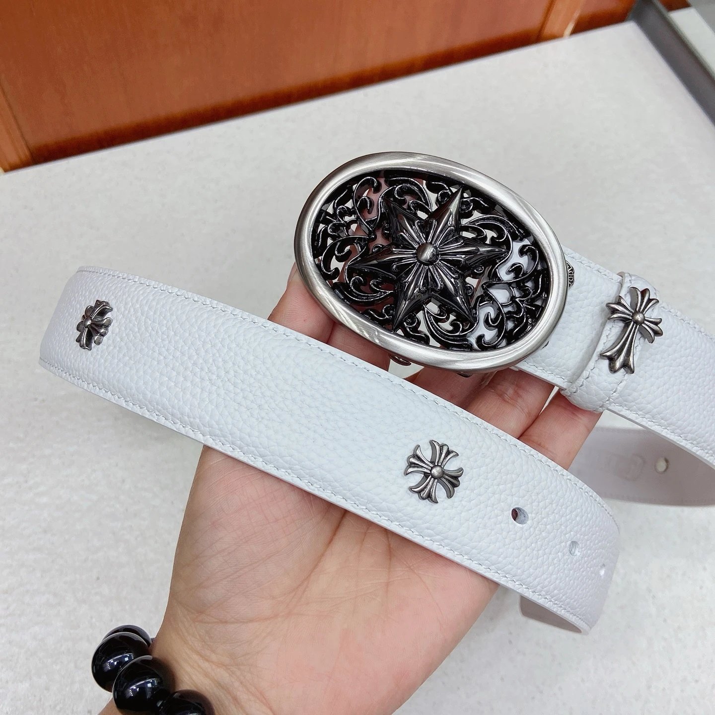 Chrome Hearts Cross Stud Belt has detachable six-pointed star brass plated 925 silver hardware, original oil waxed top layer cowhide (3.8cm width).