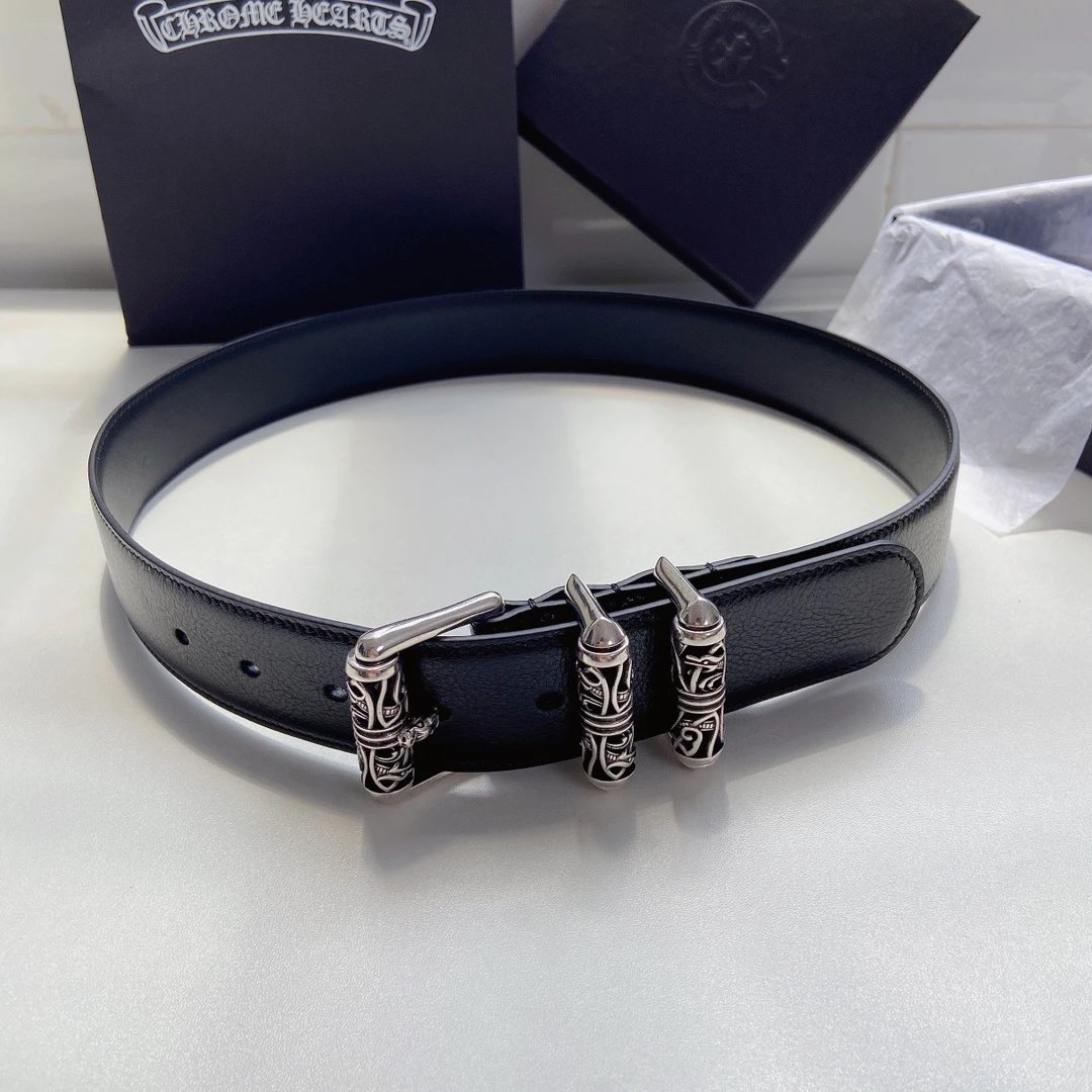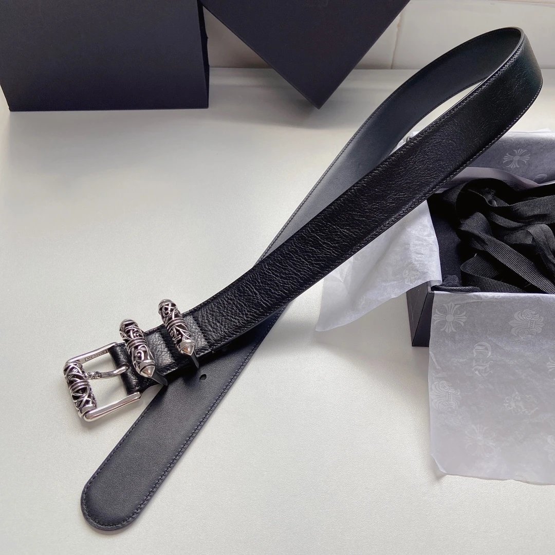 Chrome Hearts Celtic Dragon series belt uses S925 plated silver & brass hardware, top-grain leather, 3.8cm width, retro trendy style.