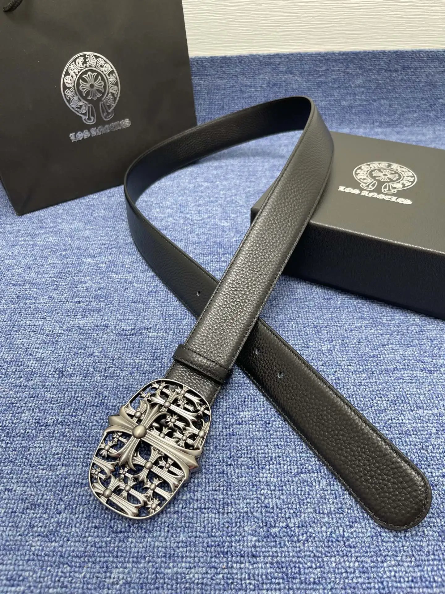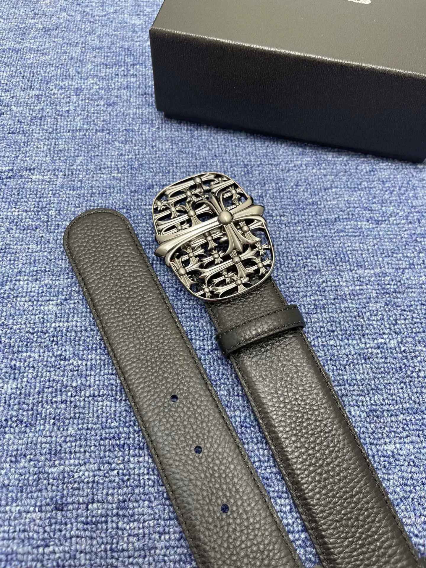 Chrome Hearts Black Signature Leather Belt is crafted from premium Signature leather (thick tactile feel, logo buckle).