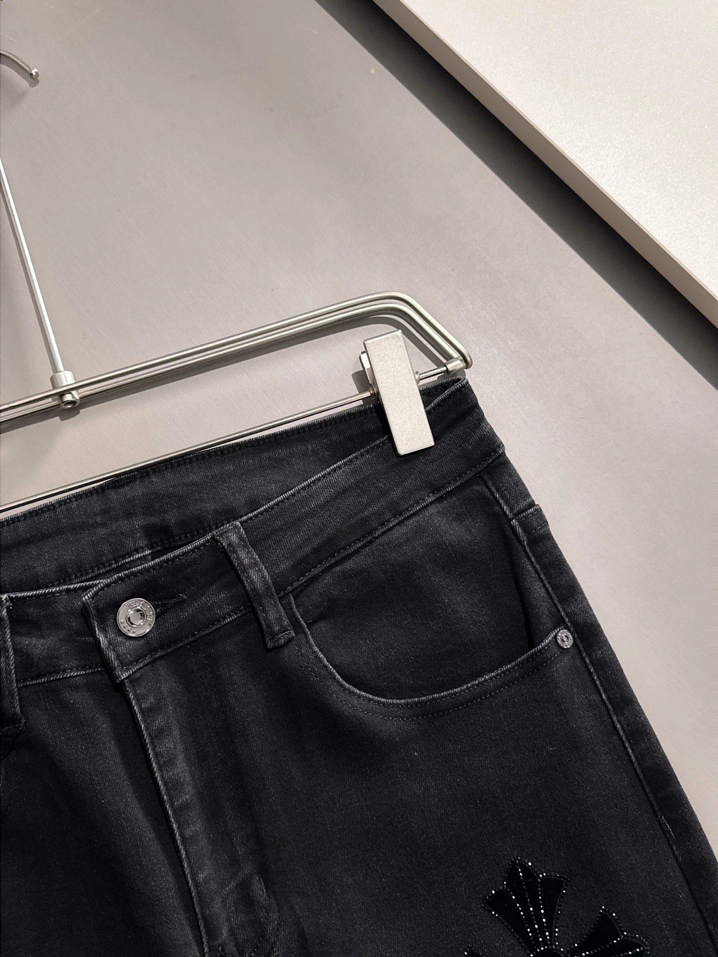Chrome Hearts 2025 Slim Denim Jeans use premium Japanese Denim, have studded pockets & complete tags. Soft, versatile for daily wear.