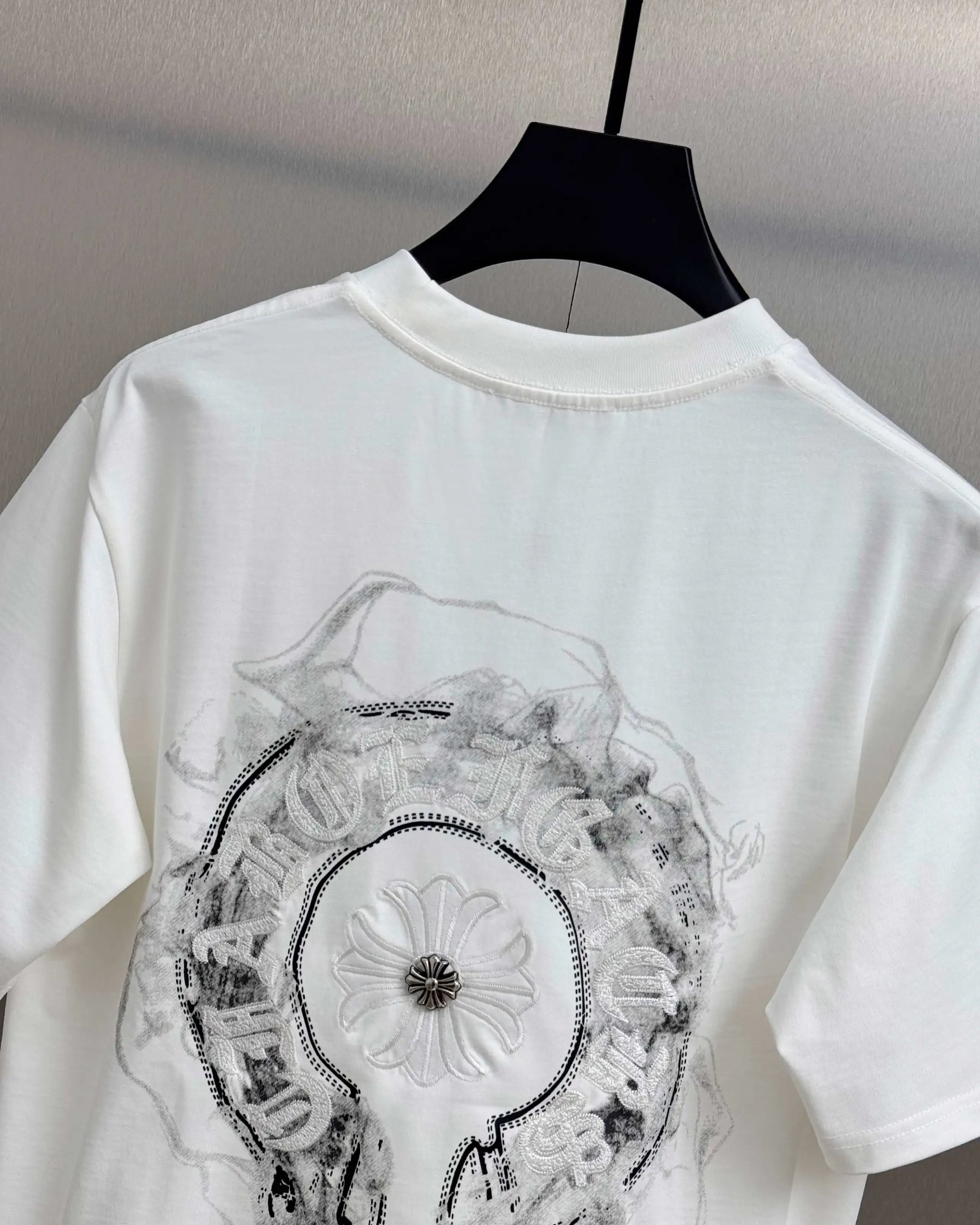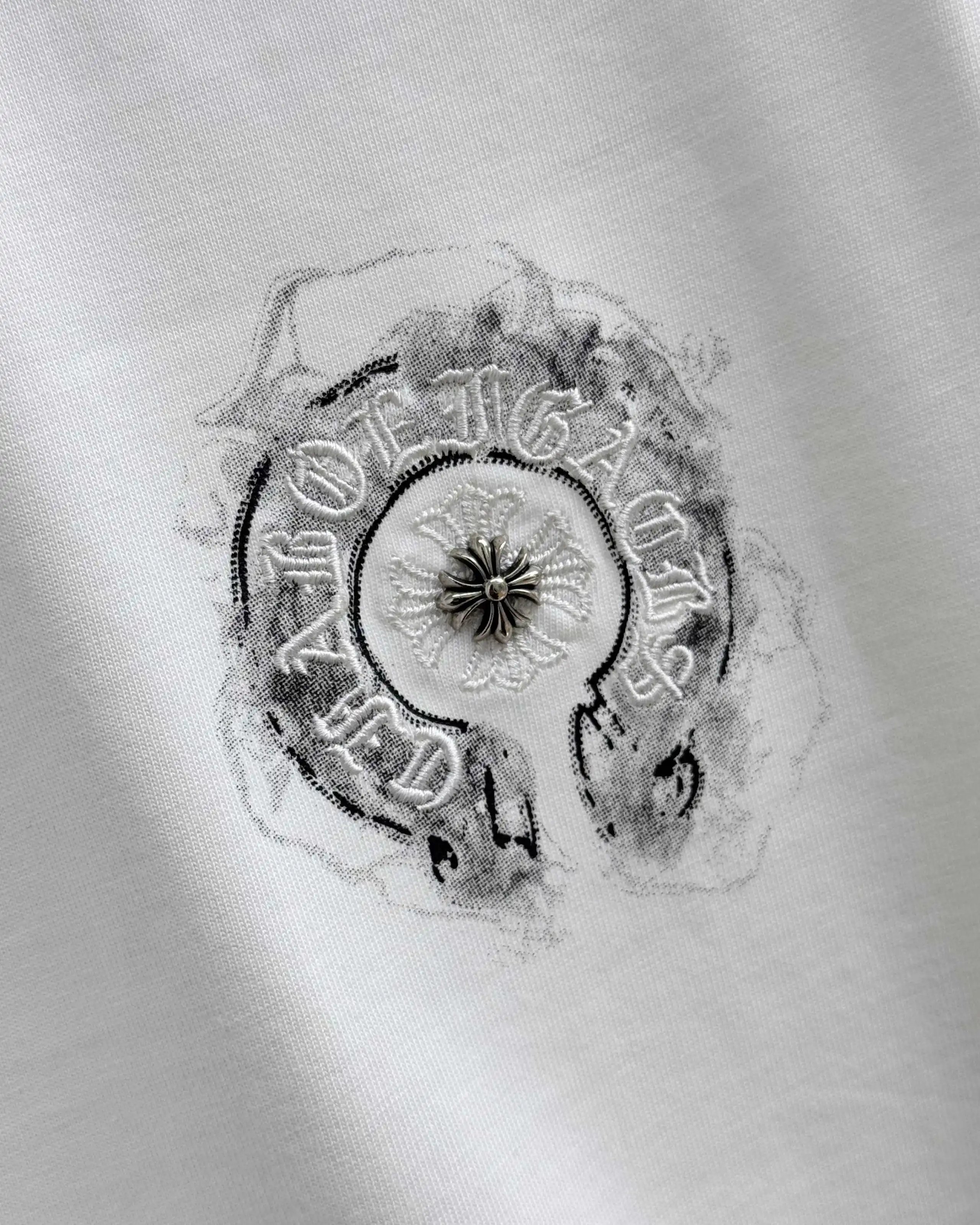Chrome Hearts Top-Quality Unisex Loose Crew Neck T-Shirts with Sanskrit Splash Embroidered Logo