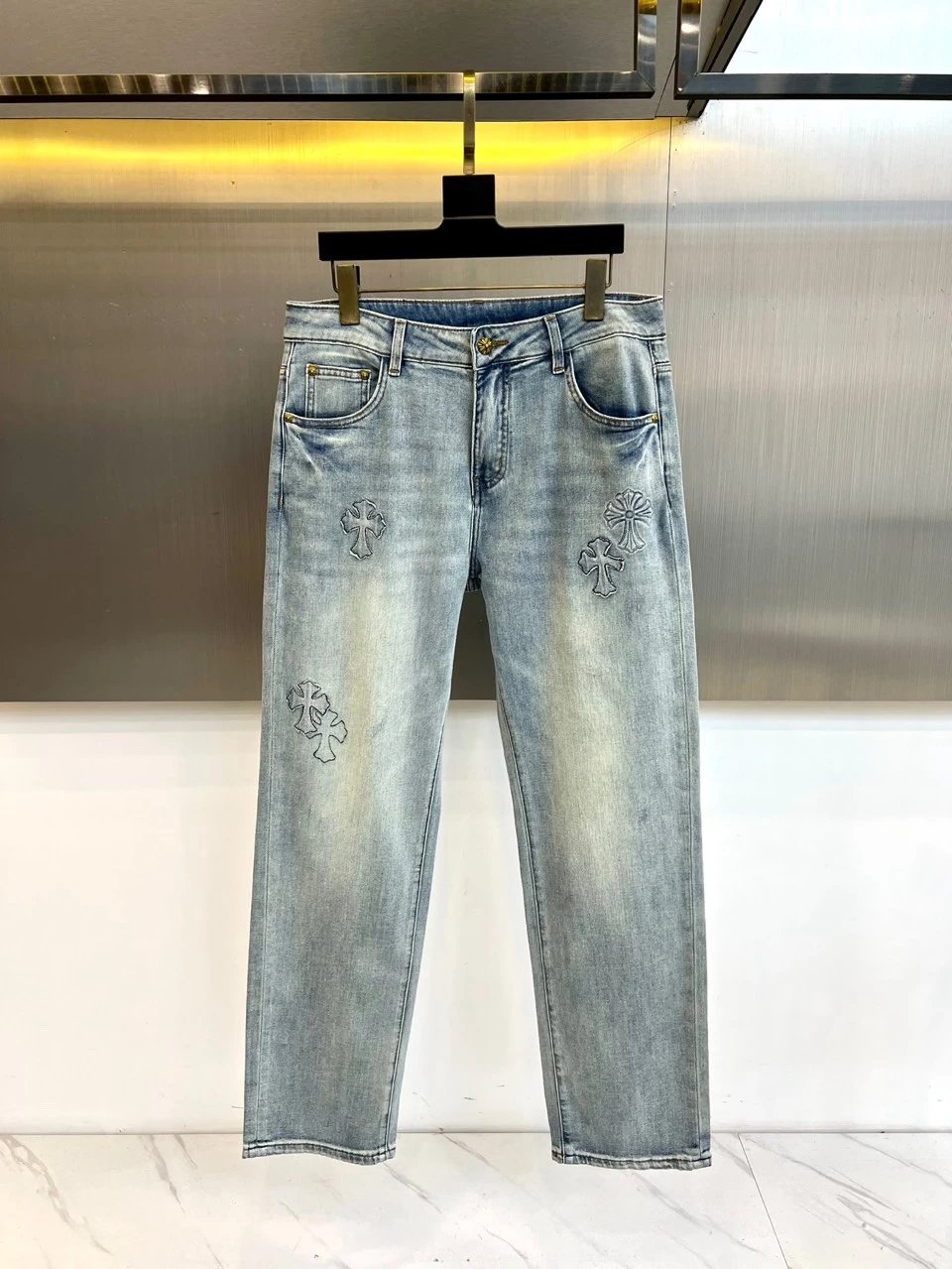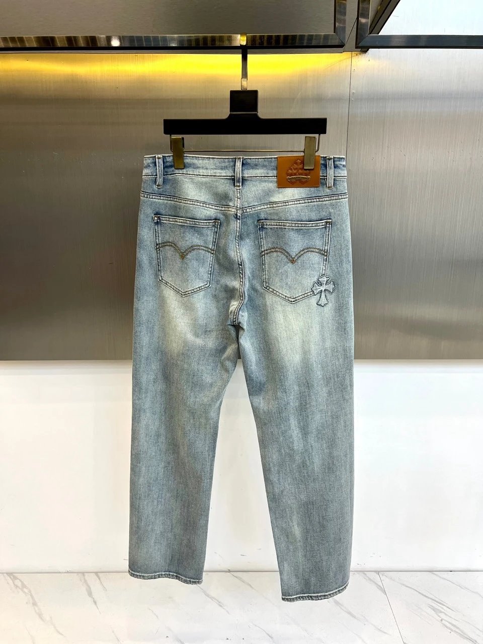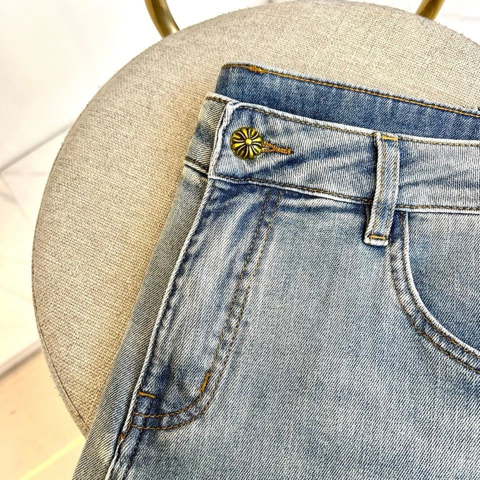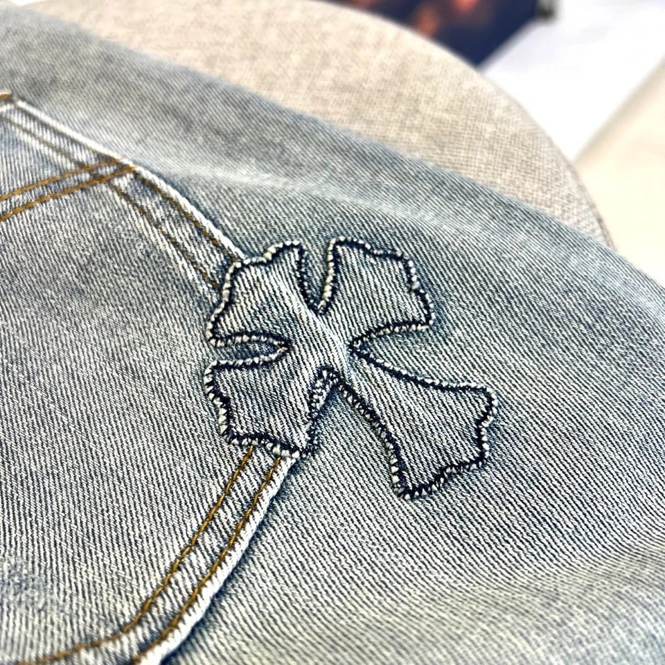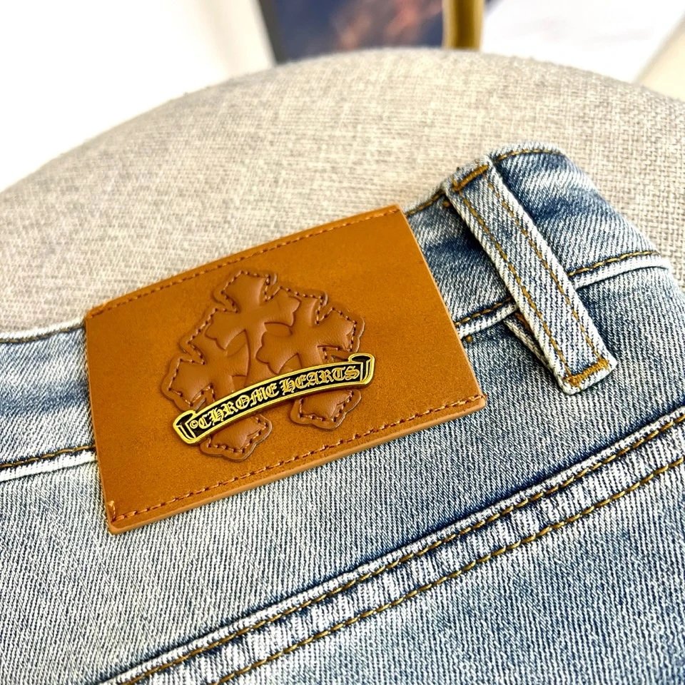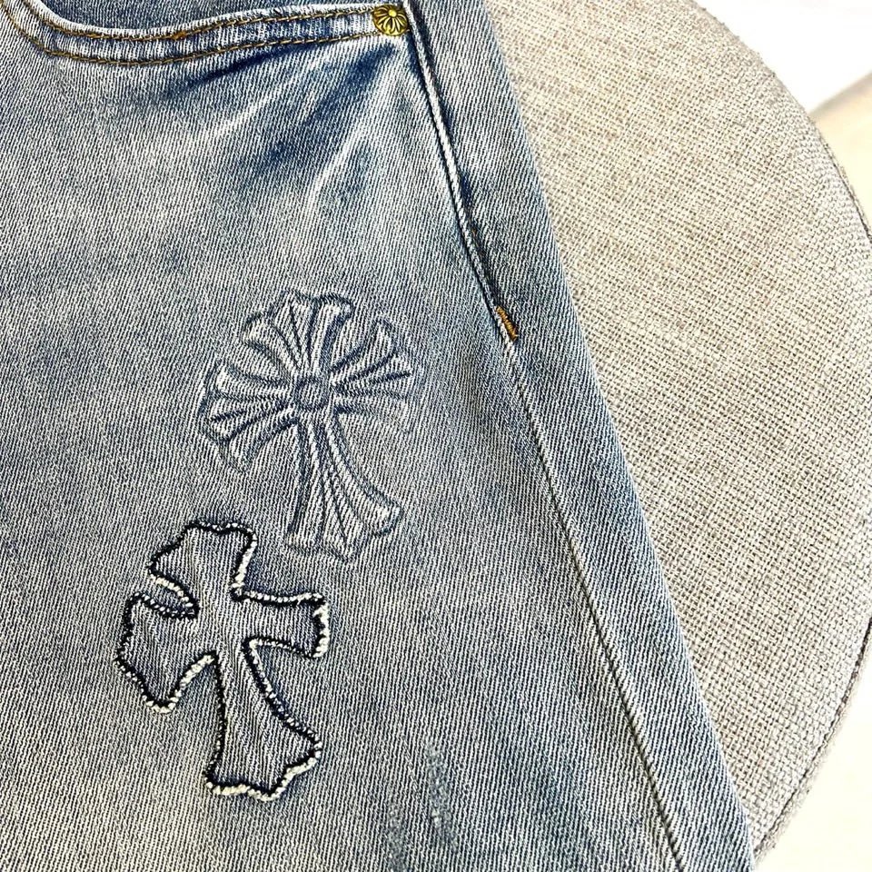 Chrome Hearts 2026 Spring Summer Loose Straight Jeans feature cross embroidery, round metal plate, loose fit.