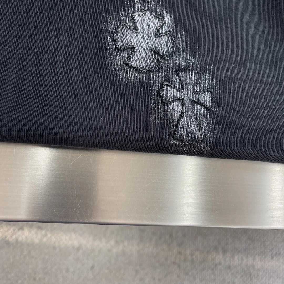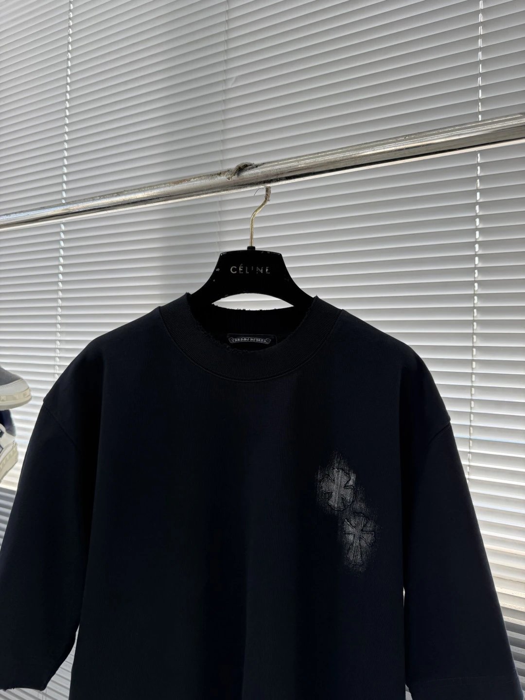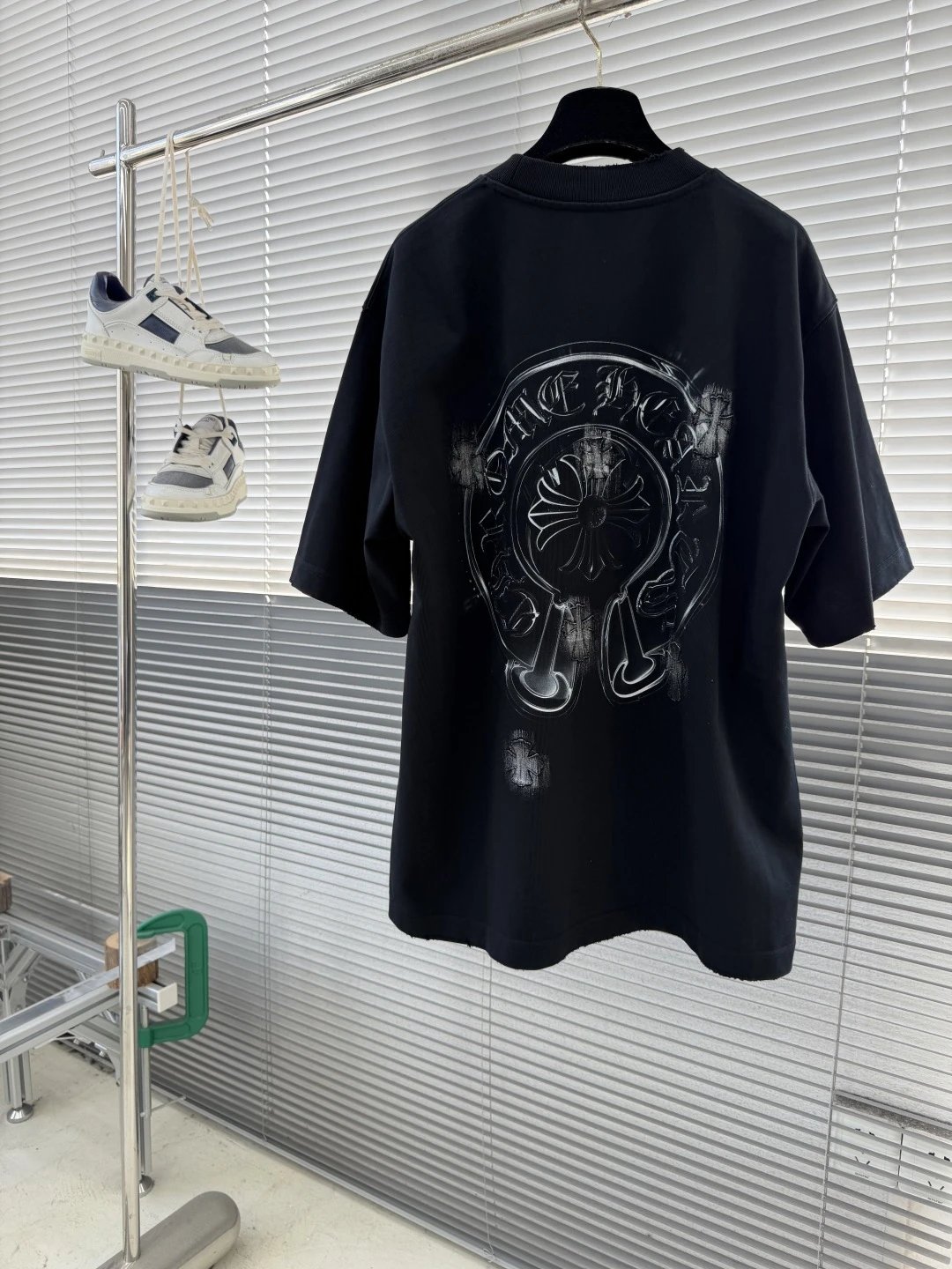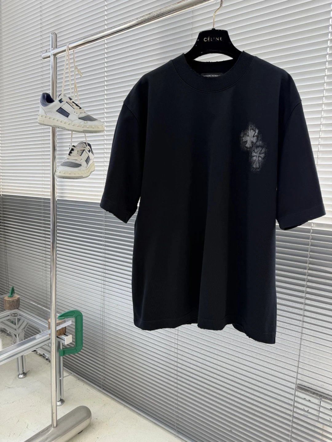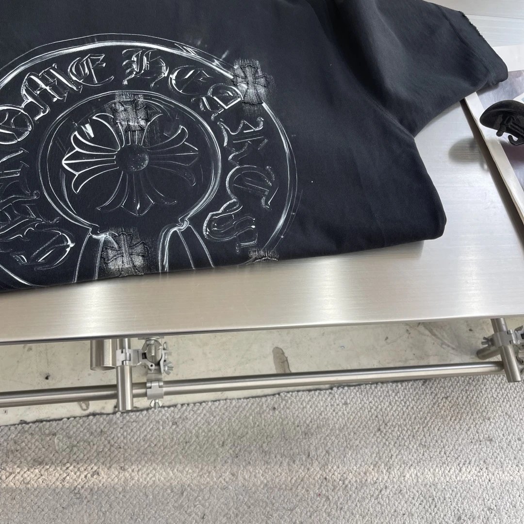 Chrome Hearts 2026SS new printed sleeve T-shirt uses heavy 350g cotton, front cross & back hand-painted horseshoe pattern, twice washed.