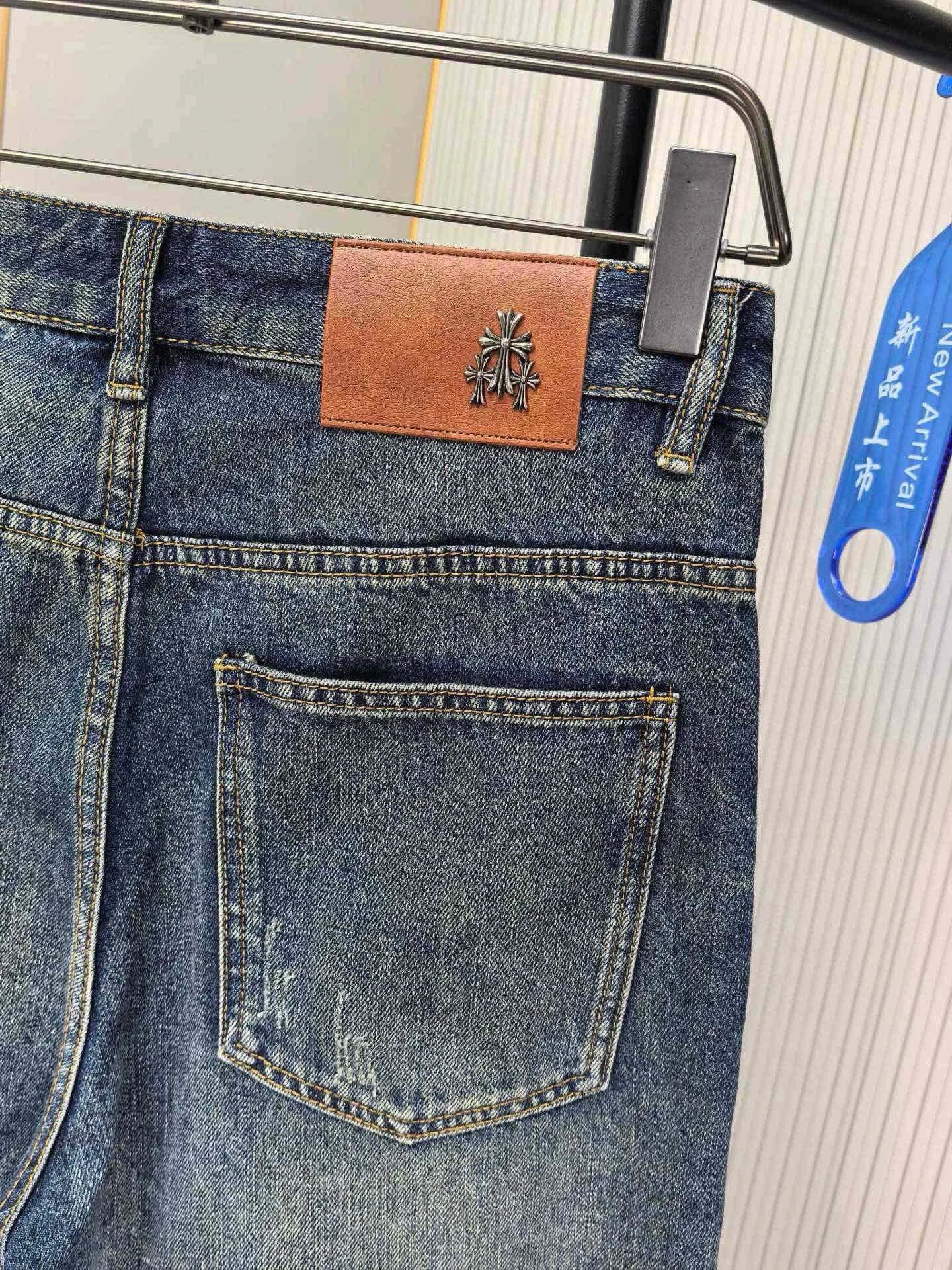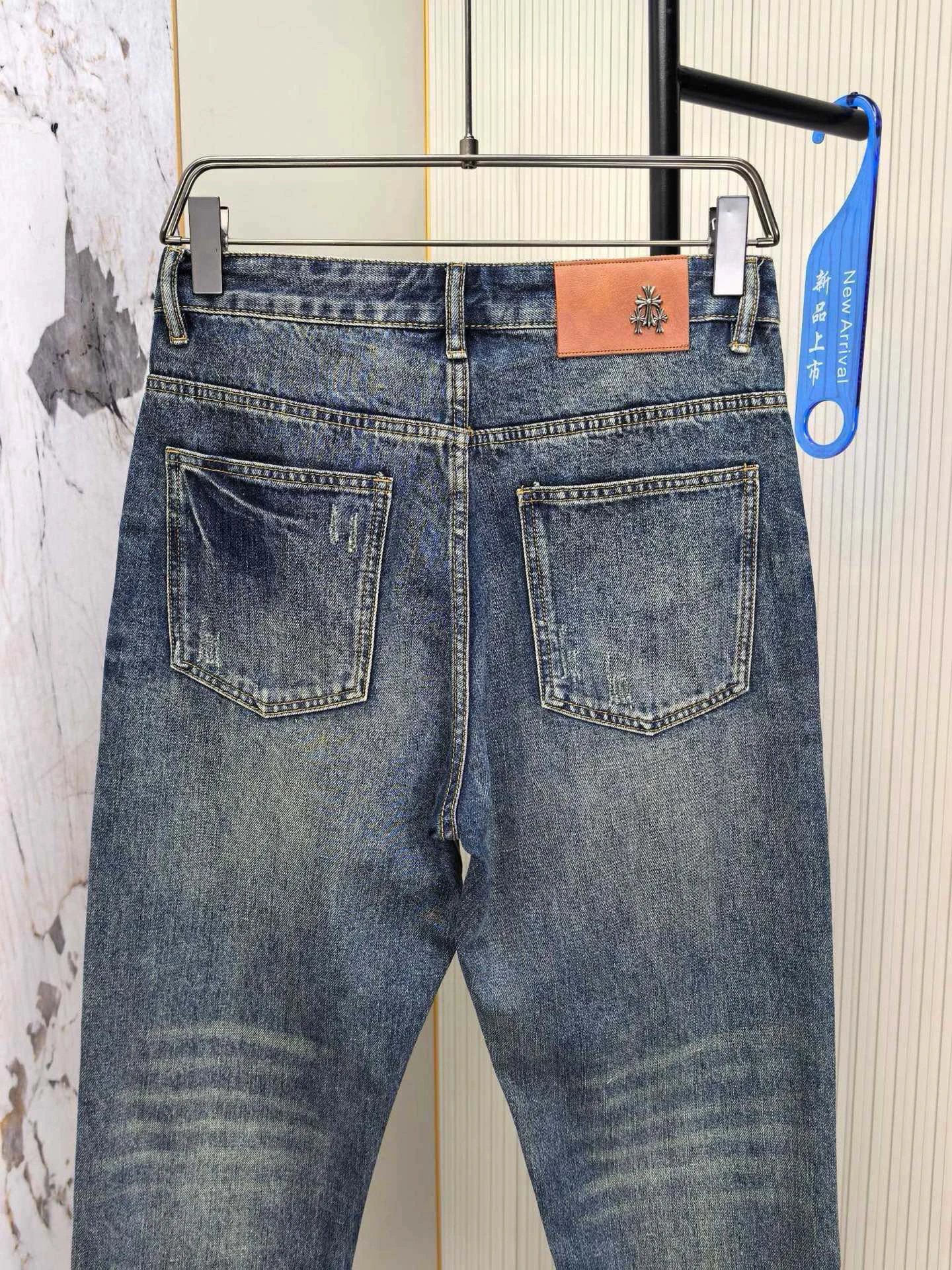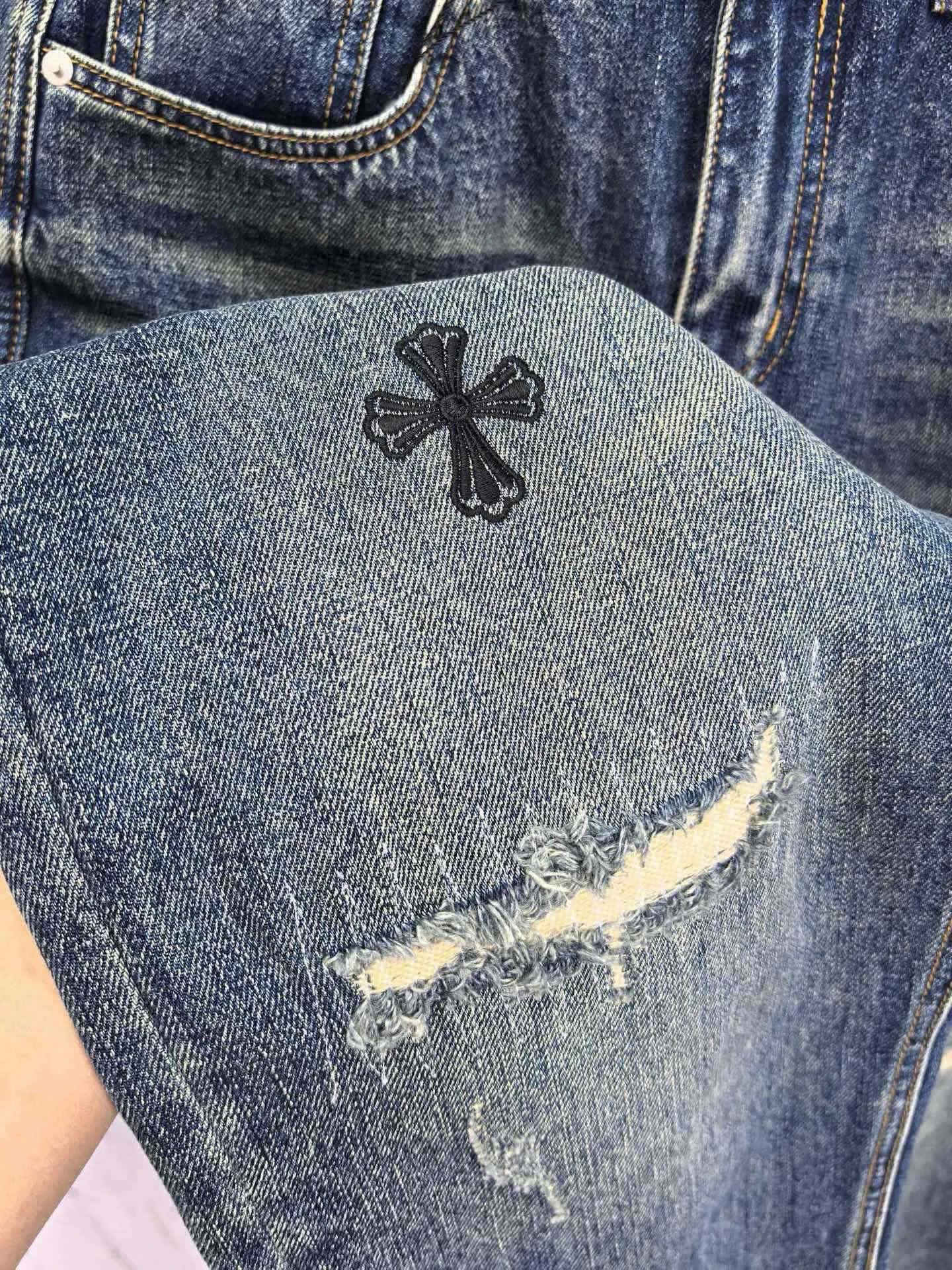 Chrome Hearts 2026 Spring Men's Embroidered Distressed Jeans use custom soft denim, double washing process for comfort & breathability. Custom top-quality hardware logos.