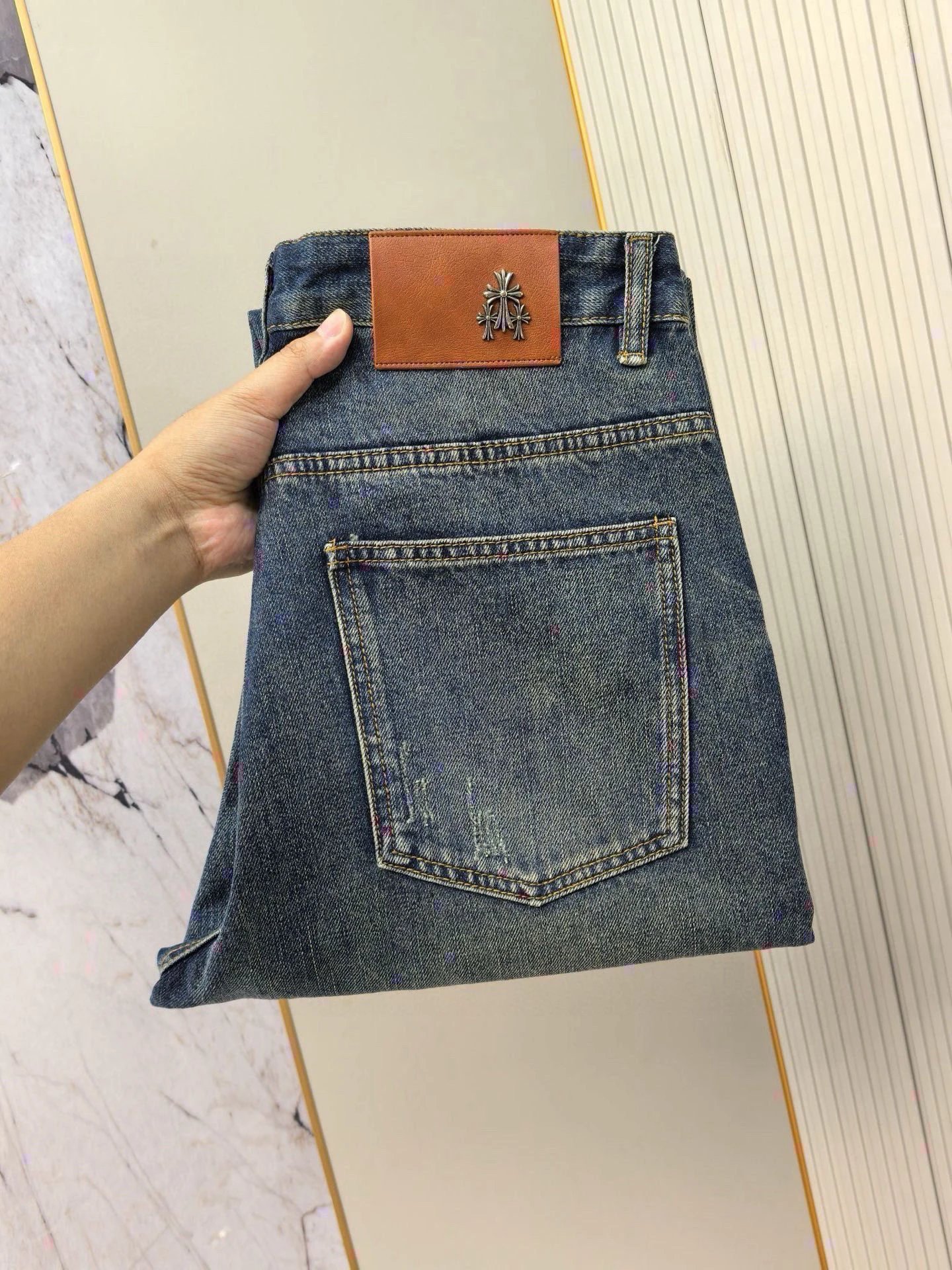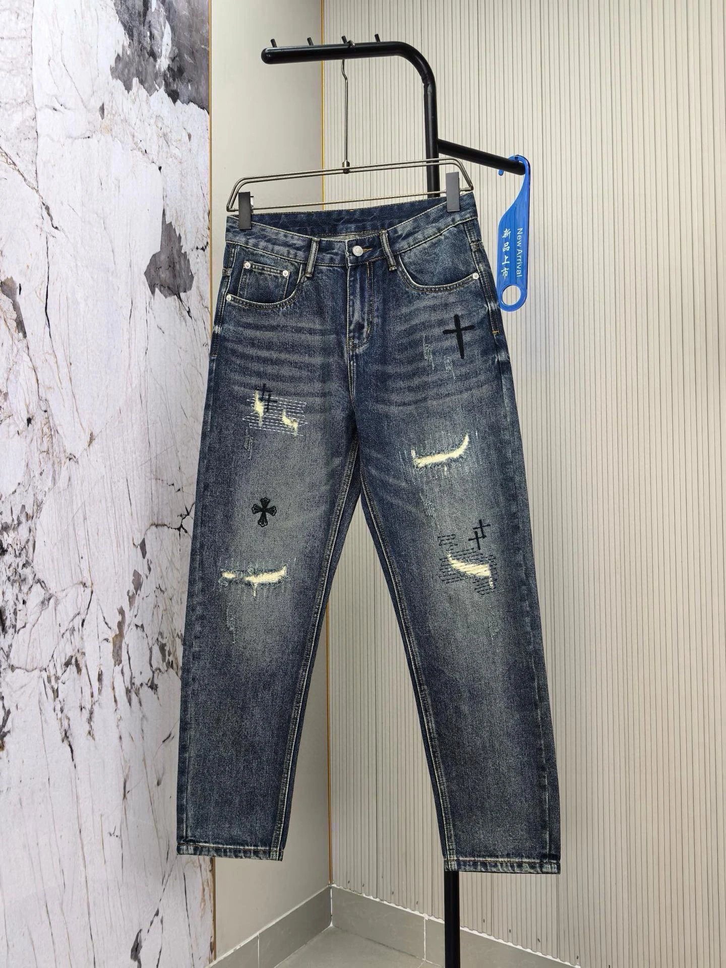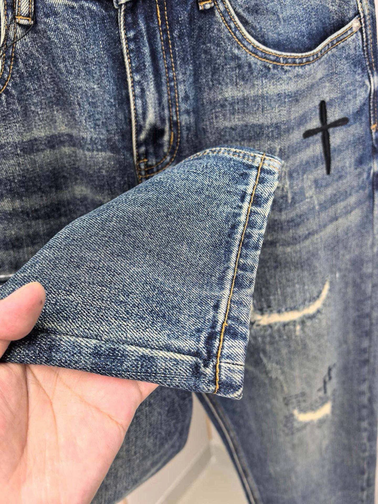 Chrome Hearts 2026 Spring Men's Embroidered Distressed Jeans use custom soft denim, double washing process for comfort & breathability. Custom top-quality hardware logos.