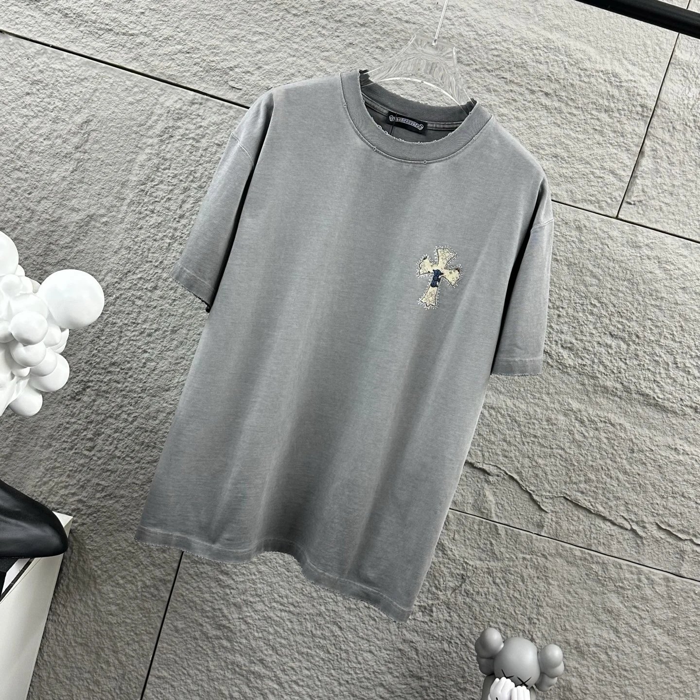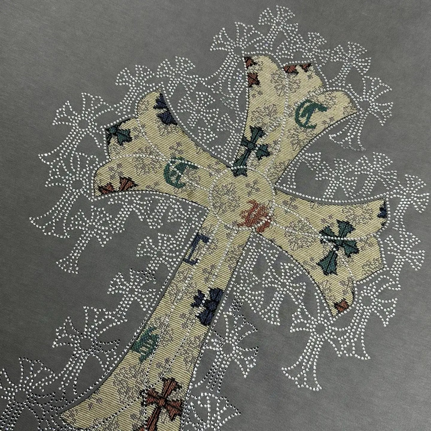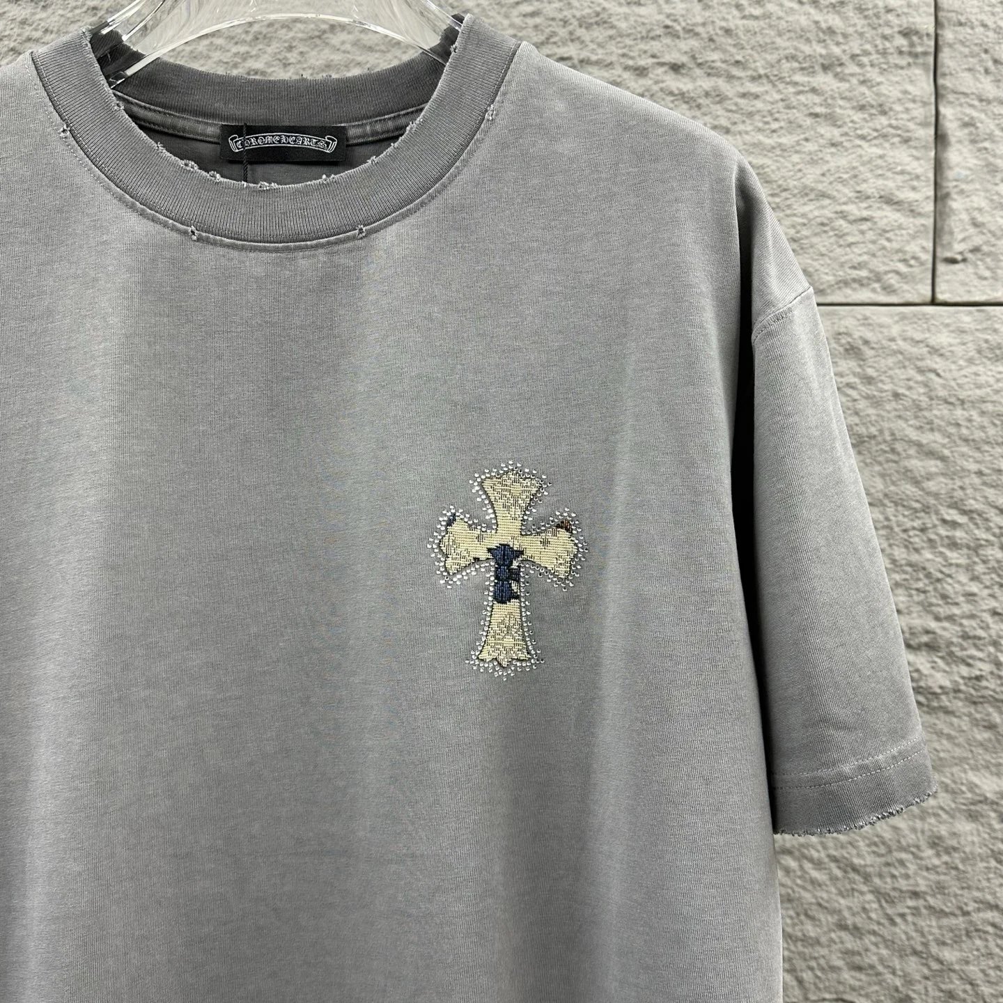 Chrome Hearts 2026 spring-summer unisex T-shirt: heavy distressed washed finish, applique & rhinestone details, custom cotton fabric.