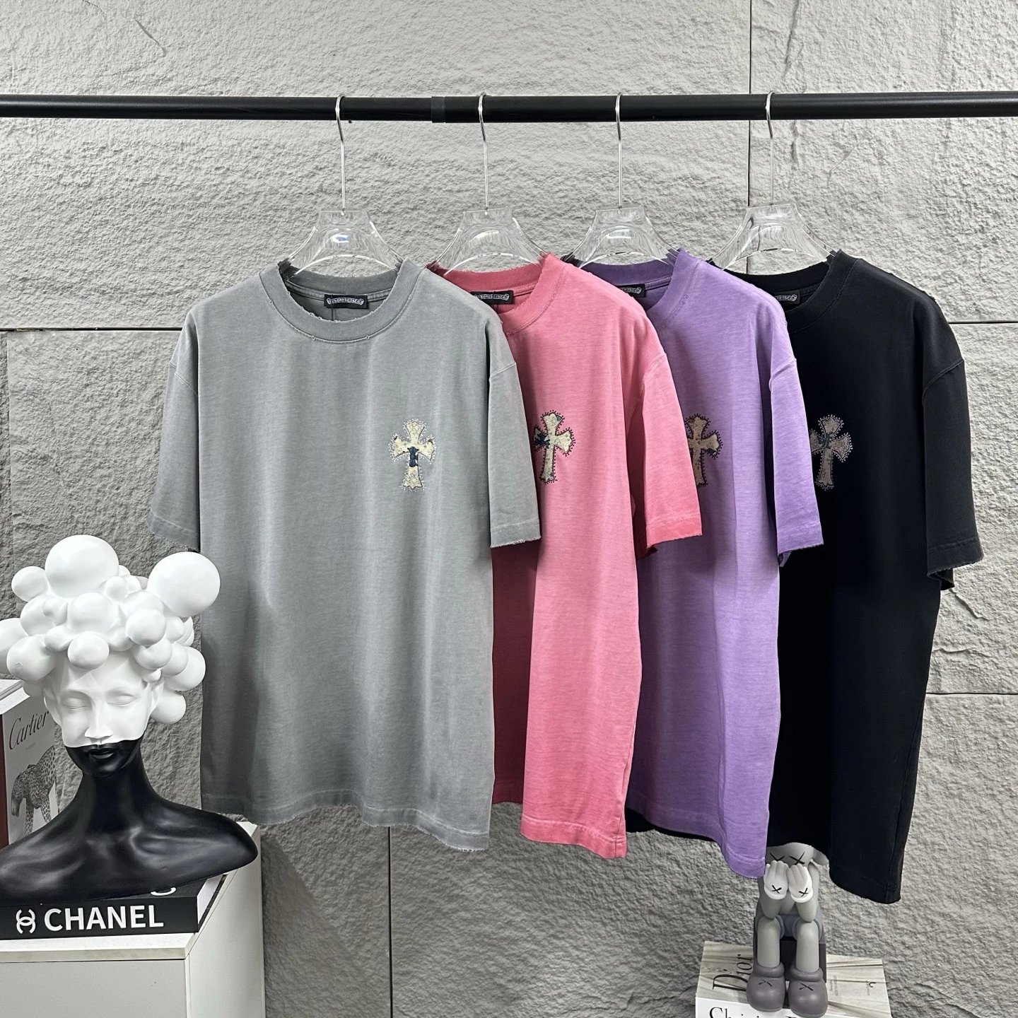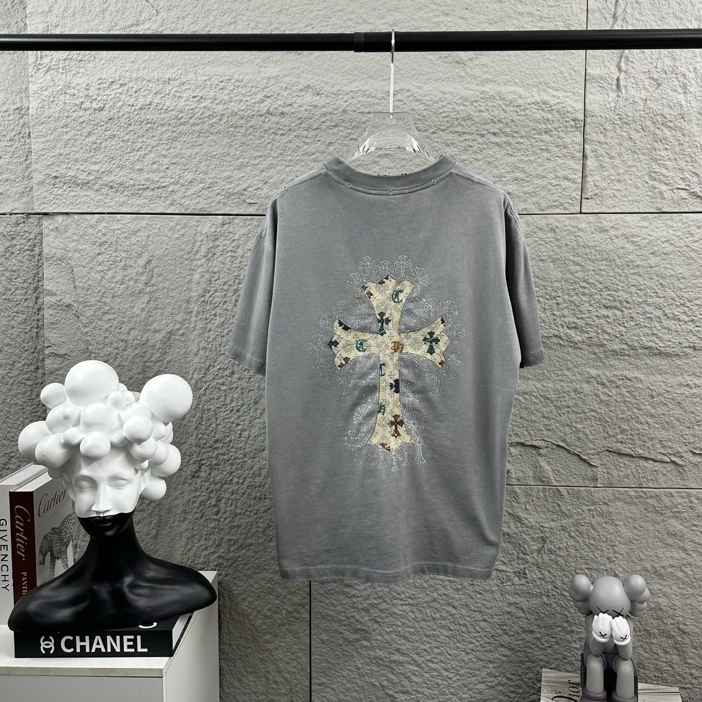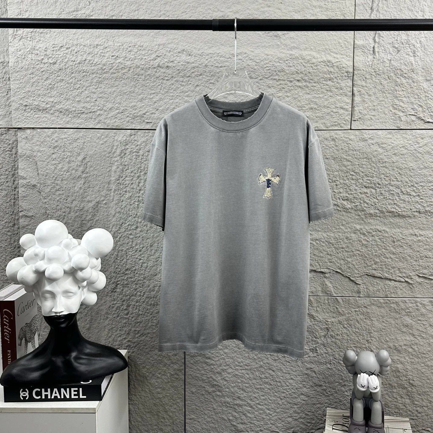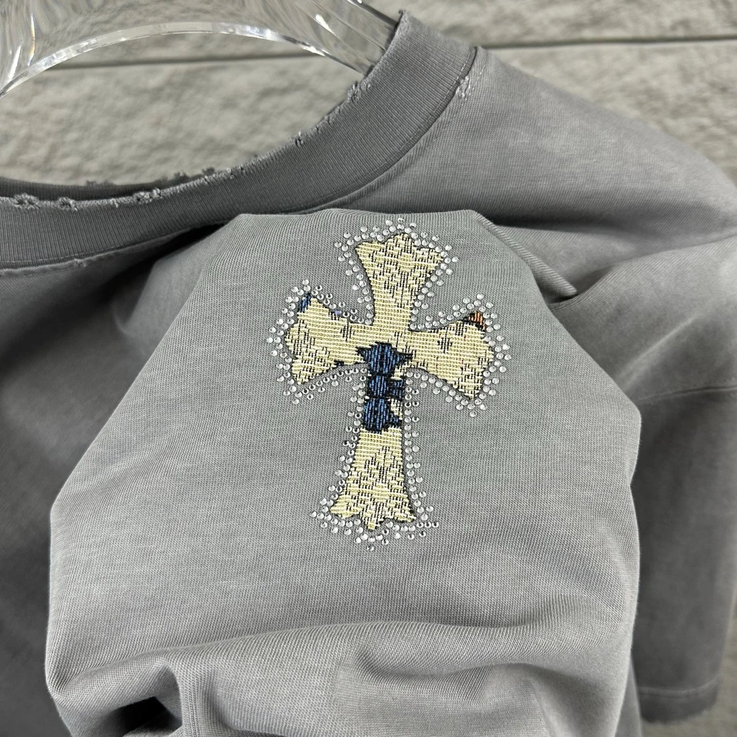 Chrome Hearts 2026 spring-summer unisex T-shirt: heavy distressed washed finish, applique & rhinestone details, custom cotton fabric.