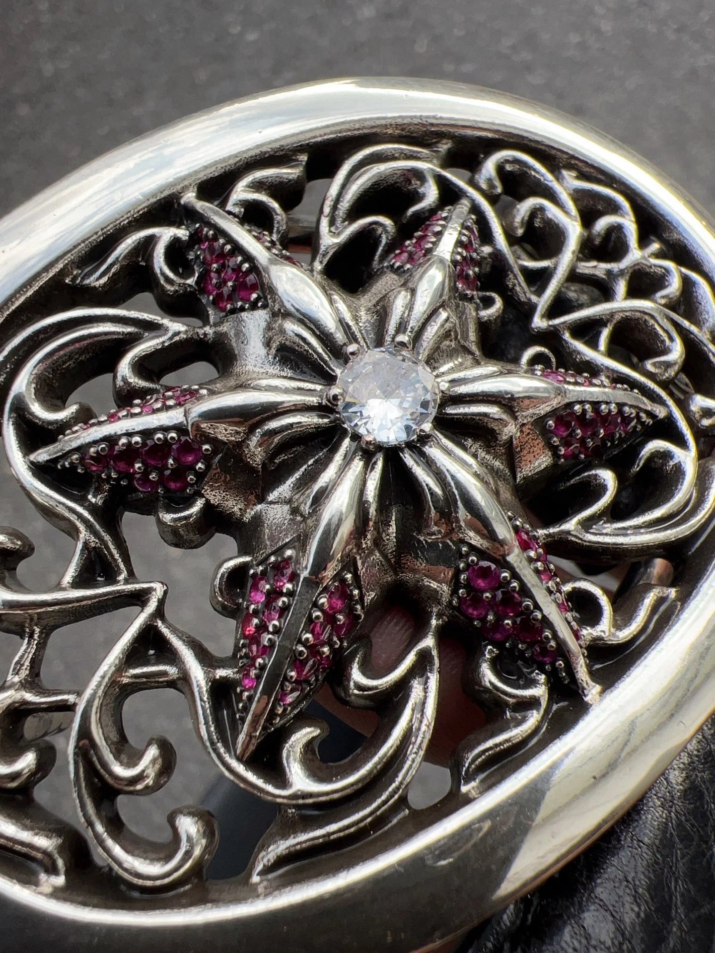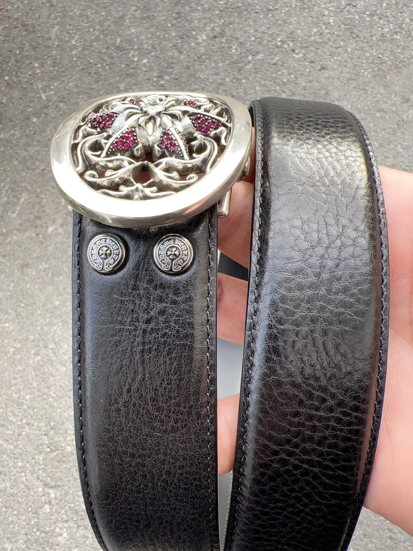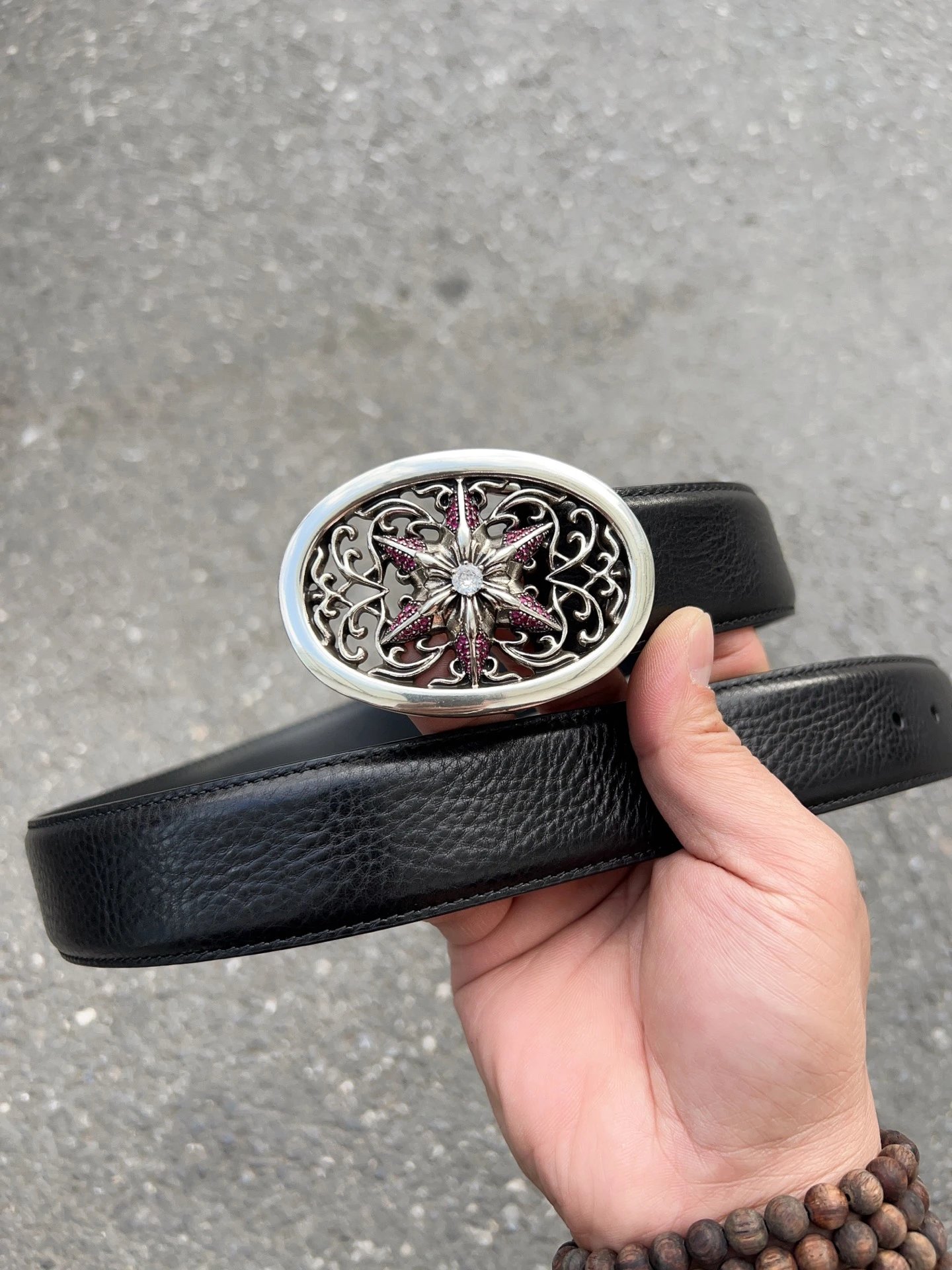 Come Hearts Hexagram Zircon Inlaid Belt features original 3.8cm width, premium top-grain oil wax leather, brass plated real silver hardware, 4A zirconia (no falling off).